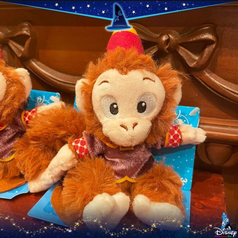 The Disney Magical Kingdom Blog Instagram account has shared the image of a new Albert shoulder plush that is now available at Hong Kong Disneyland Resort. The plush depicts Albert the monkey in a purple shirt that is outlined in yellow. Albert’s cuffed sleeves are red with yellow lines and white circles that connect in the shape of diamonds. His shirt also has a red, white, and yellow collar.