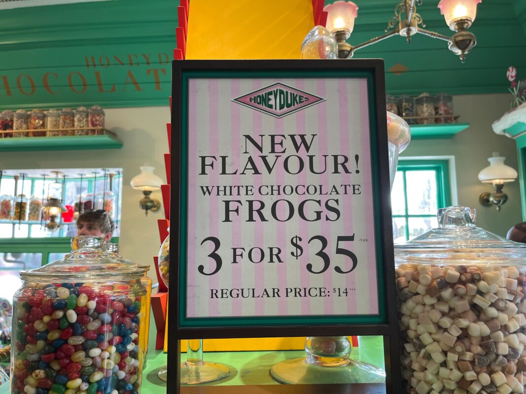 The new White Chocolate Frogs can be purchased in Honeydukes Candy Shop at Hogsmeade in Universal Islands of Adventure, Sugarplum’s Sweet Shop at Diagon Alley in Universal Studios Florida, and Universal Studios Store in Universal CityWalk Orlando.
