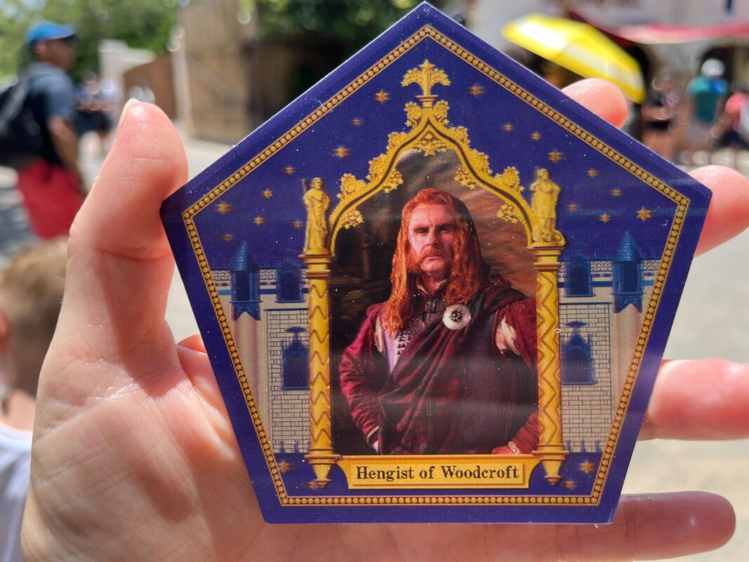 The real draw (and the reason for the price) of a Chocolate Frog is the wizard card. We got a card for Hengist of Woodcroft, the founder of Hogsmeade. This is an old wizarding card and, as far as we know, isn’t exclusive to the White Chocolate Frogs.