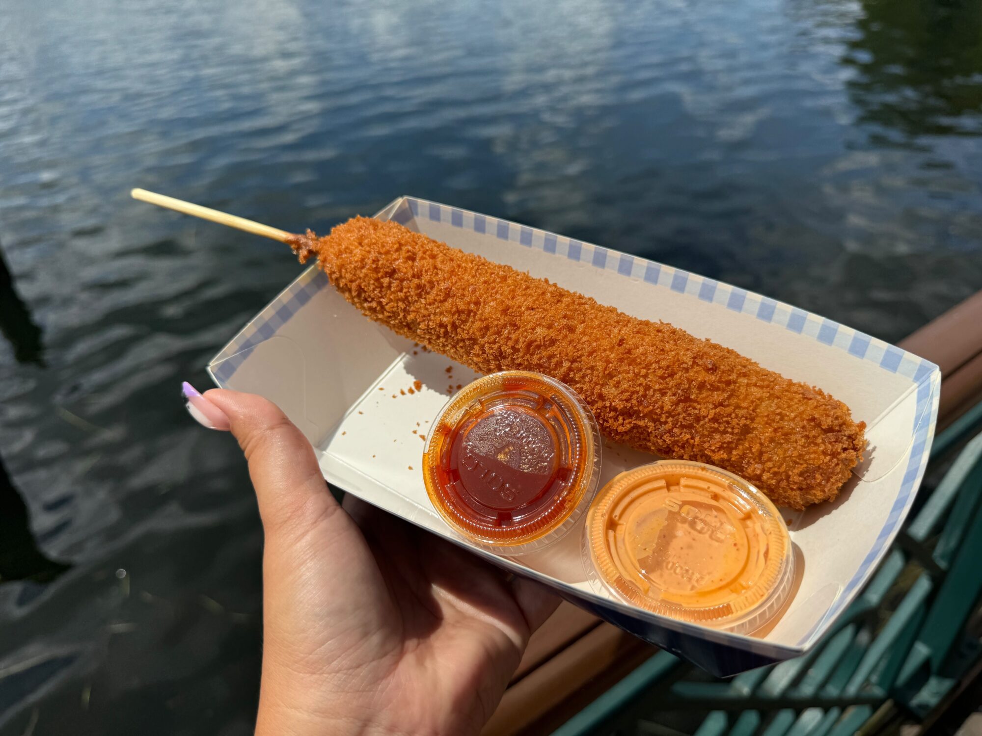 This dog is a meal. The extra panko makes it crunchy. The sriracha mayo is a miss for us. It’s sweet and creamy but not what we want with a corn dog. The Thai chili has a good sweet heat. We mostly liked it but it’s too heavy for the Florida heat. It could be a good shareable option.