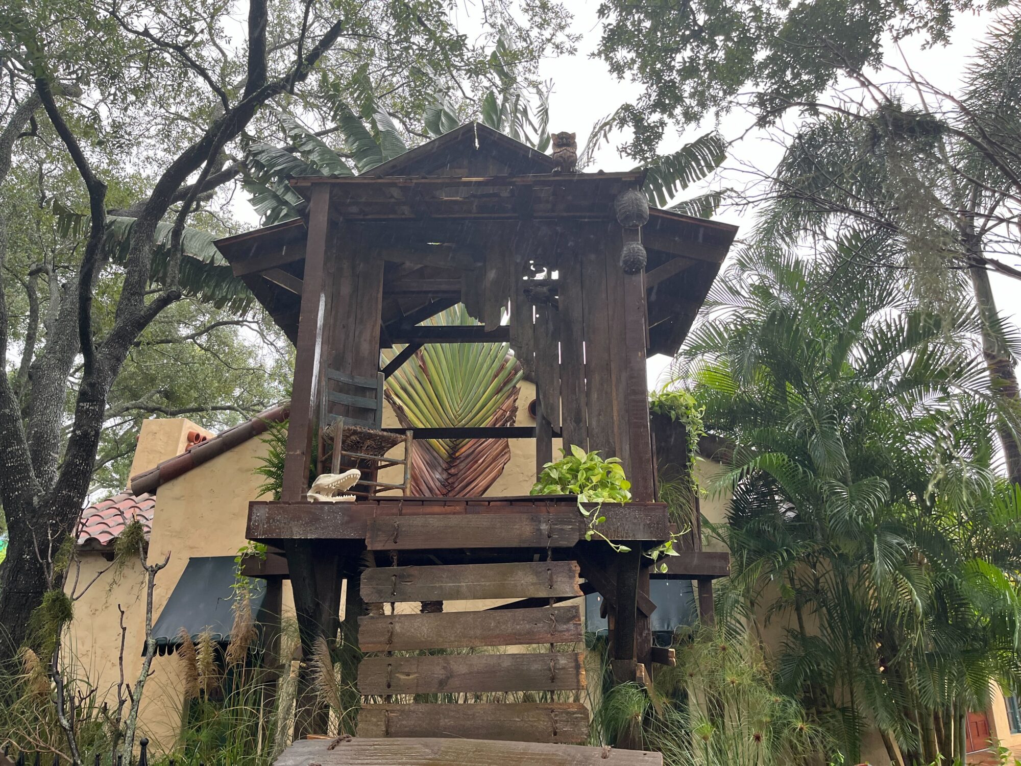 The above photo depicts a tree house that has been installed in the Swamp of the Undead scare zone.