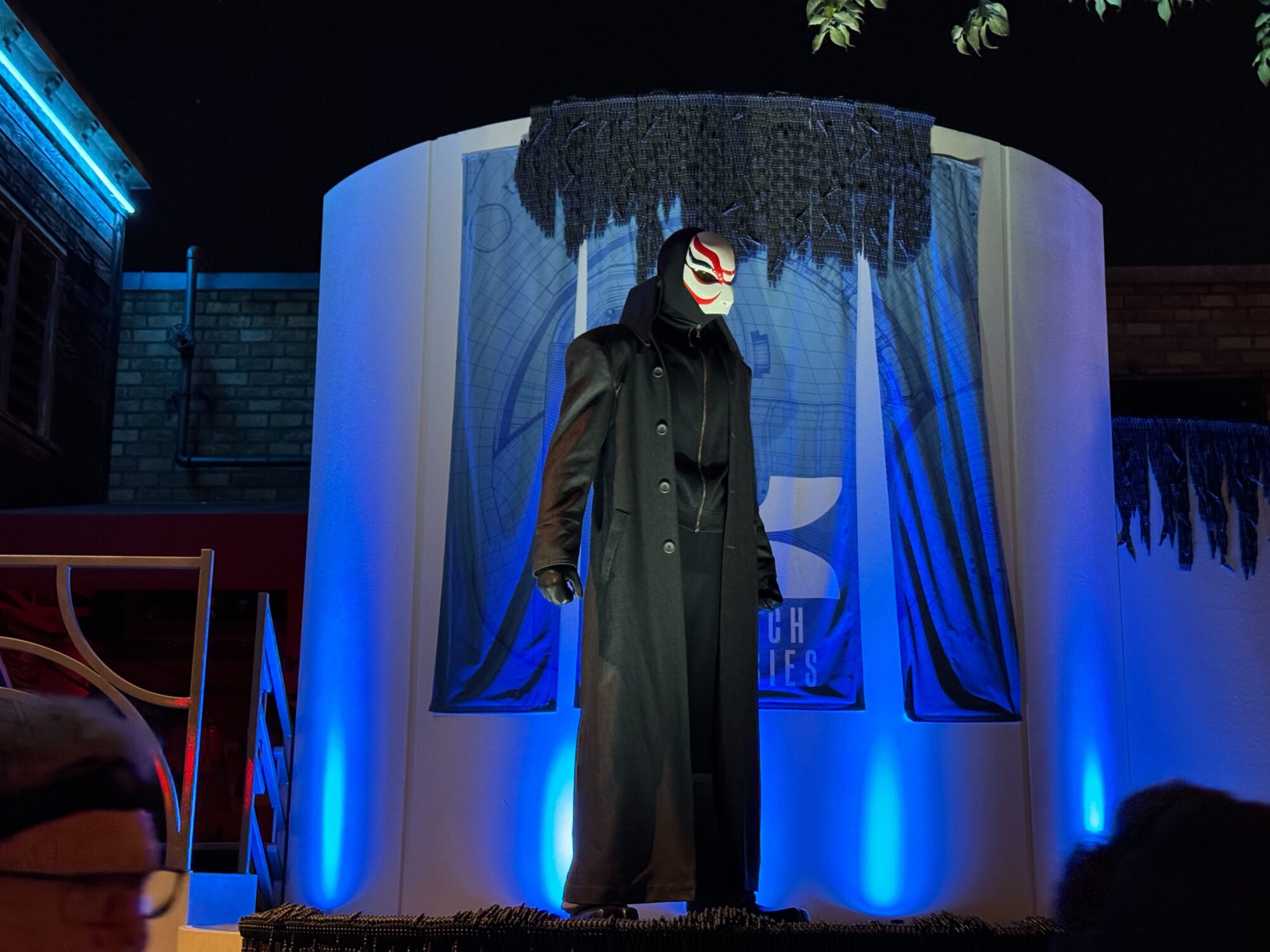 Yokai is greeting guests on the Yokai Treat Trail at San Fransokyo Maker’s Market in San Fransokyo Square. Also known as Robert Callaghan, this “Big Hero 6” villain made his Oogie Boogie Bash debut in 2023.