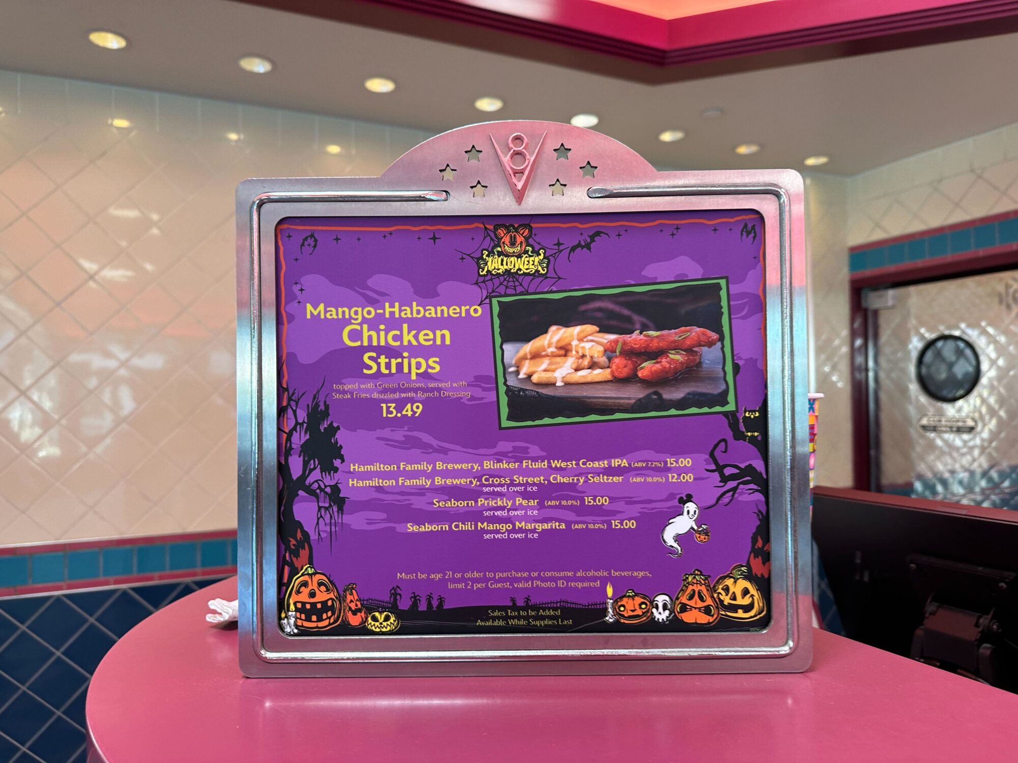 Visit Cars Land at Disney California Adventure this Halloween season to pick up the returning Mango-Habanero Chicken Strips from Flo’s V8 Cafe.
