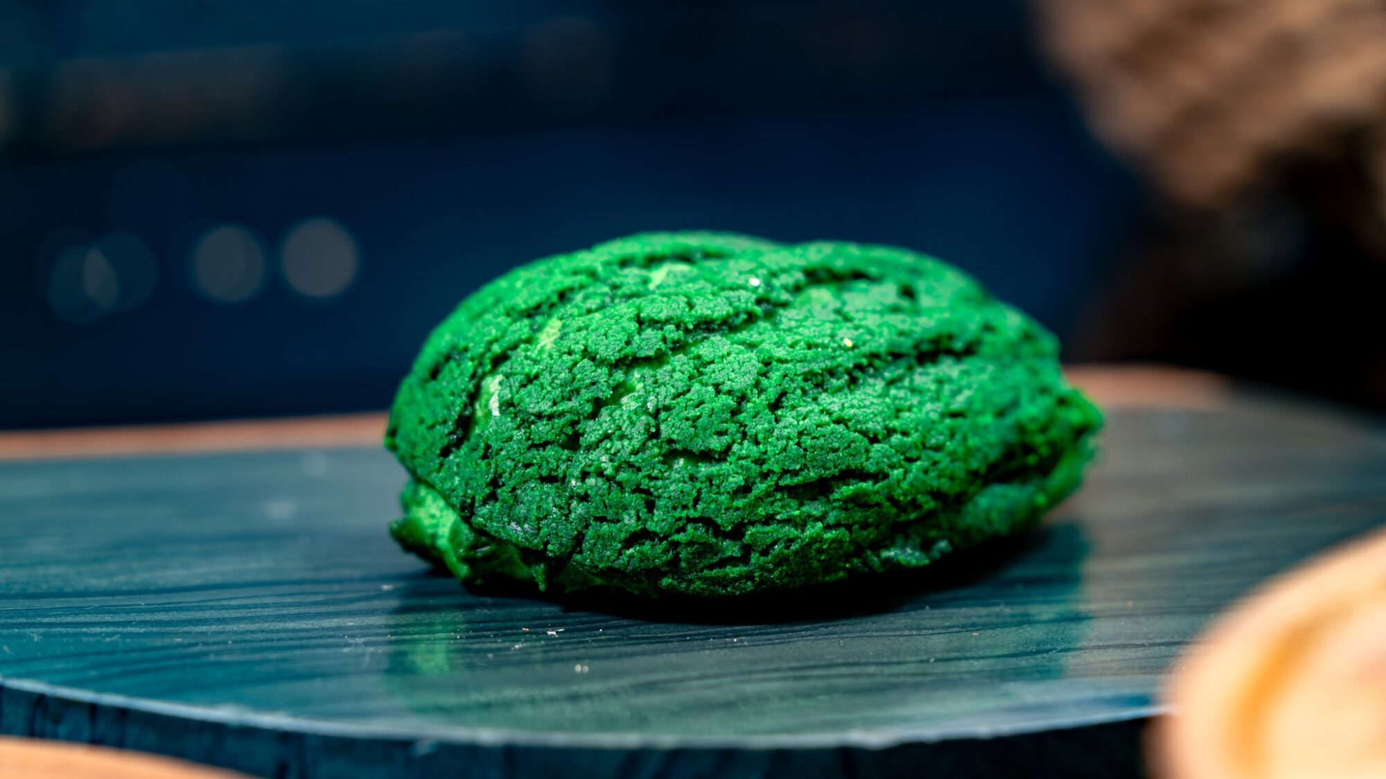 For dessert is the new Jogan Seed Oi-Oi Puff. This is a green cream puff with green crunch and ube creme.