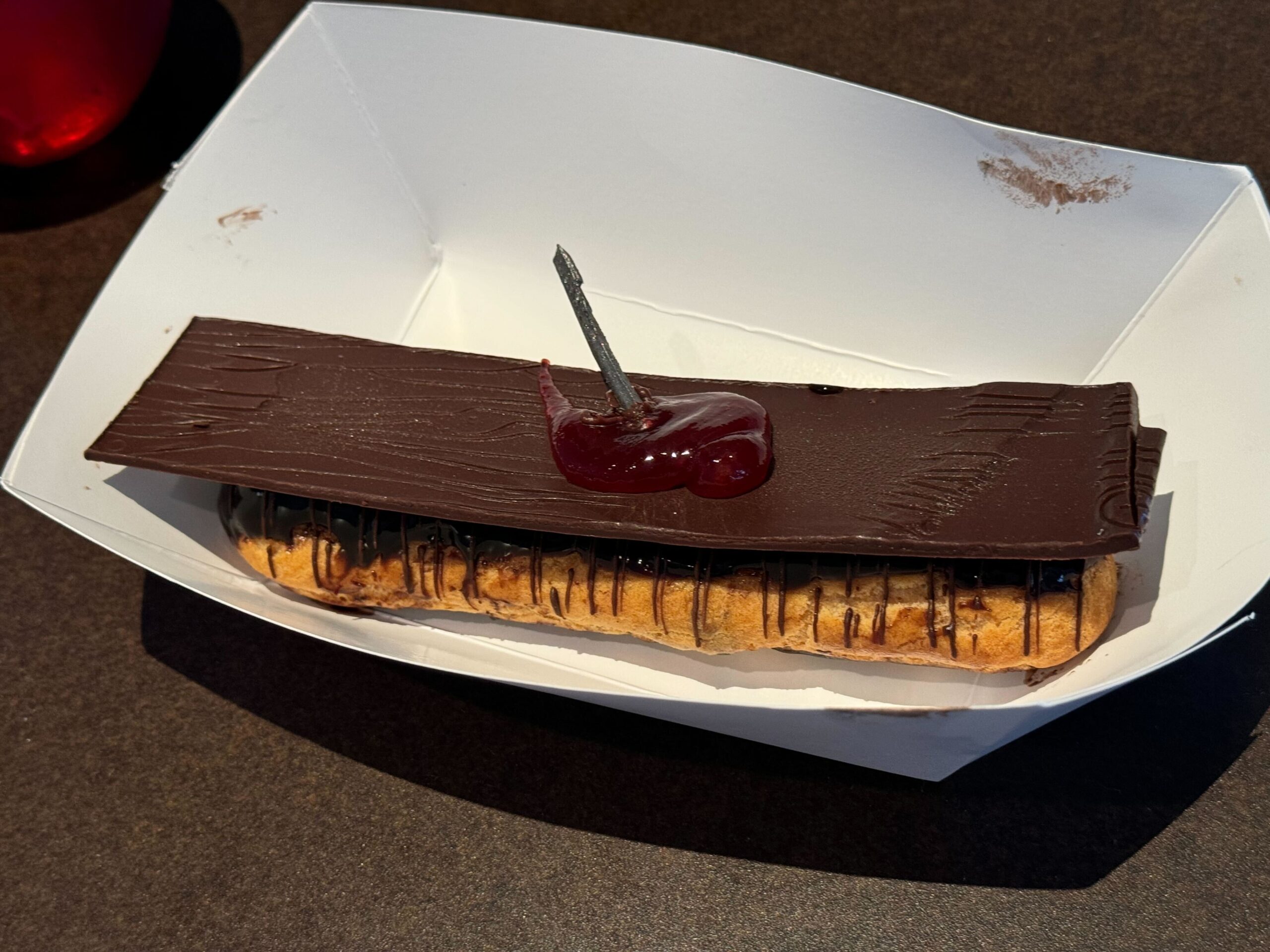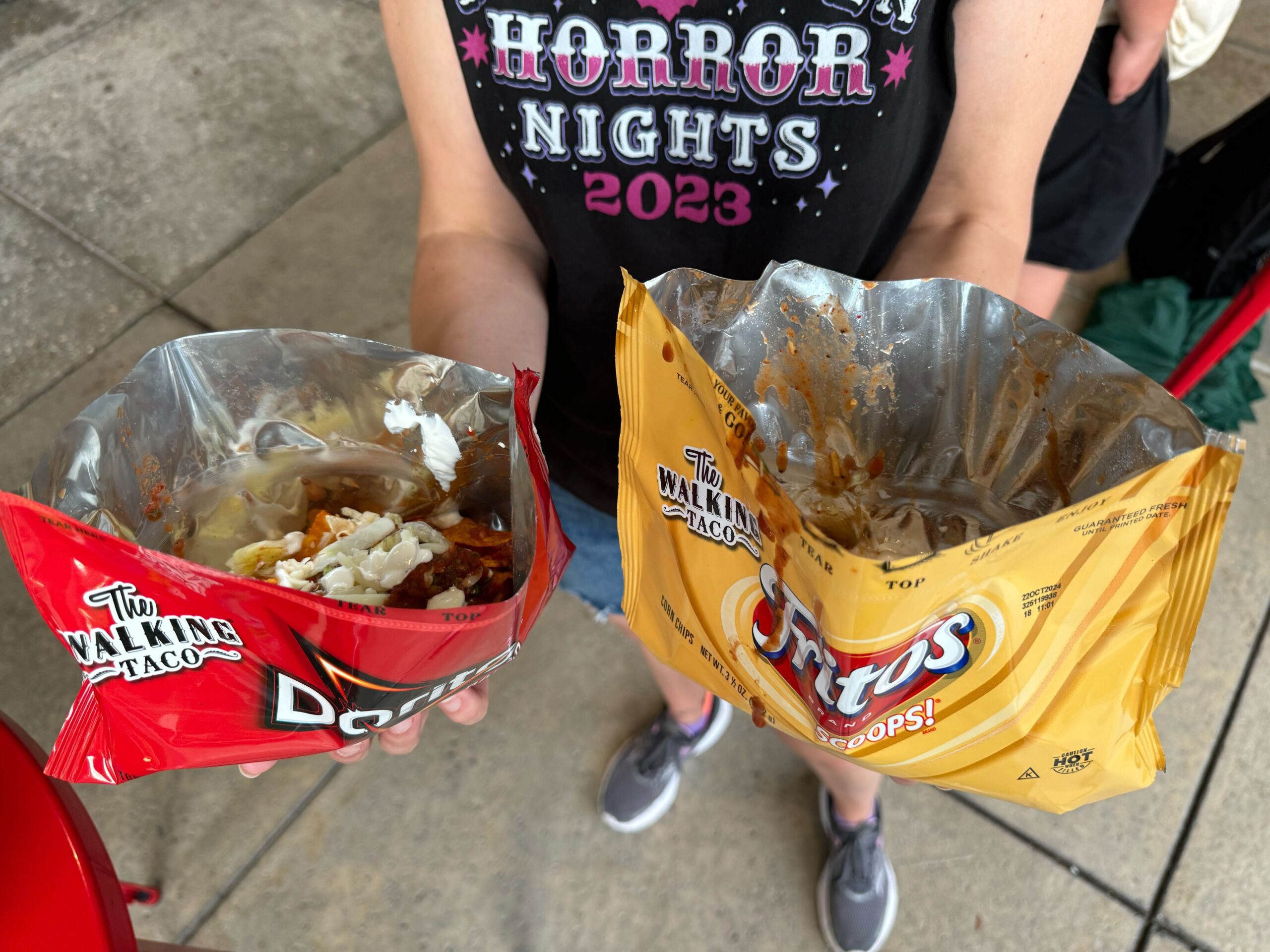 The sauce was “bloody good,” but there wasn’t enough of it. Regardless, this was delicious. This and the burger are more along the lines of what we want from HHN. Something delicious and easy to eat in line.