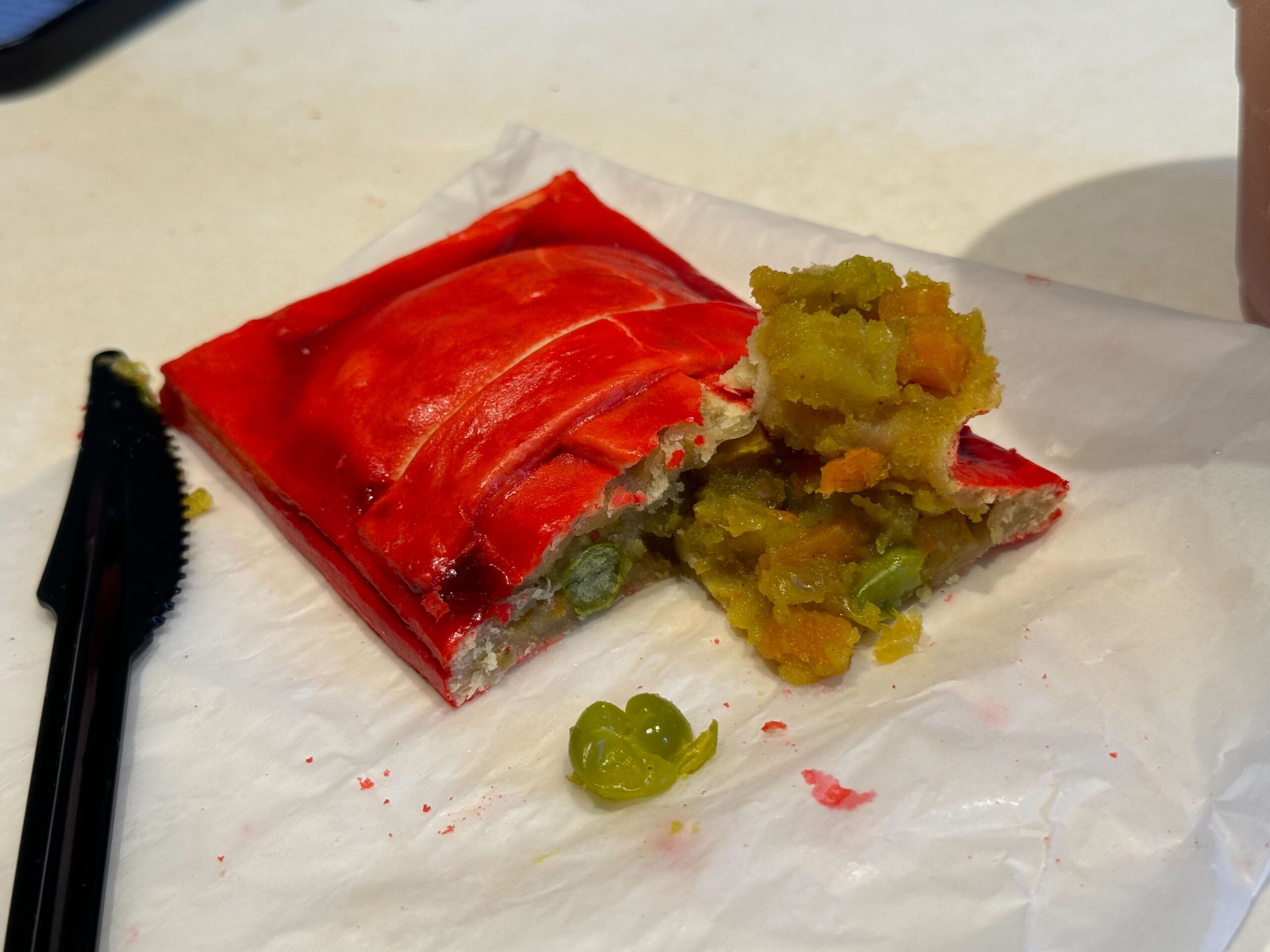 These are a returning treat that we just love. The vegan pastry is firm and complements the well-spiced, plentiful filling.