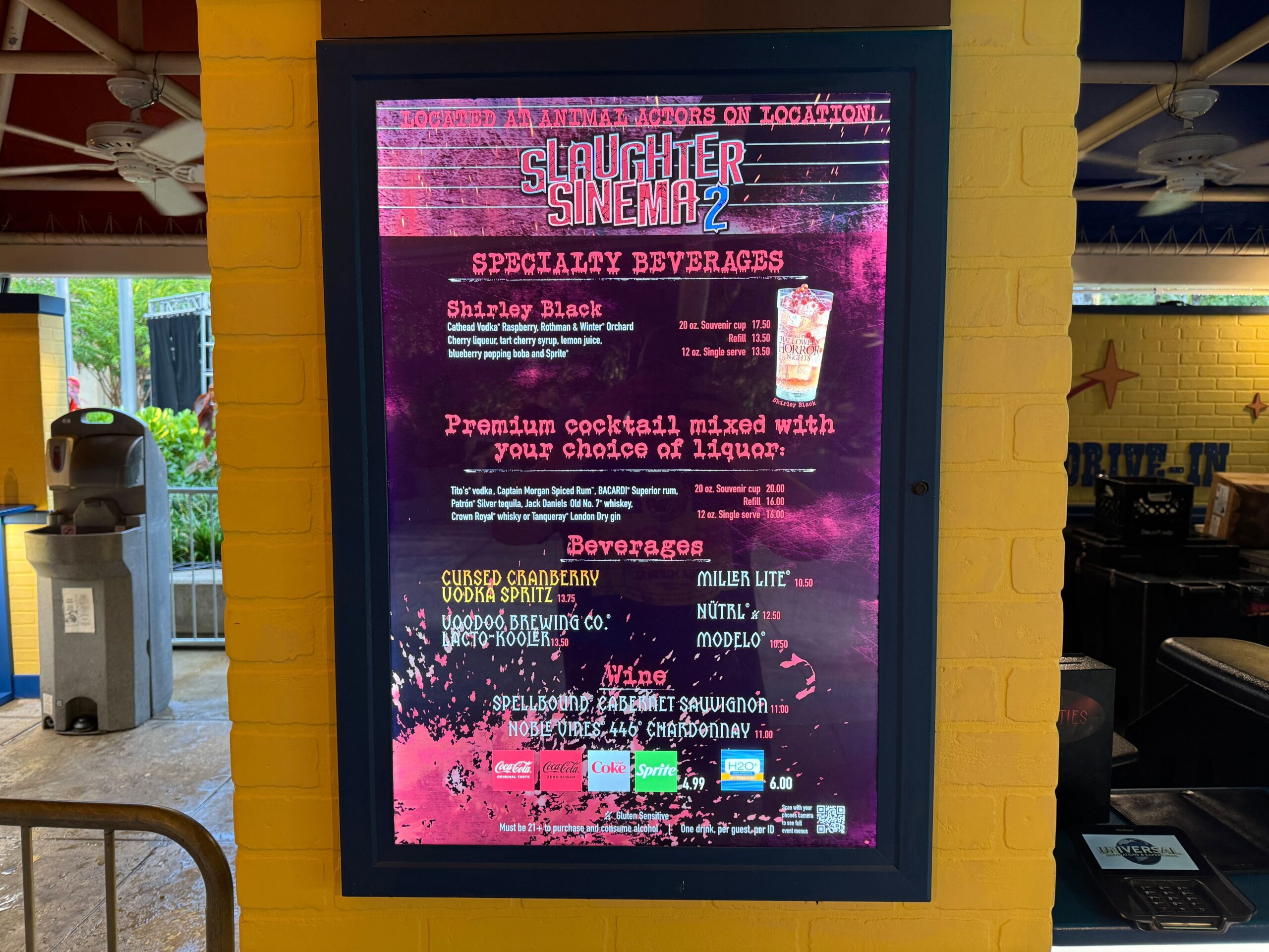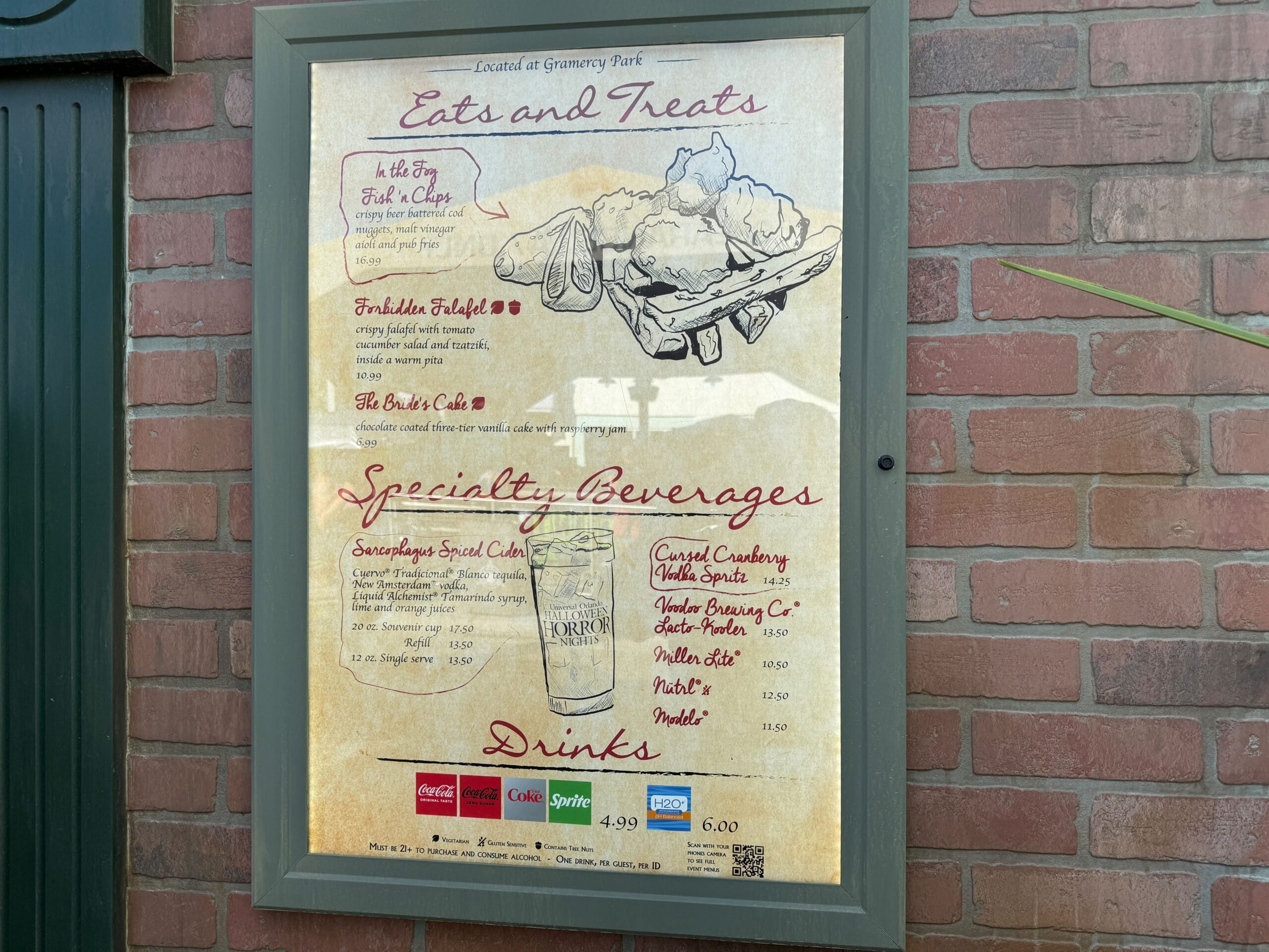 • 🆕 Creepy Cola $17.50 for 20 oz. souvenir cup, $13.50 for refill, or $13.50 for 12 oz. single serve