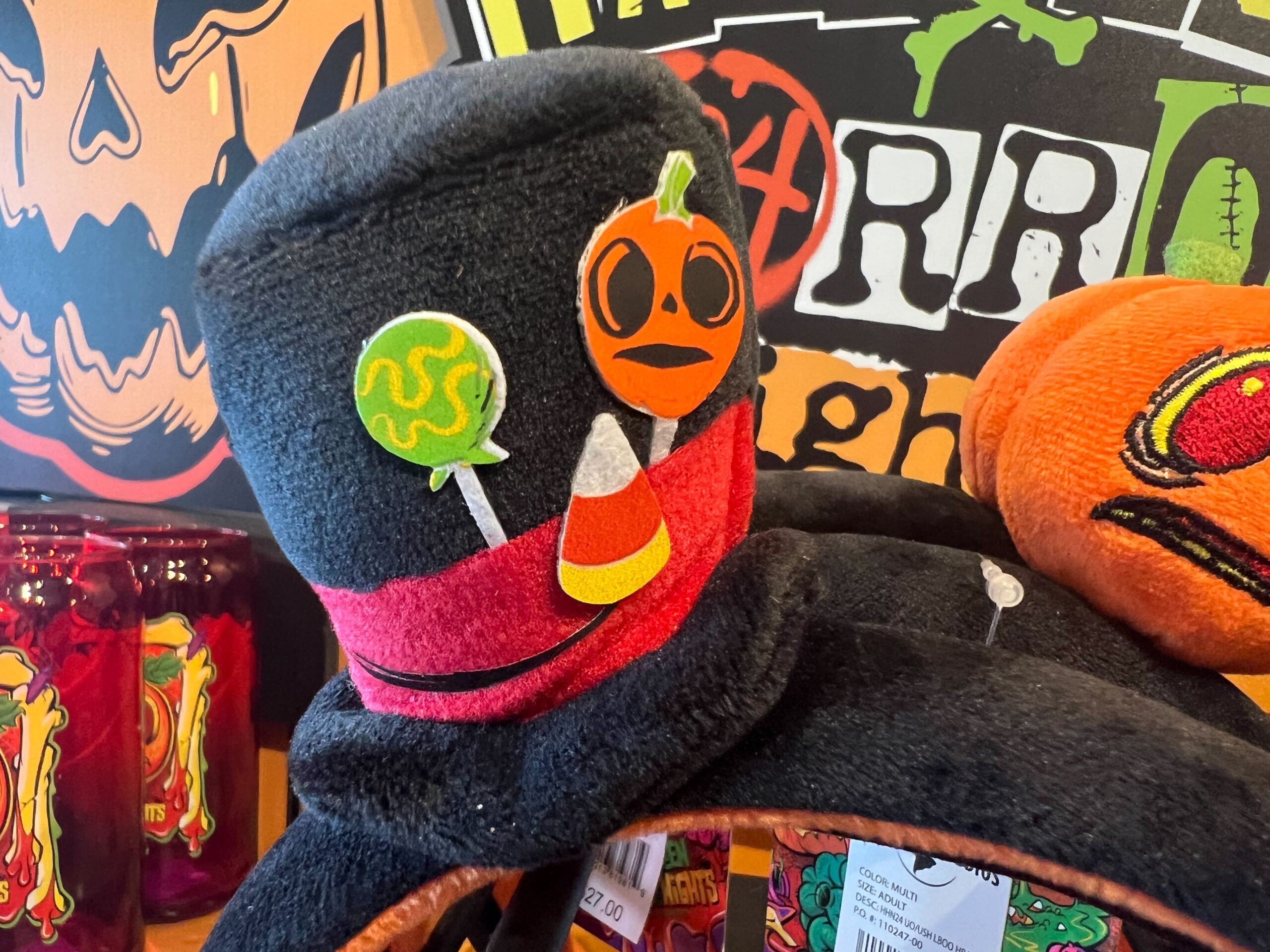 The backside of the headband is mostly plain, except for a Halloween Horror Nights 2024 tag stitched to the back of Major Sweets’ hat.