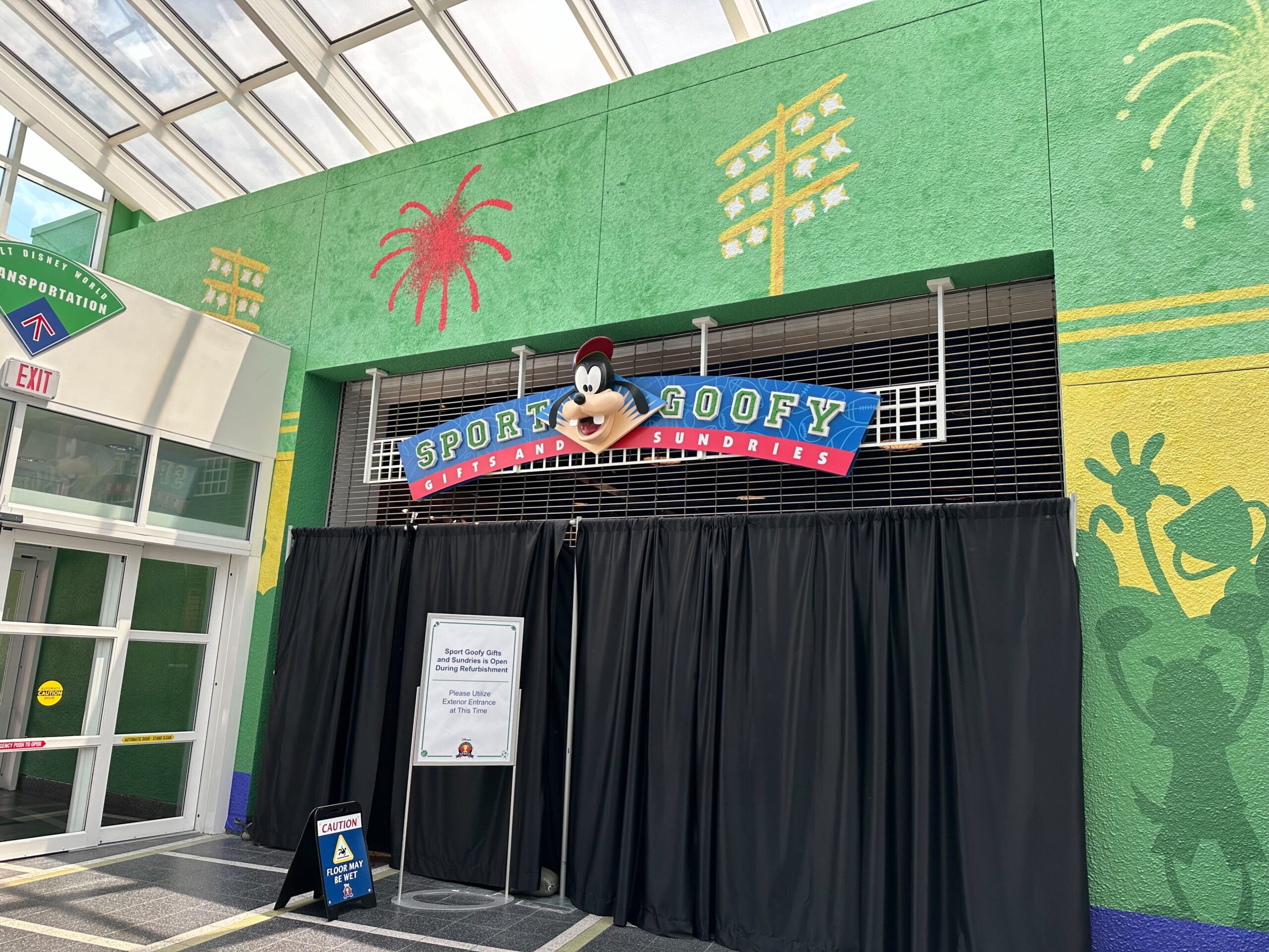 The mural stretches along the wall from Sport Goofy Gifts and Sundries to the End Zone Food Court. The main entrance of Sport Goofy is currently closed for refurbishments but guests can access the store through the exterior entrance.