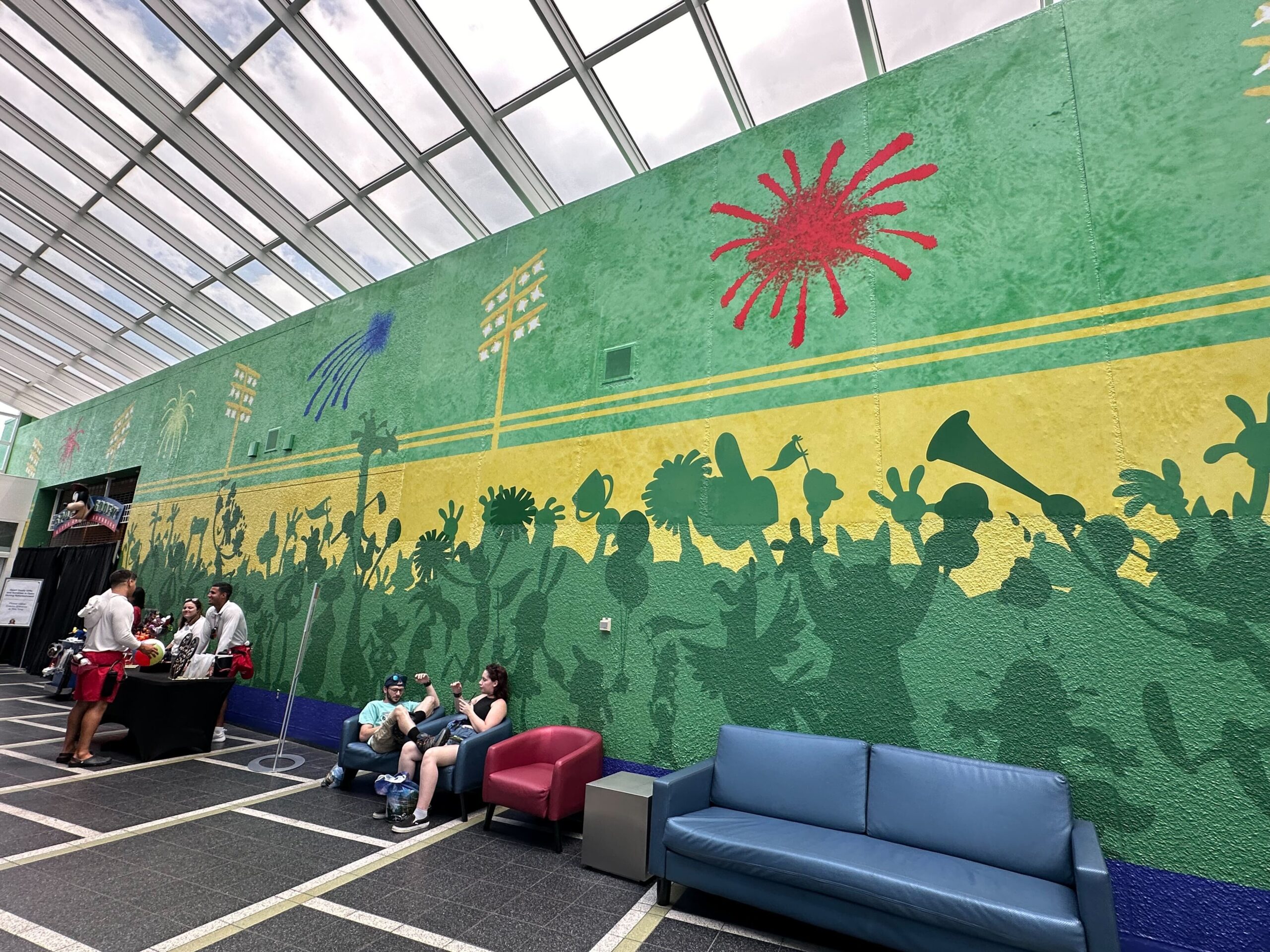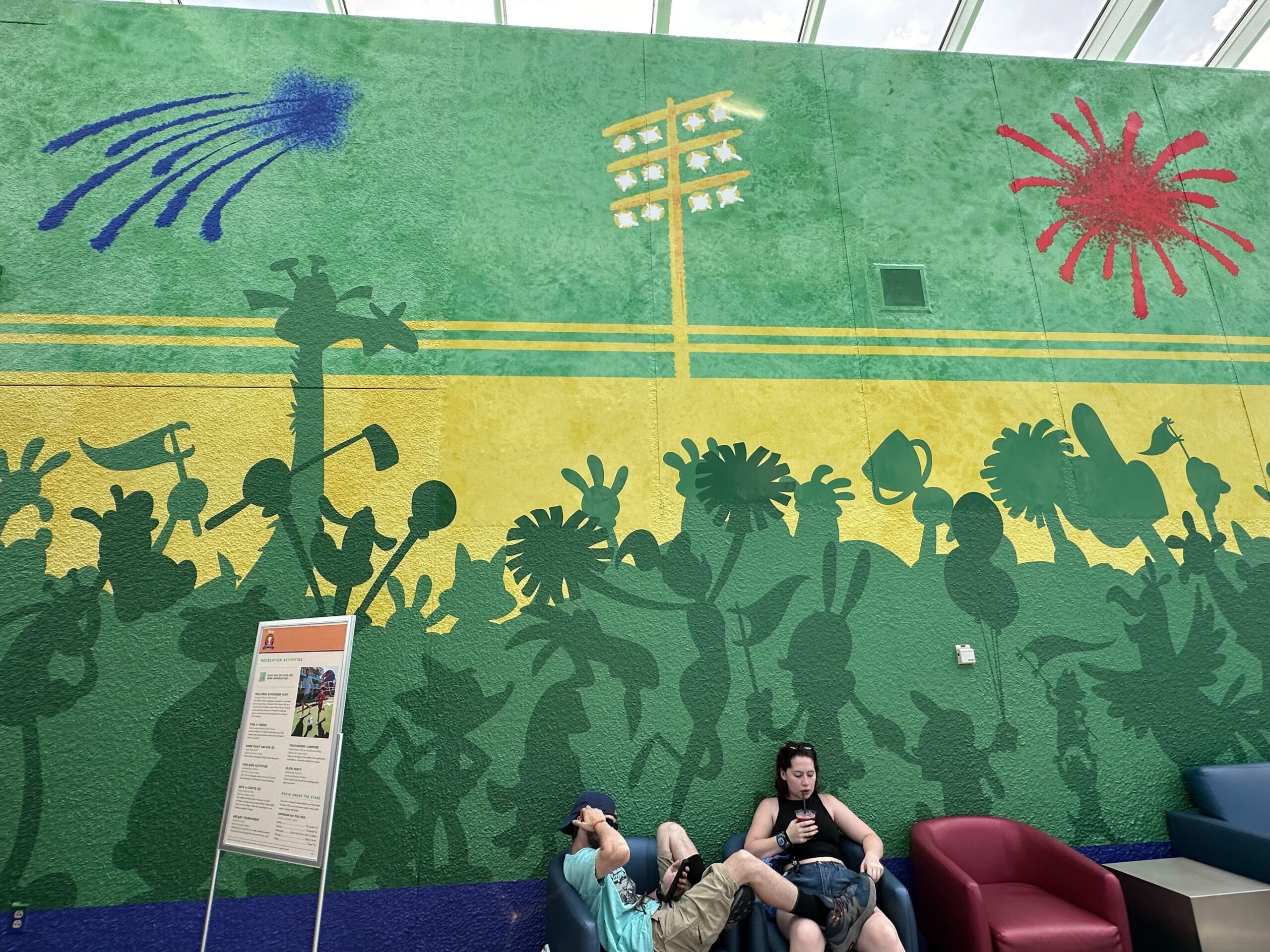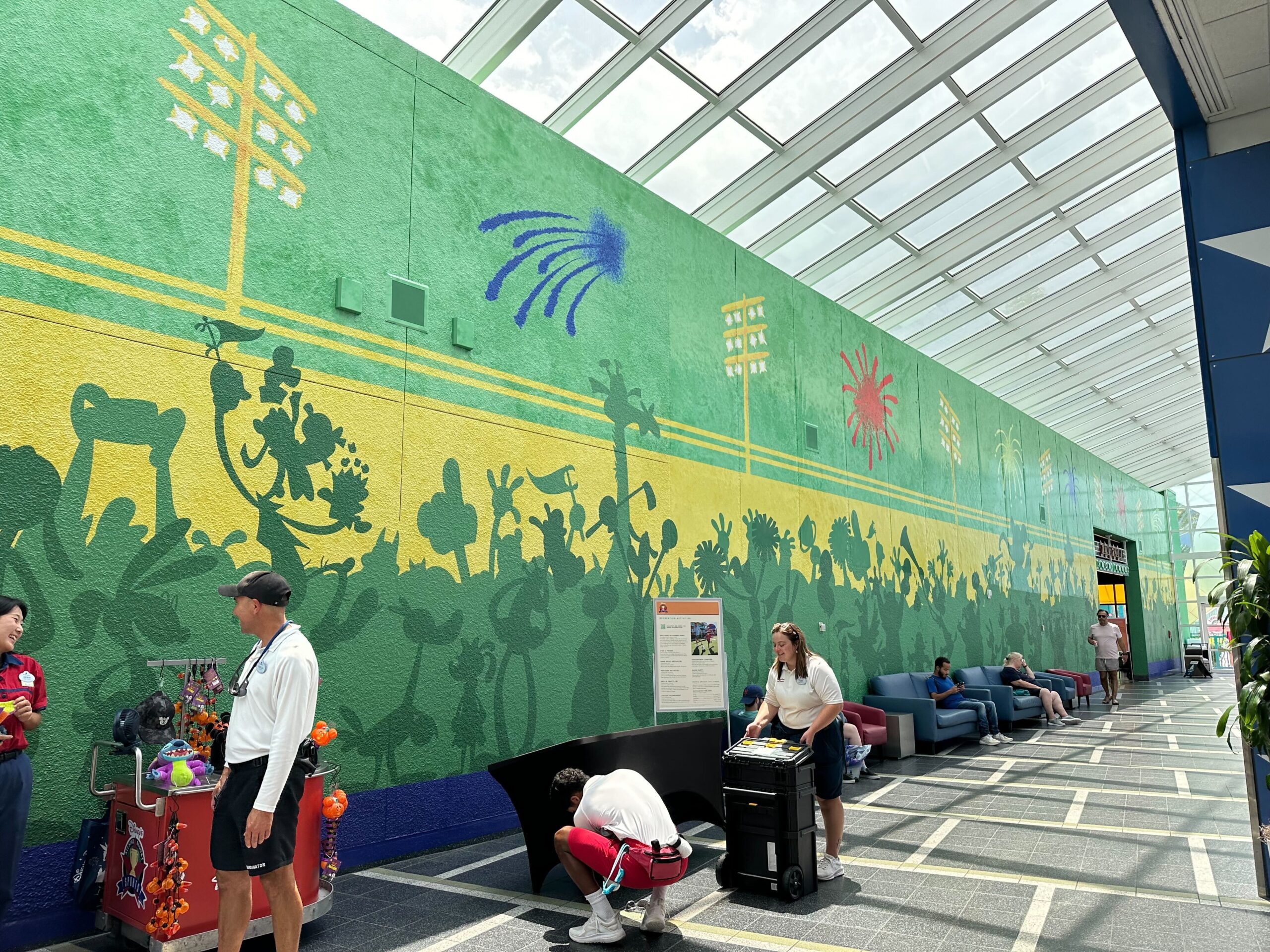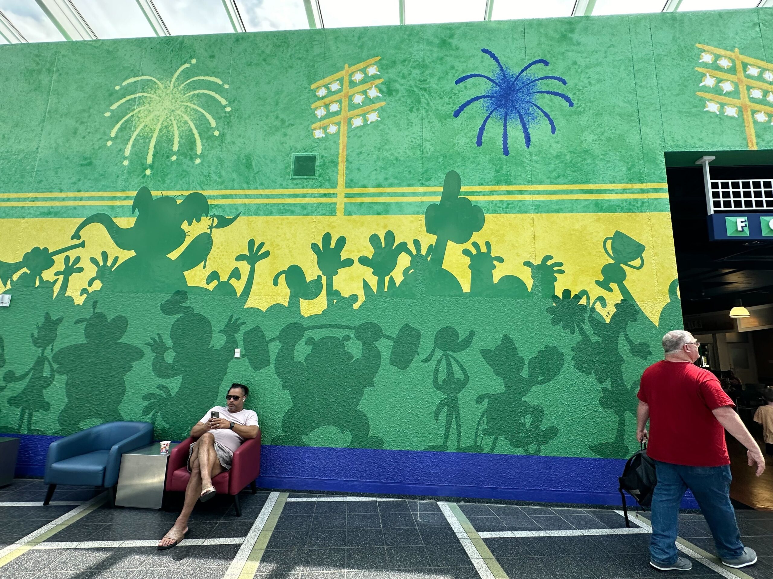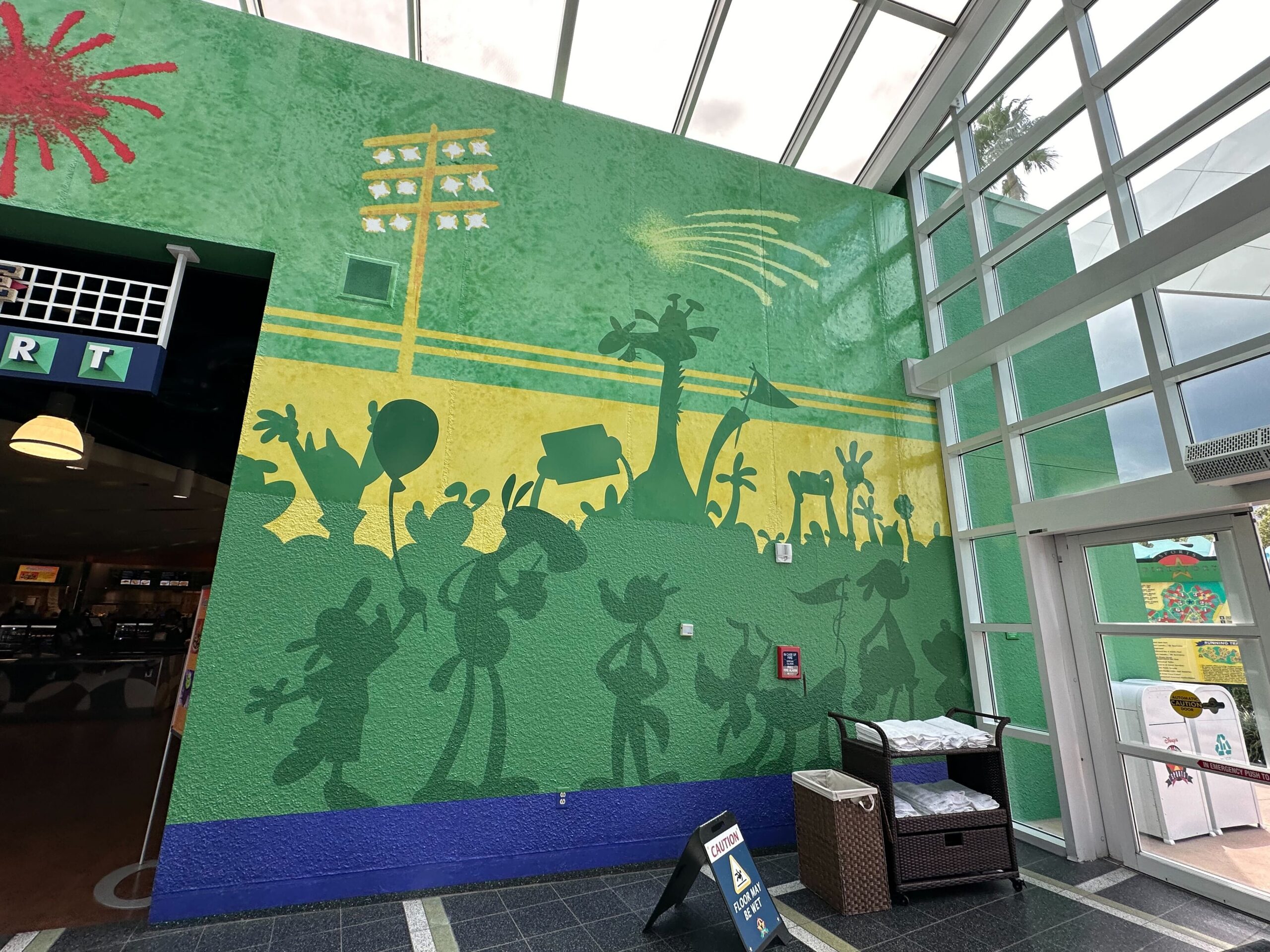 The mural’s style is the same as the new murals at the other two All-Star Resorts. This wall previously featured the Hall of Fame MagicBand+ interactive display and framed photos of sports stars.
