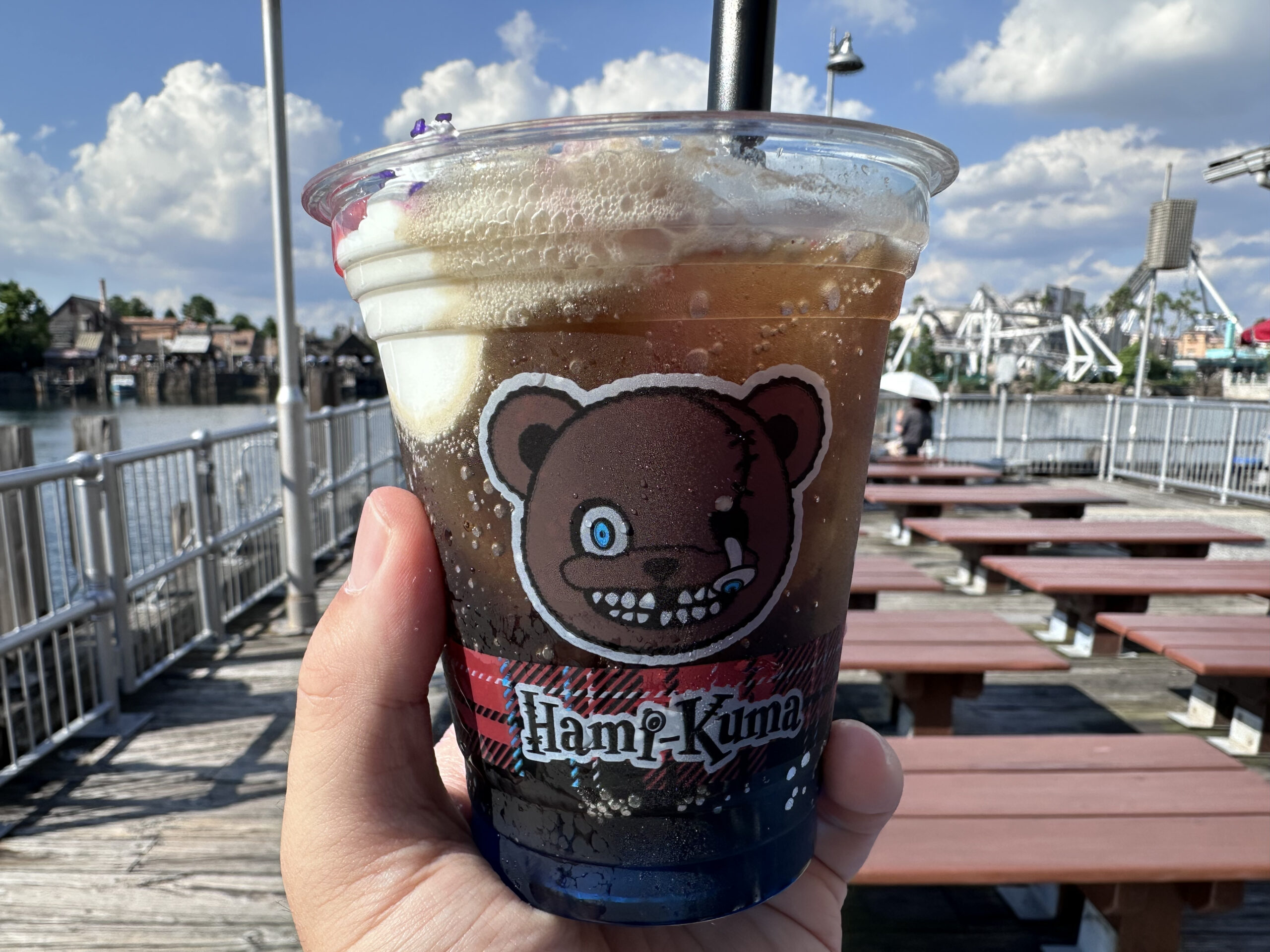 The combination of cola and whipped cream in the Hami-Kuma Drink creates a unique contrast where the crispness of the cola blends with the sweetness of the whipped cream. As the two meld together, it creates a nice, creamy texture.