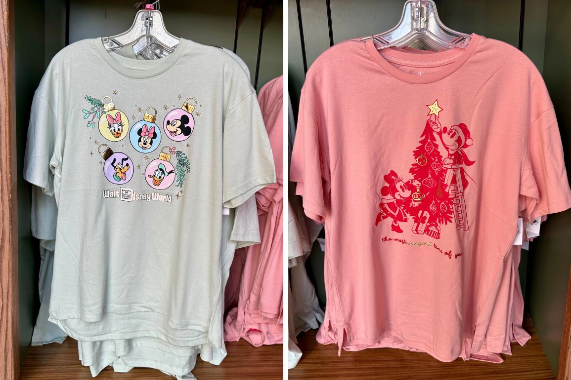 In the Port of Entry in EPCOT, there are two new holiday shirts available for $34.99 each. I like the bobble shirt the most! Let me know which you like more in the comments below.