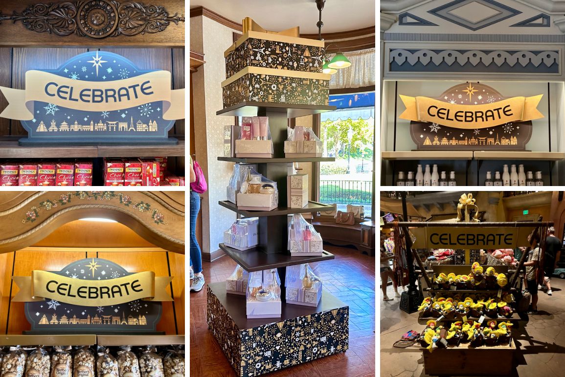 In the World Showcase, there was already some decor for the Festival of Holidays. We spotted the signs in multiple locations. These pics are from the United Kingdom, Germany, France, Norway, and Mexico.