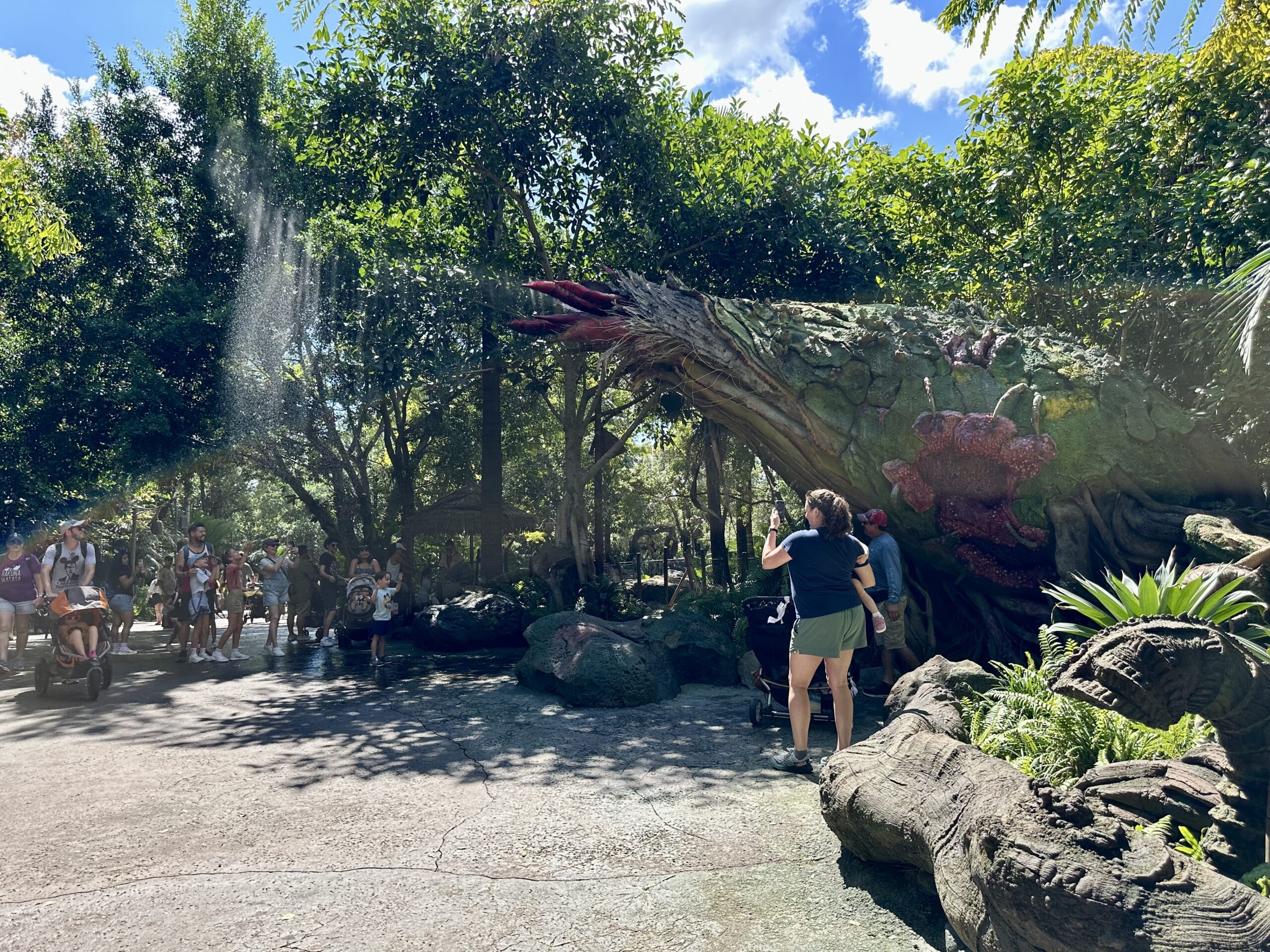 Okay, you caught me. I park-hopped to Disney’s Animal Kingdom. The baja tickler is certainly not located in the Grand Floridian, but it is located at the entrance to Pandora – The World of Avatar in Animal Kingdom. When I walked into the immersive land I spotted a father working diligently to make the flaska reclinata spew water. In Pandora, the Na’vi call this a txumtsä’wll (don’t ask me to say it) but it means “poison-squirting plant” which just seems an odd choice for Disney… Maybe I’m overthinking it.