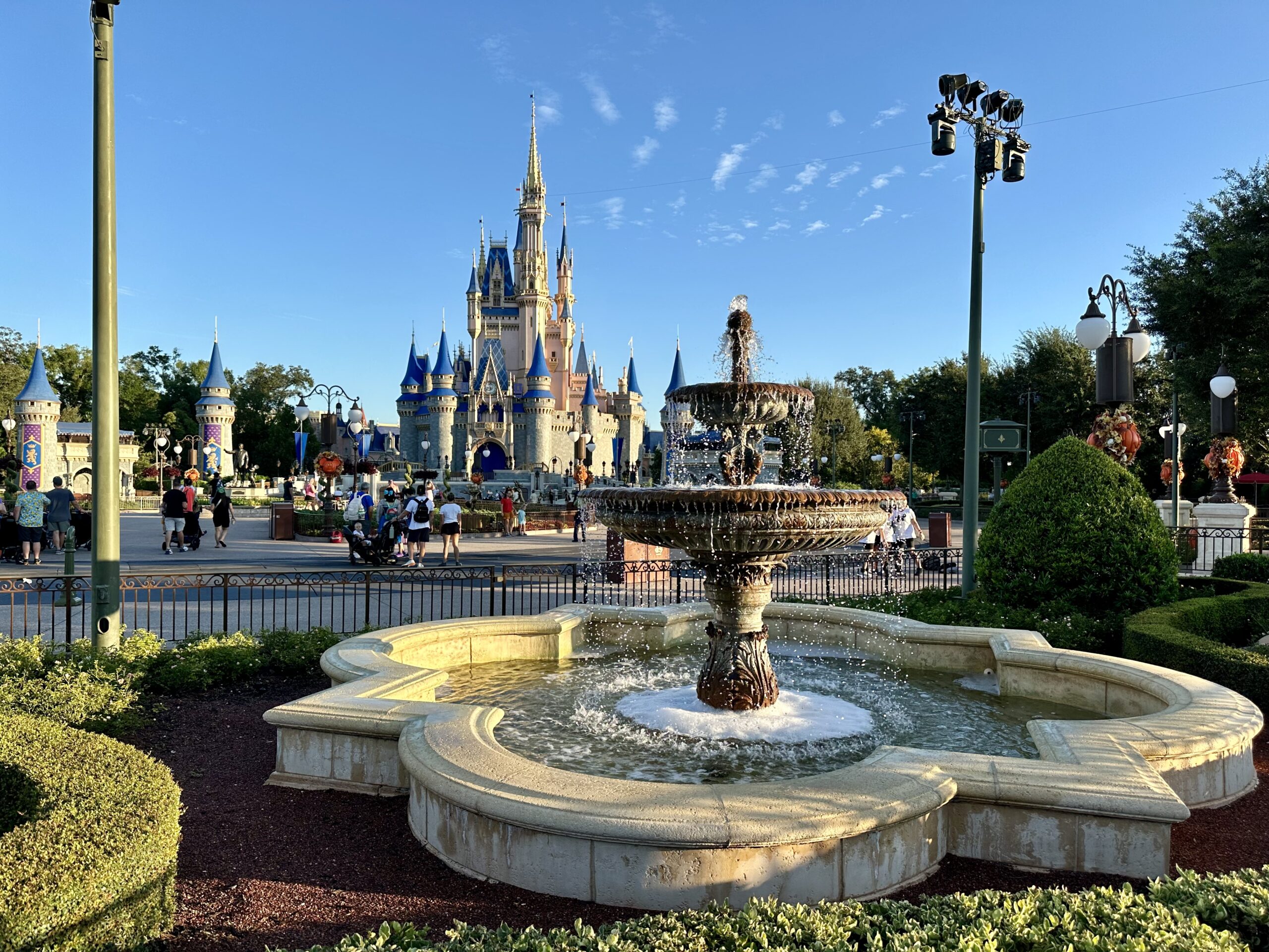 Usually, Magic Kingdom has smaller crowds on days it is hosting Mickey’s Not-So-Scary Halloween Party. I decided to take in the castle for an extra second this morning before making my way into the park. This spot is located to the right of the grassy area in front of the castle. It’s a really great spot for family photos, and usually, there are a few Photo Pass Cast Members roaming around the area to help out.
