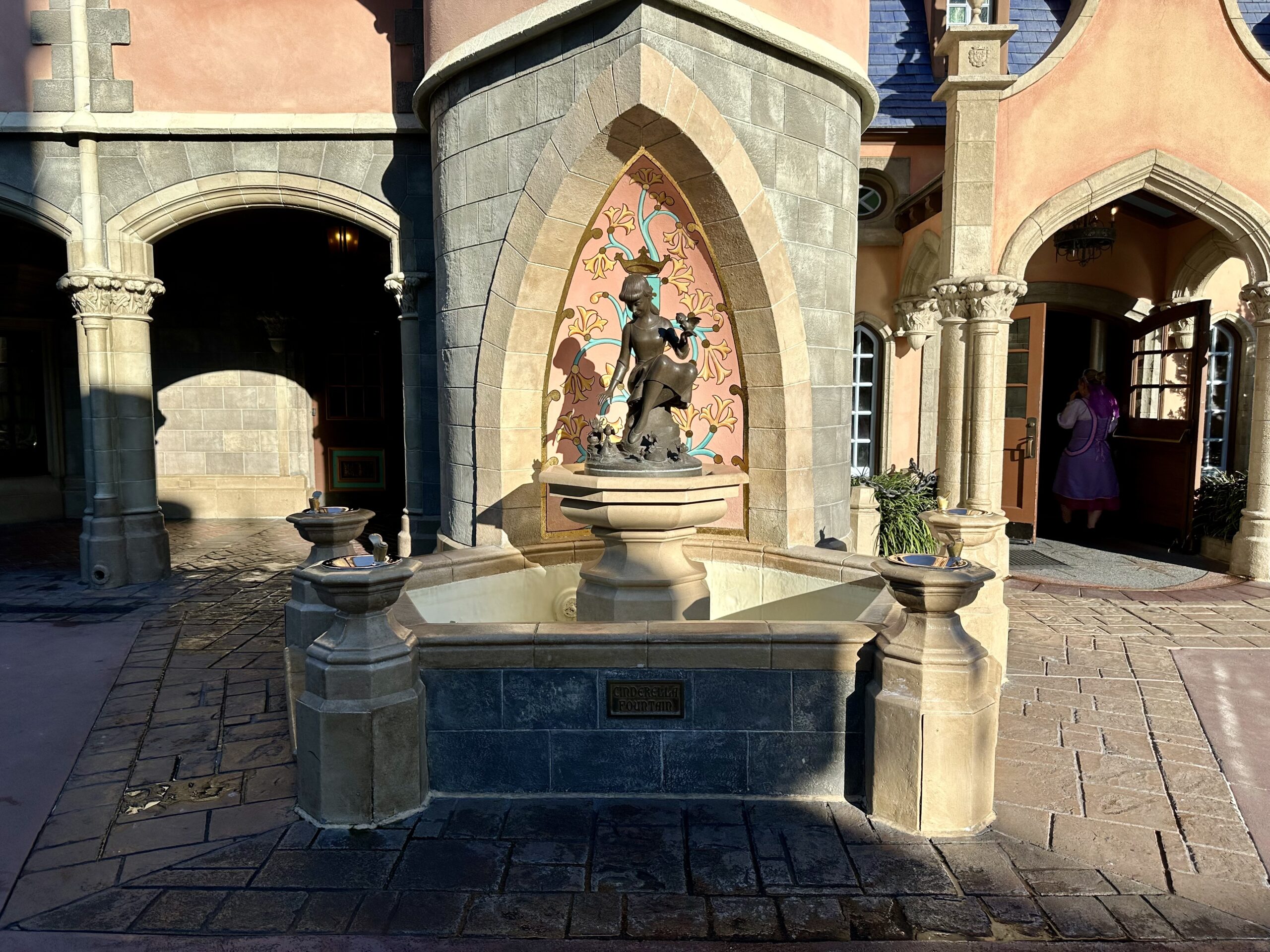 When I walked to Fantasyland, I noticed that the Cinderella Fountain was off and drained. The drinking fountains surrounding her remained functional. When you go to the parks as often as we do, it’s these small details that really matter to you. Hopefully, this will be a minor fix as the fountain went through a total refurbishment just last year. Cinderella Fountain returned from refurbishment in September 2023.