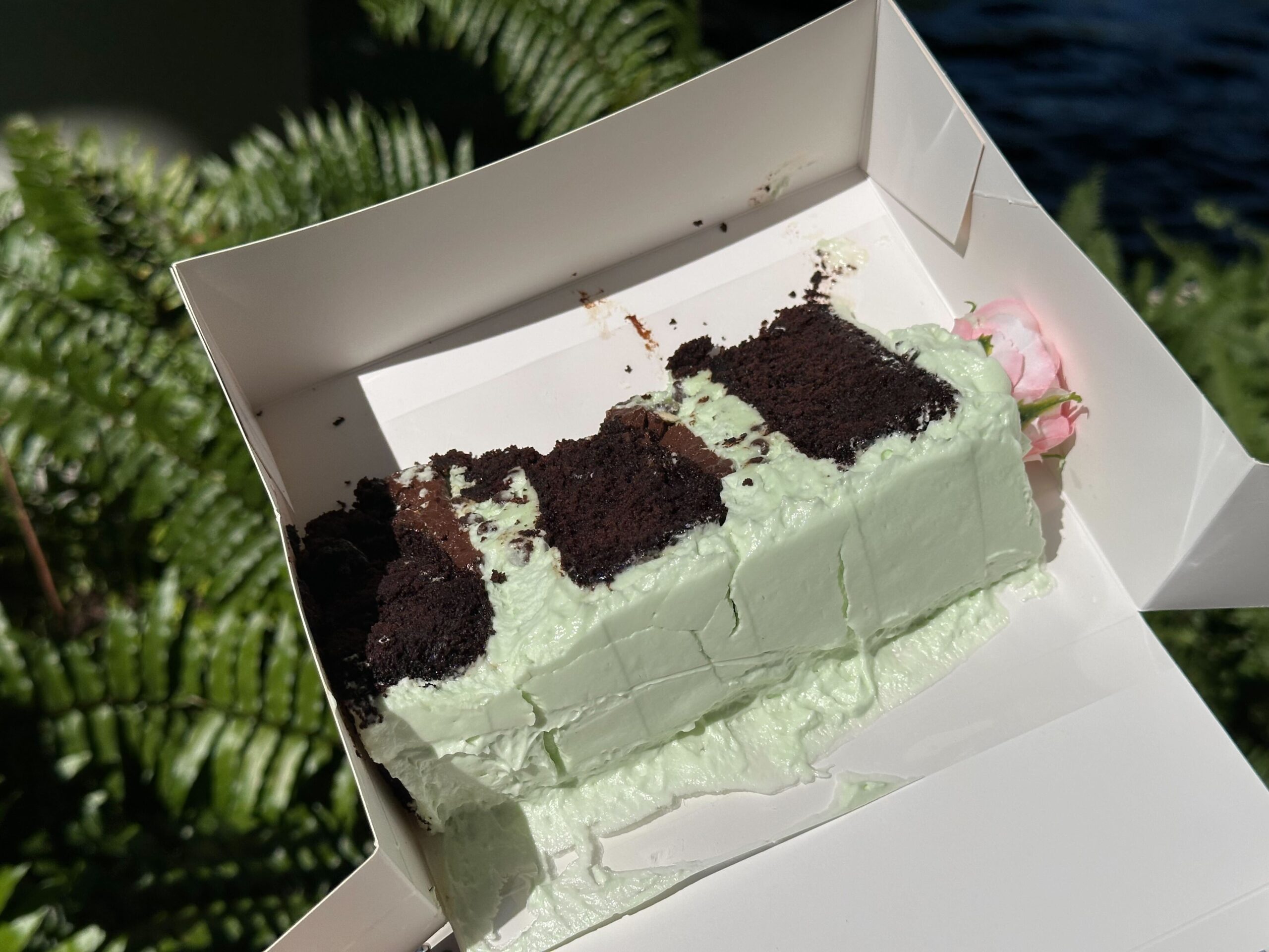This slice tasted much more fresh and moist than the Famous Earl’s Chocolate Cake. We really enjoyed the icing and can see why fans of mint would love this. We’re not personally huge fans of mint desserts, but it’s not an overpowering flavor at all.