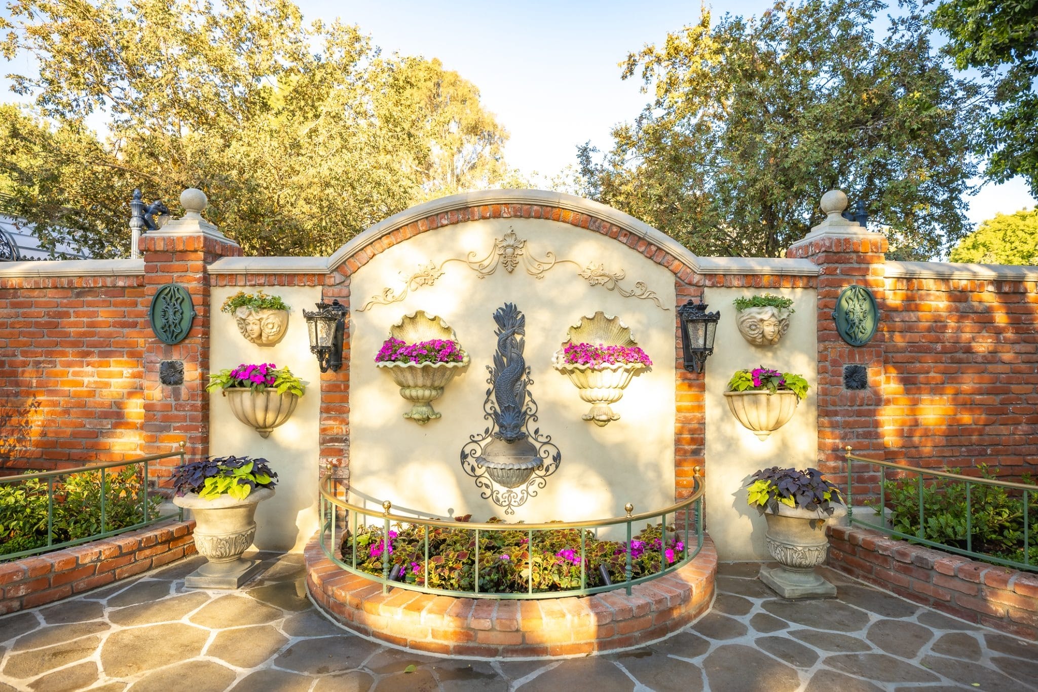When entering the new part of the queue, guests will see the Spanish fountain that once sat in the middle of Magnolia Park. The new gardens are guarded by a pair of raven statues. Ravens, Disney notes, often represent a connection between the living world and the spirit world. Guests will also encounter the crouching figure of a cat, tucked away among the grasses, ready to pounce.