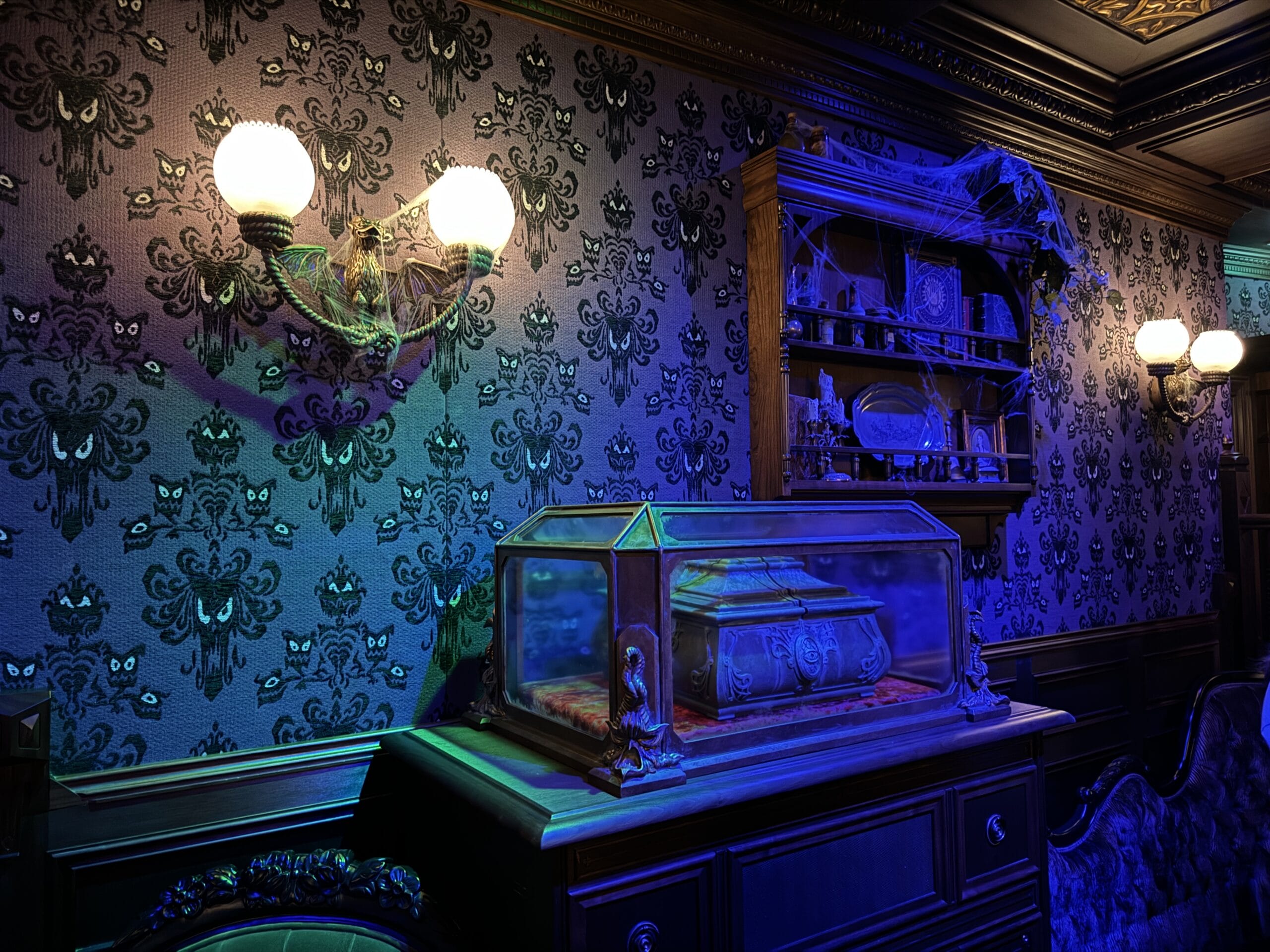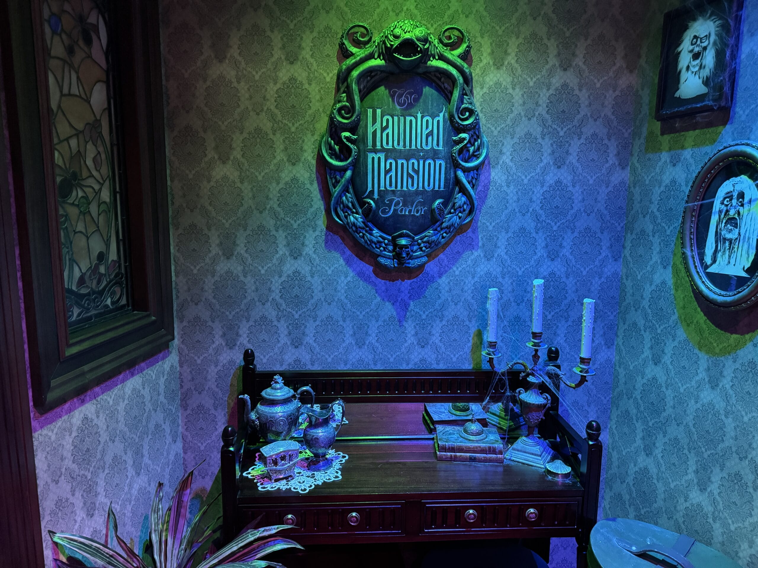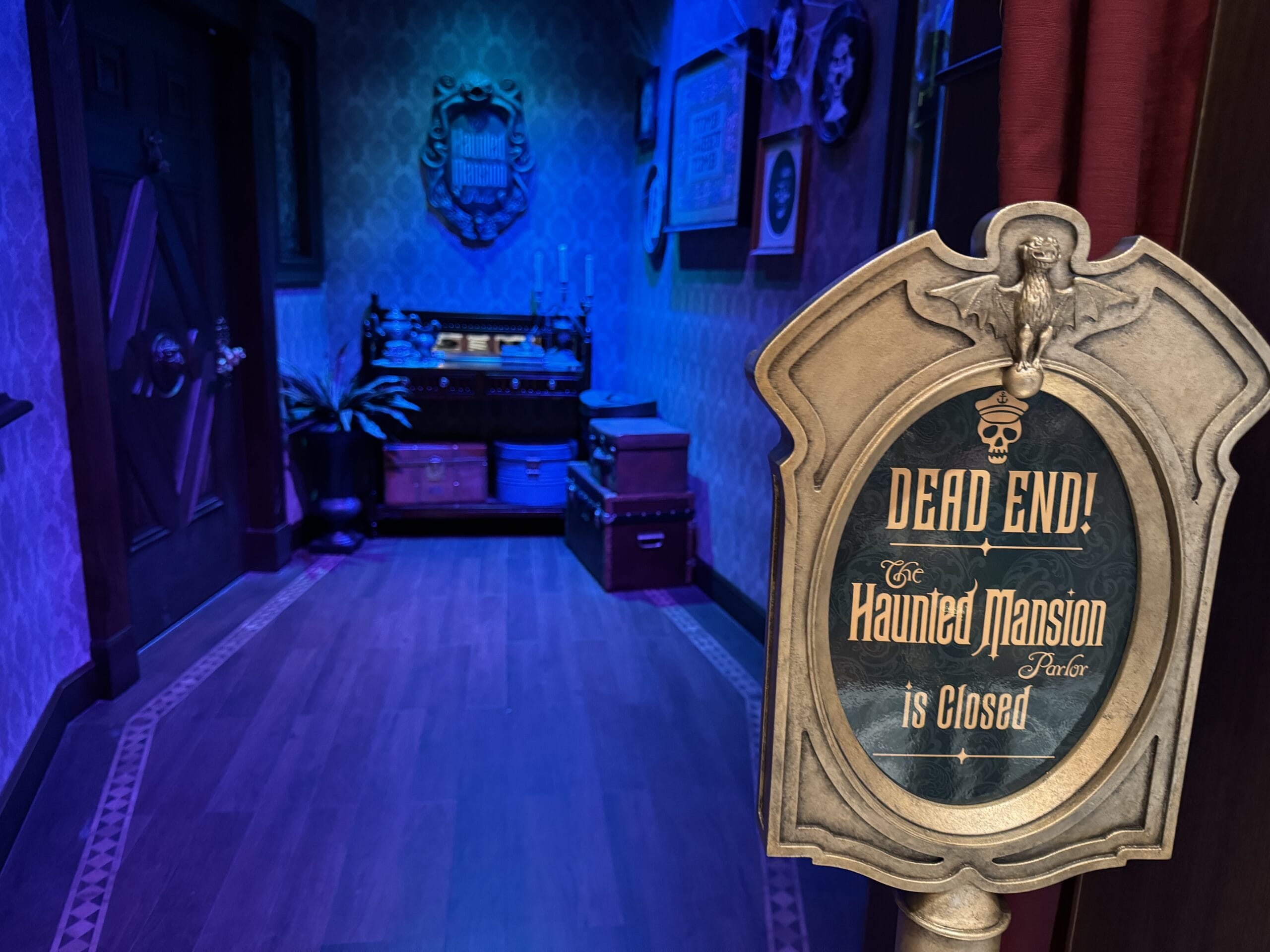 When the Parlor is closed, the sign is flipped to say, “Dead end! The Haunted Mansion Parlor is closed.”