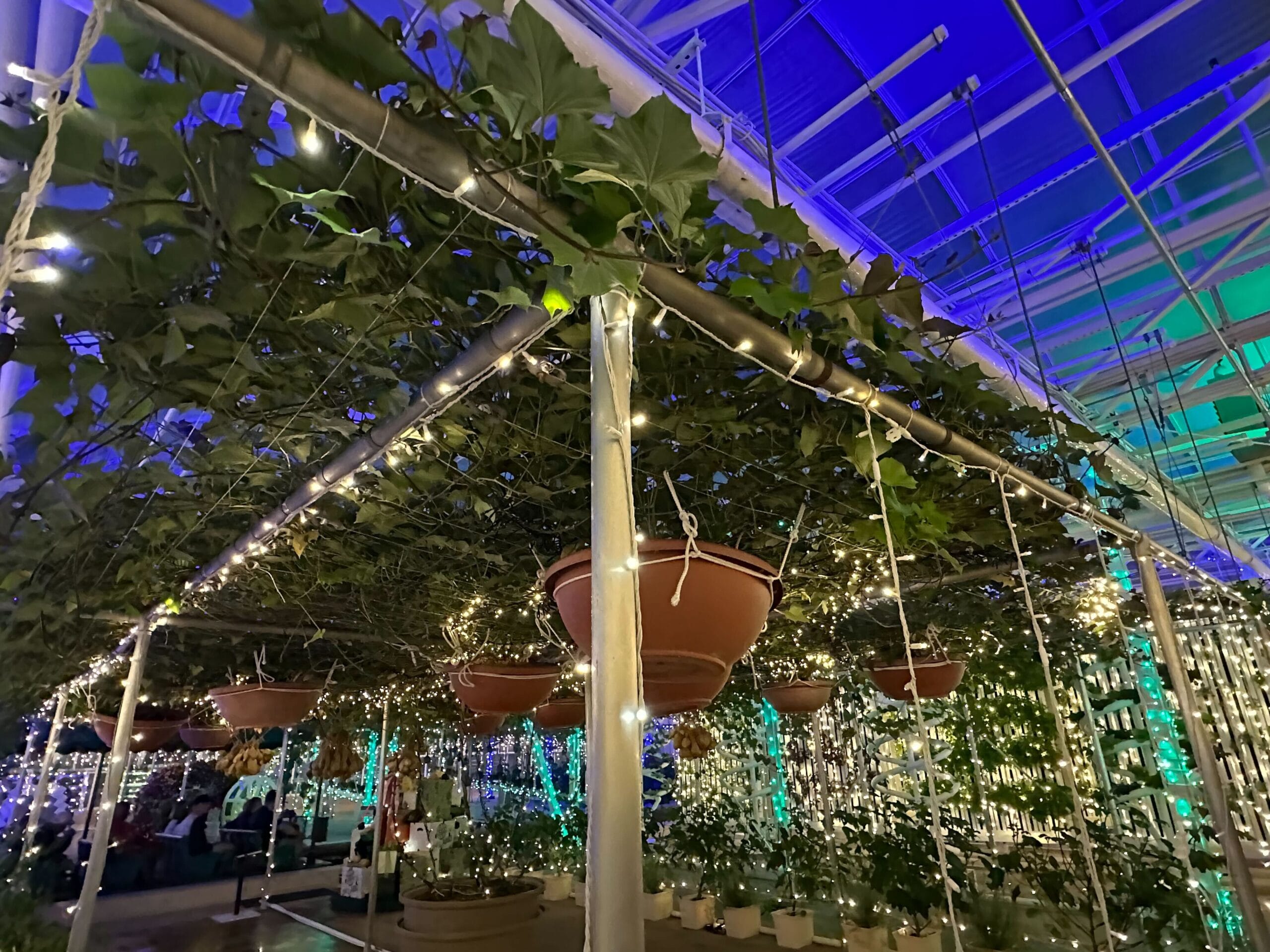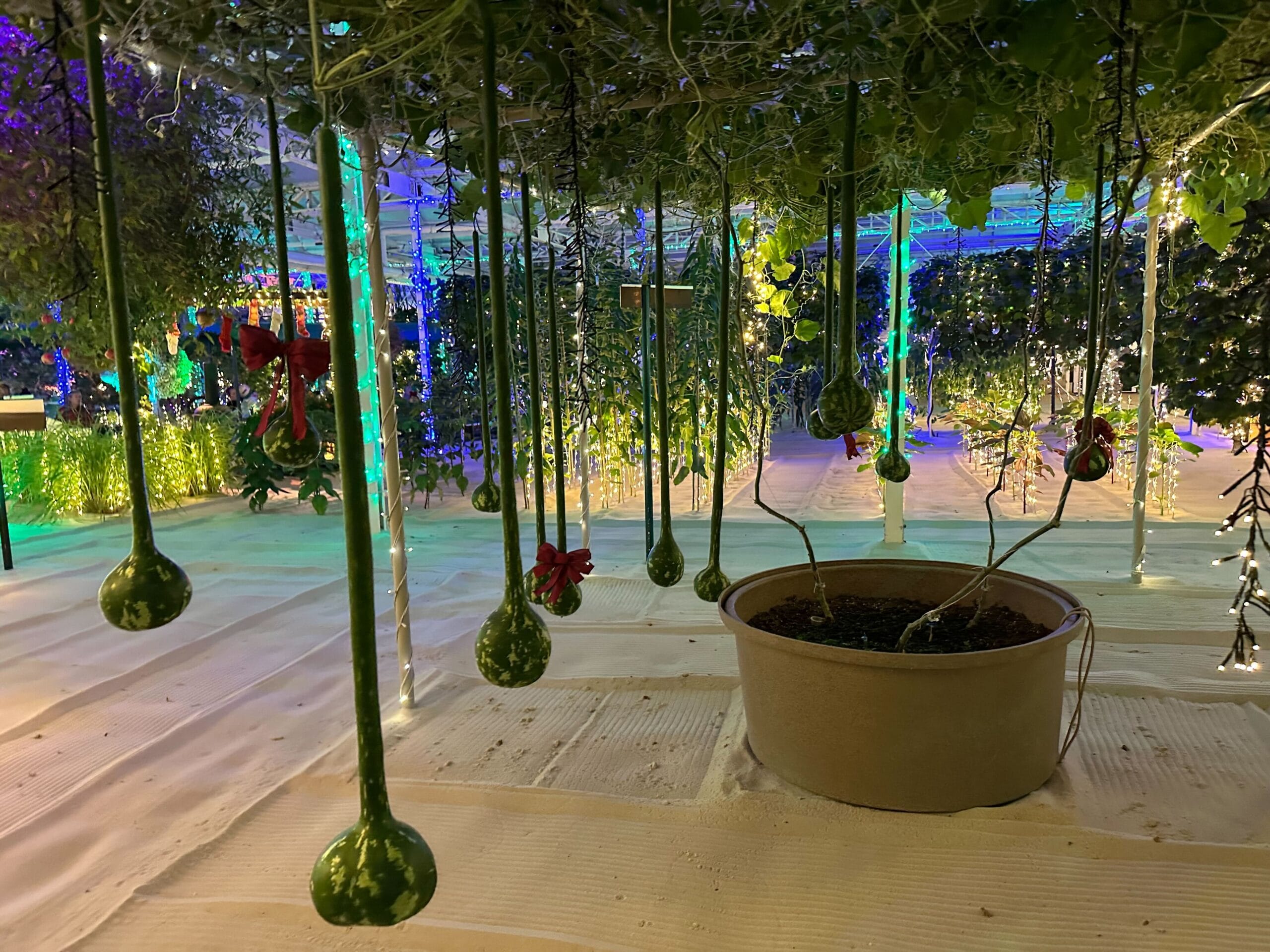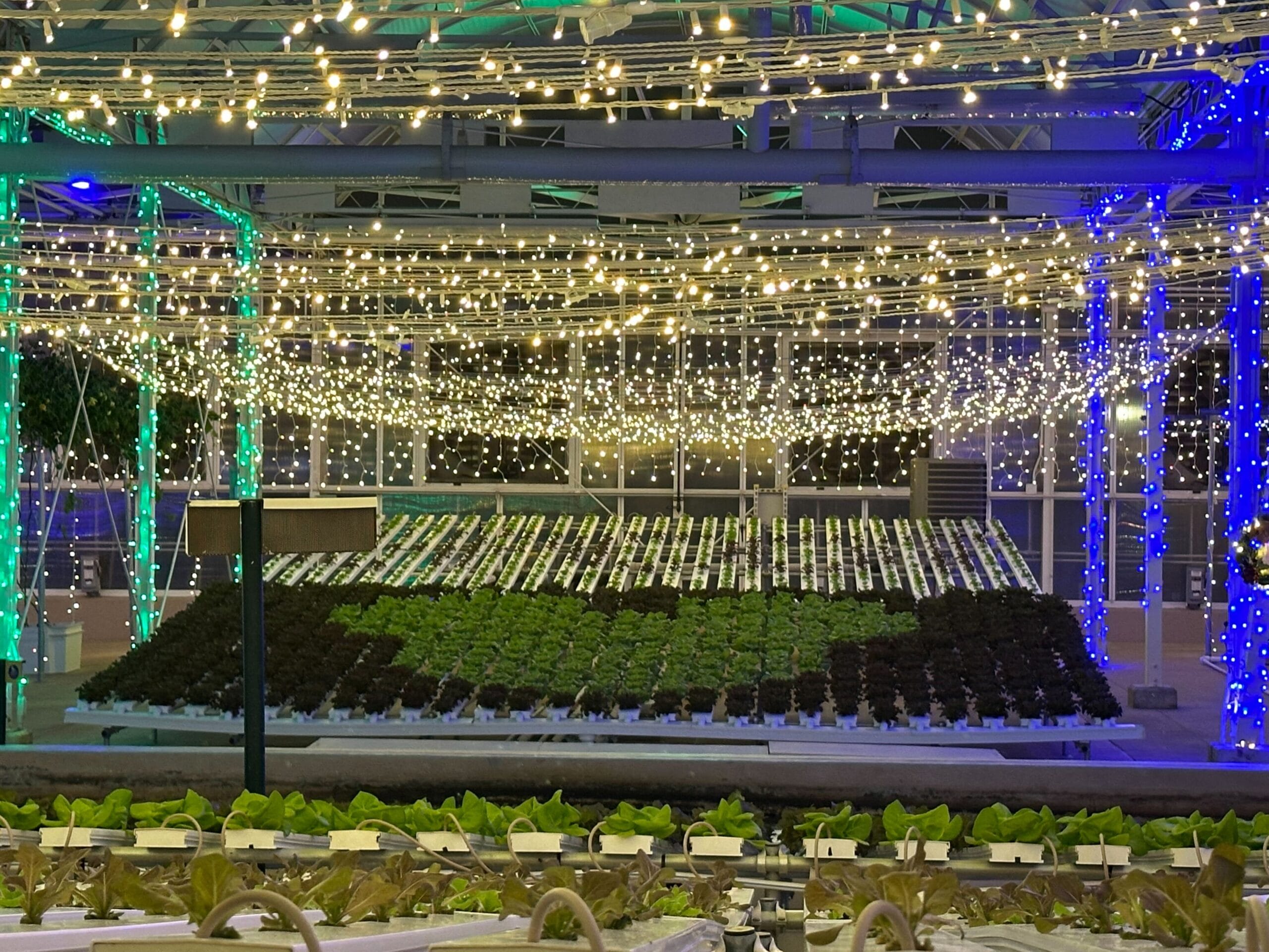 While the opening scenes of Living with the Land remain unchanged during the holidays, the greenhouses come alive with holiday flair. The living laboratory includes 5 distinct areas: Tropics Greenhouse, Aquacell, Temperate Greenhouse, String Greenhouse and Creative Greenhouse.