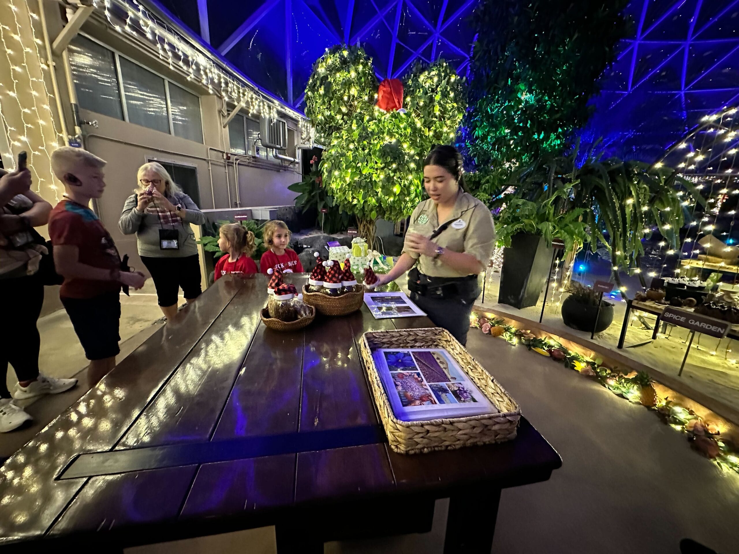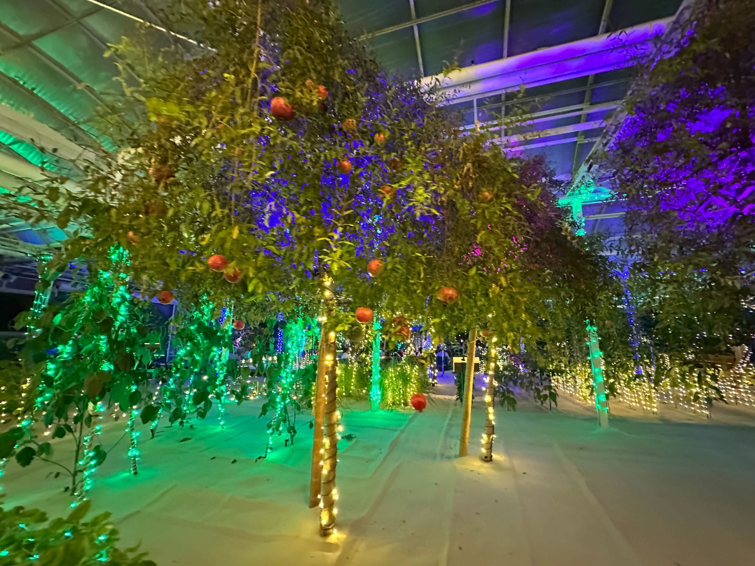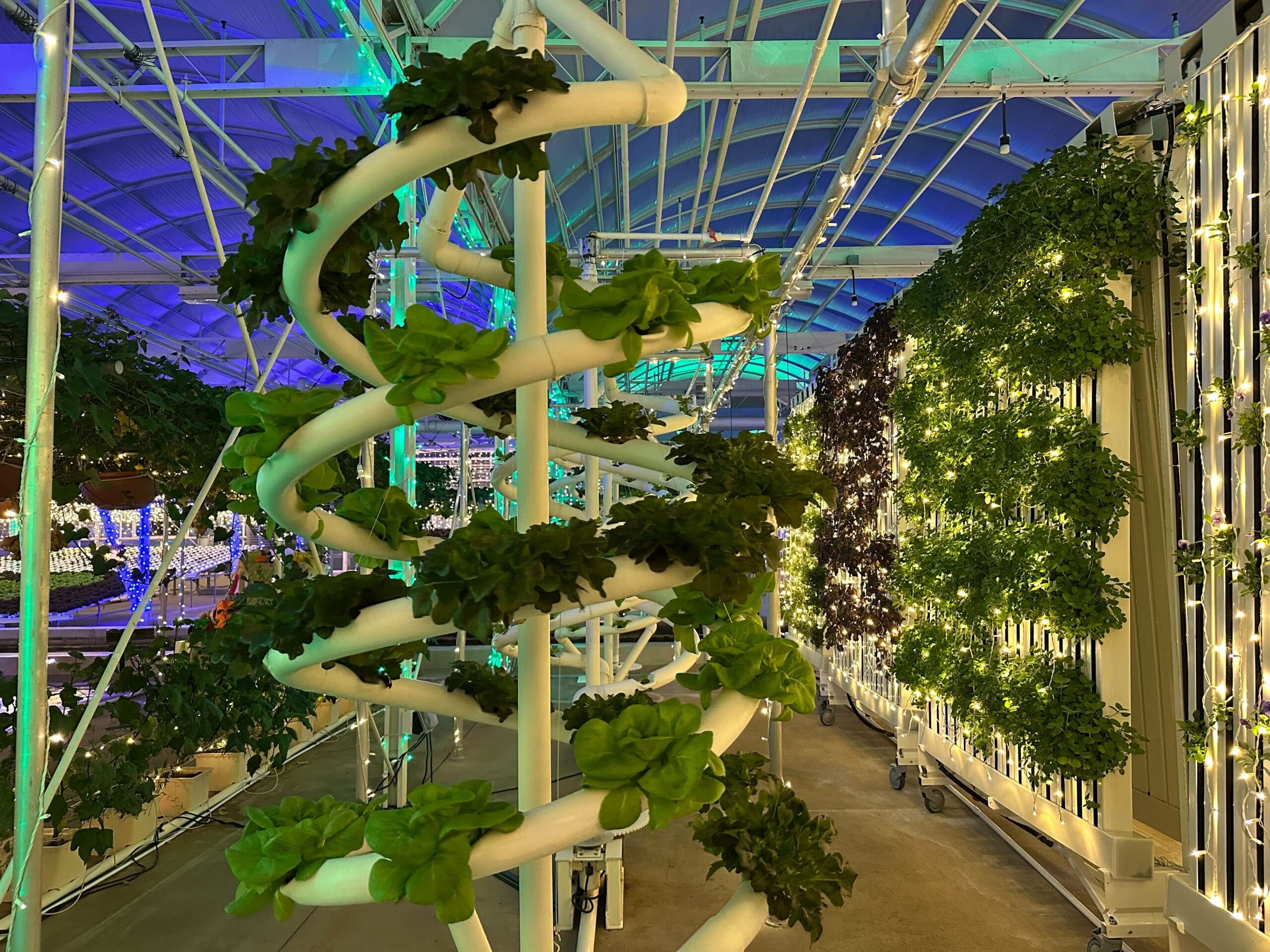 While the opening scenes of Living with the Land remain unchanged during the holidays, the greenhouses come alive with holiday flair. The living laboratory includes 5 distinct areas: Tropics Greenhouse, Aquacell, Temperate Greenhouse, String Greenhouse and Creative Greenhouse.