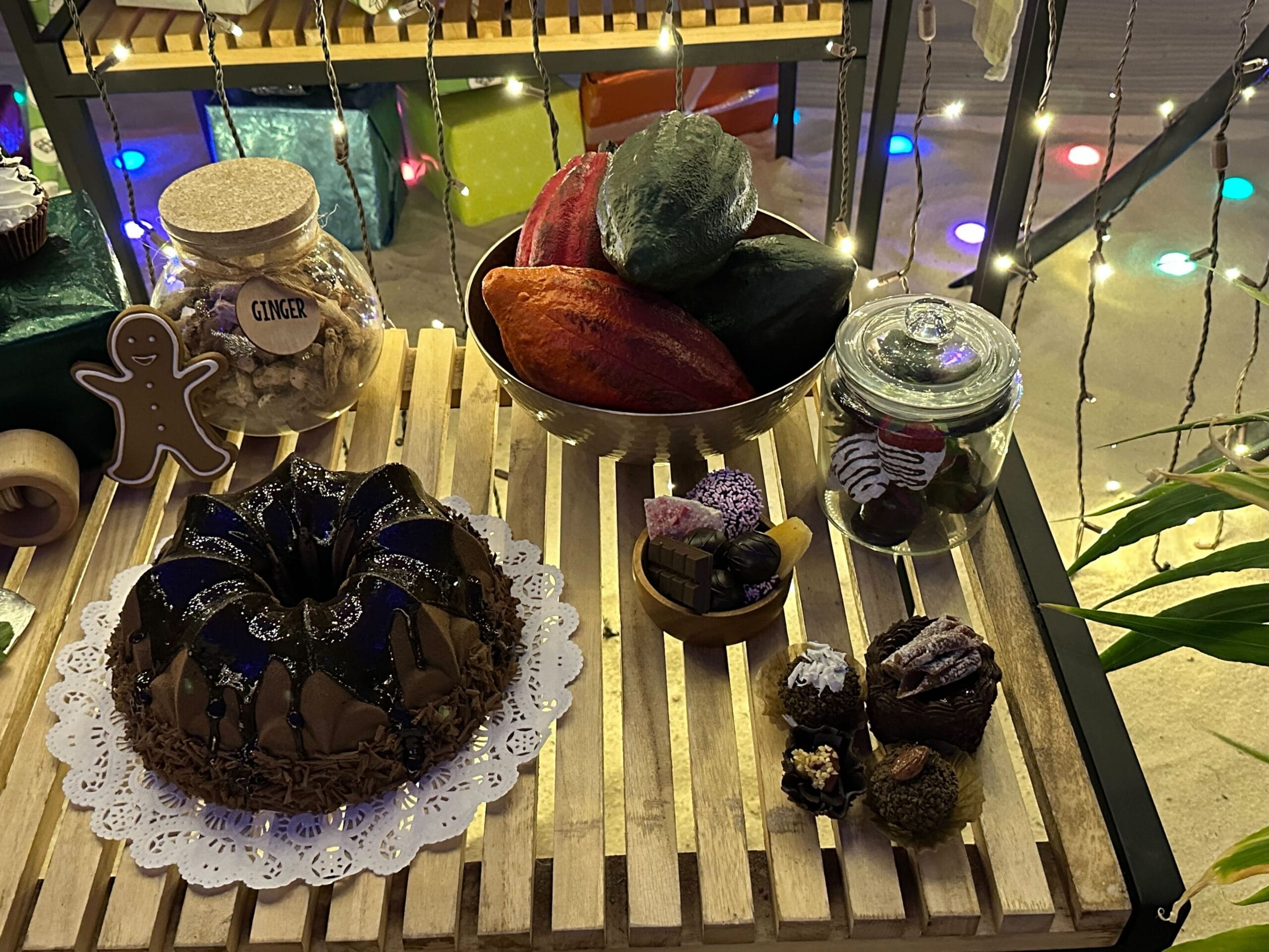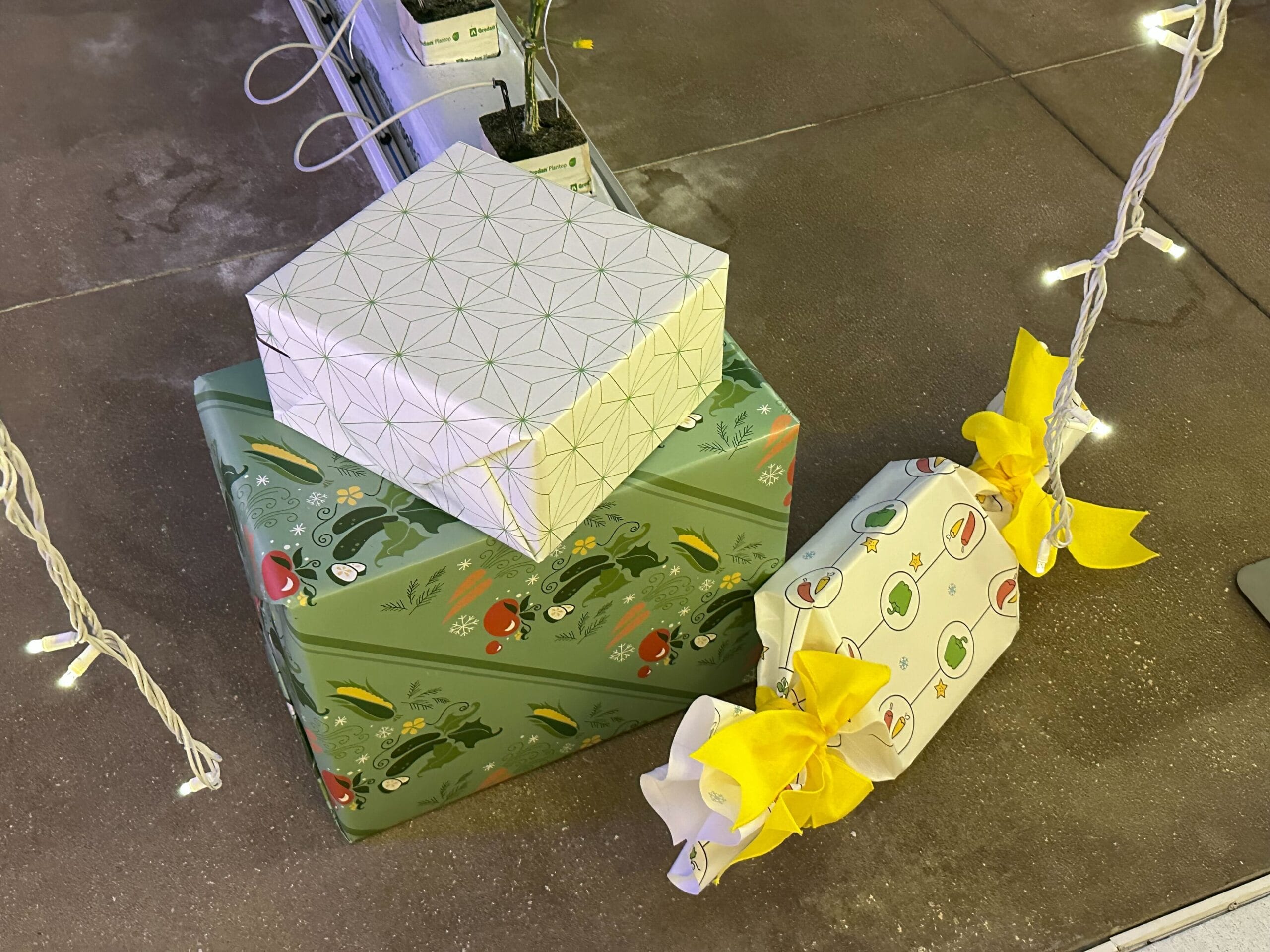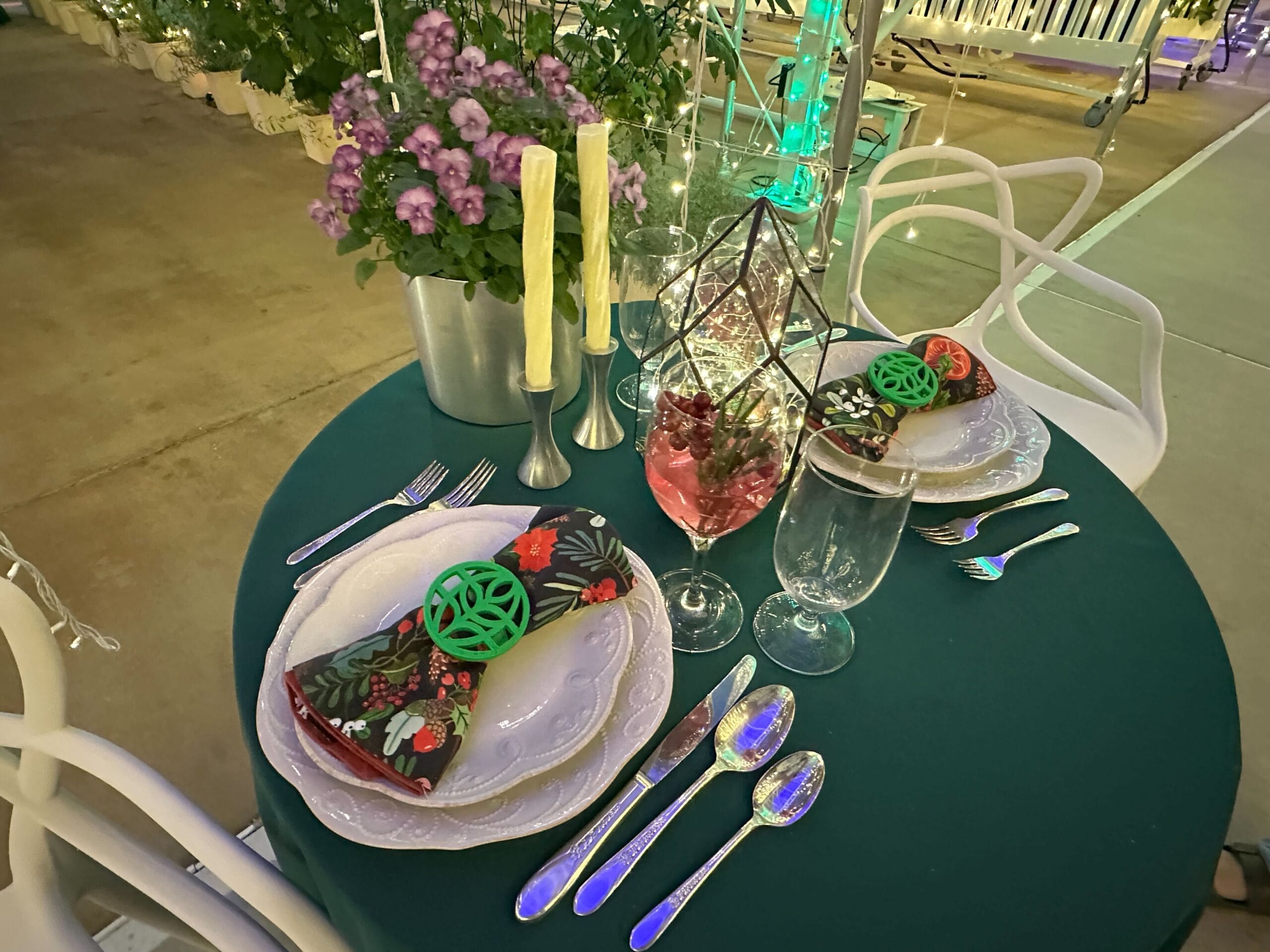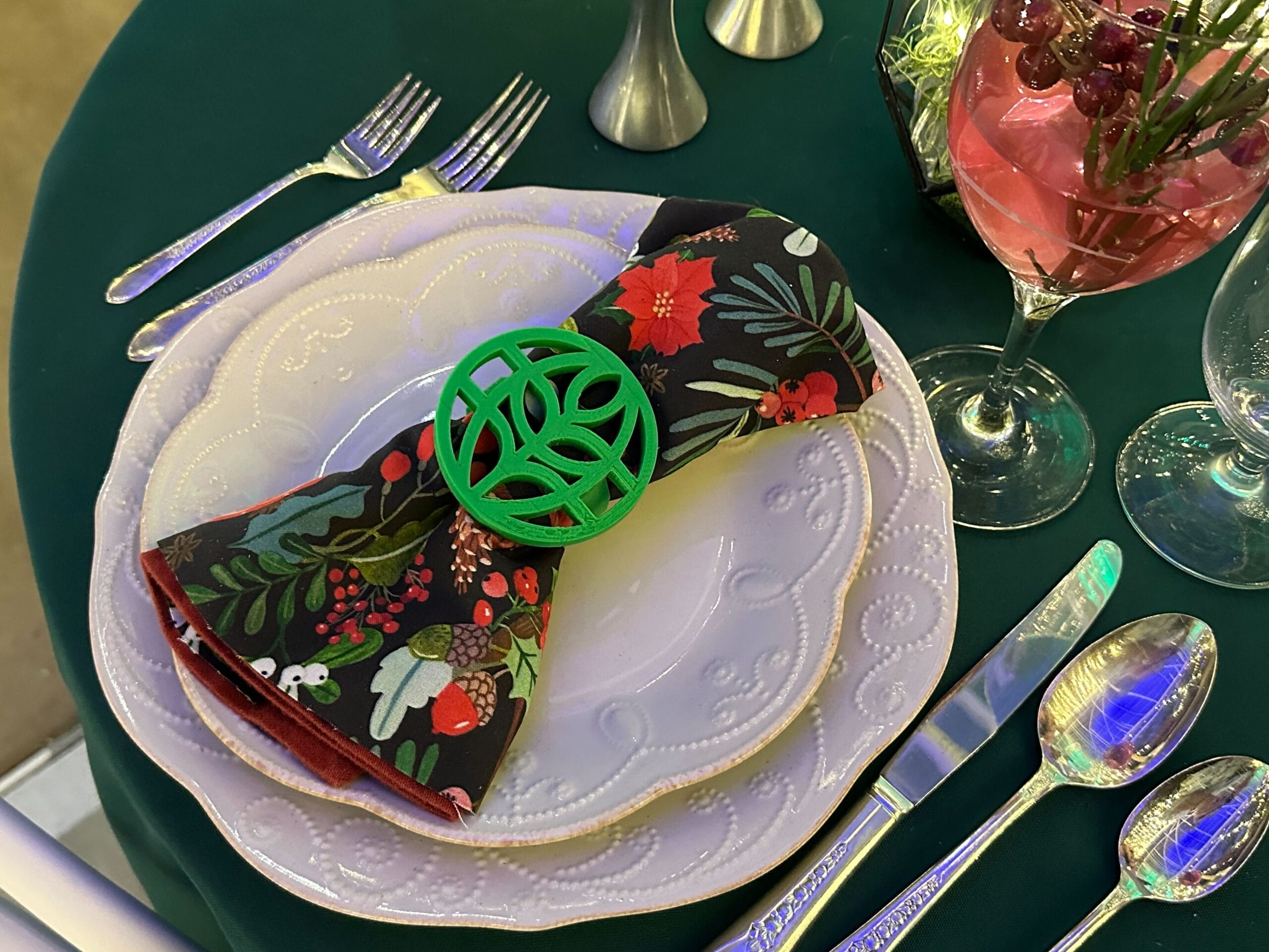 Walt Disney Imagineering’s influence can be seen throughout, including wrapping paper that honors the plants, and the light colors of white, green and blue, meant to honor the planet.