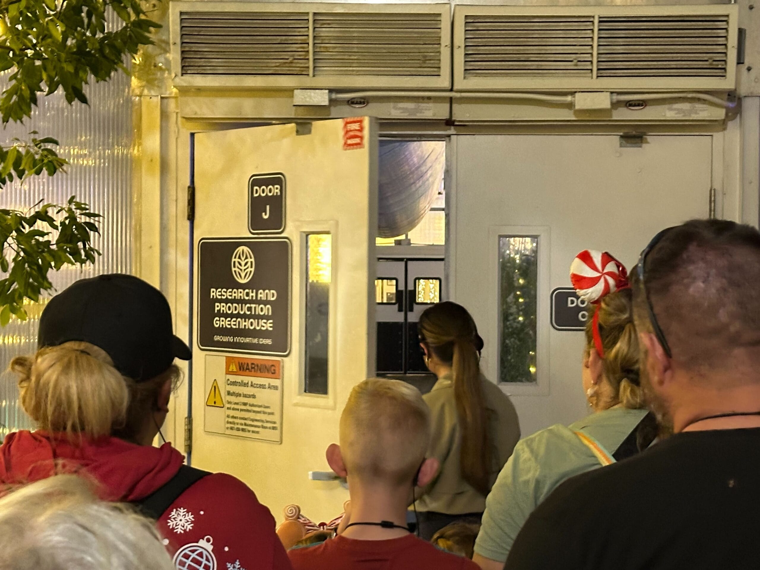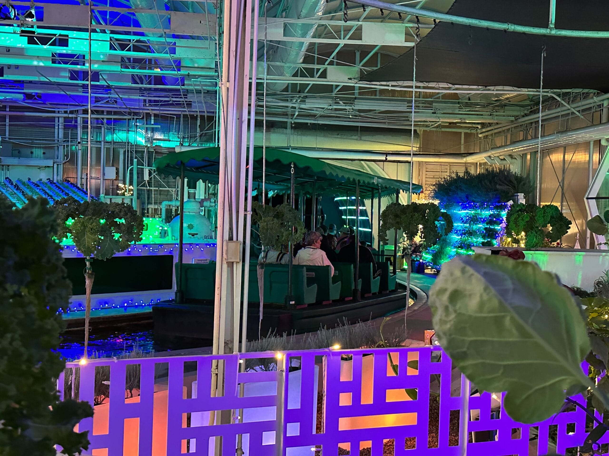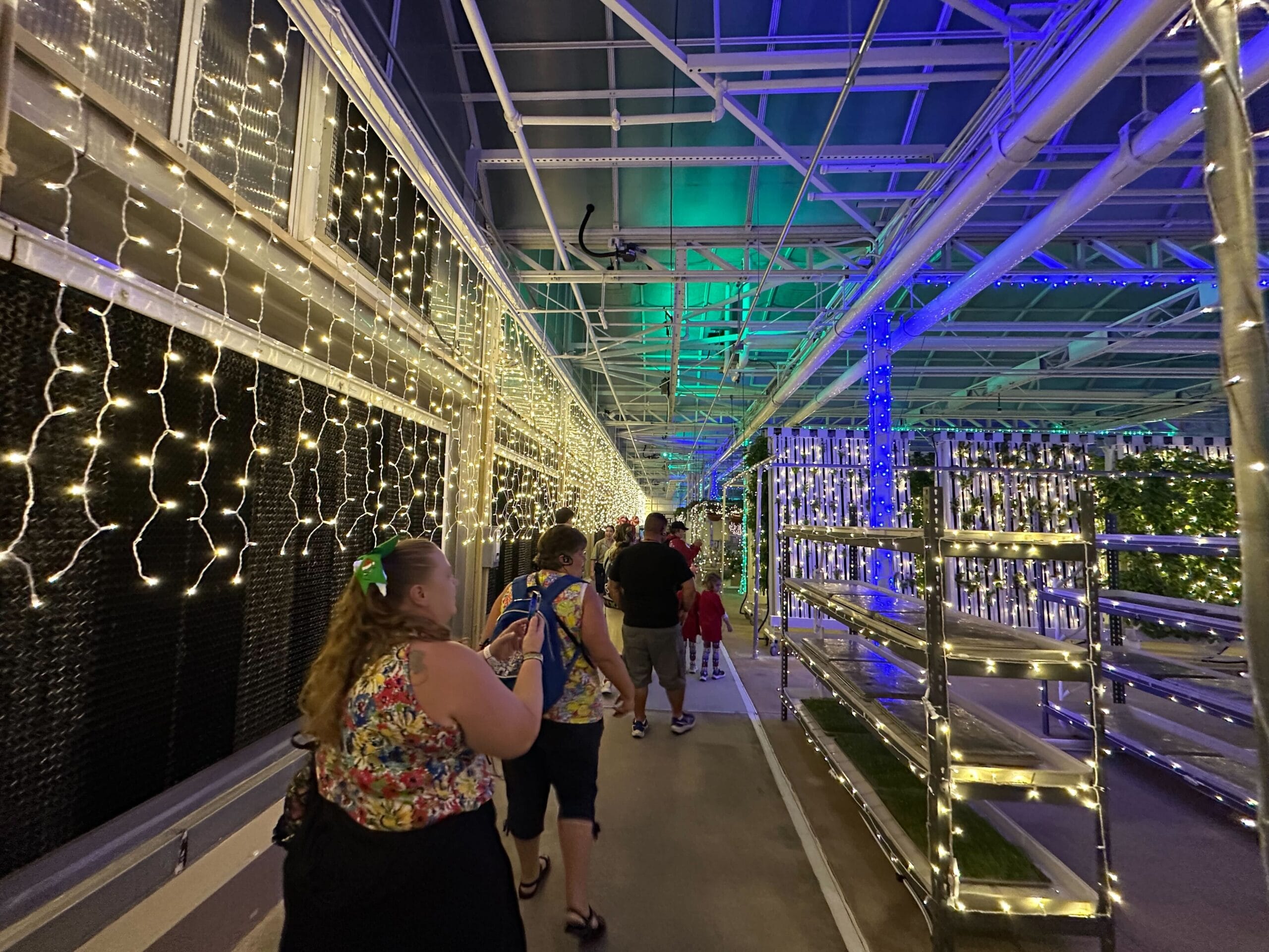 For the first time, guests can now embark on a Behind the Seeds tour of the nighttime holiday overlay of Living with the Land – Glimmering Greenhouses at EPCOT. We signed up for the first tour to see what it had to offer. We were given headsets to help hear in the environment, and the tour began.