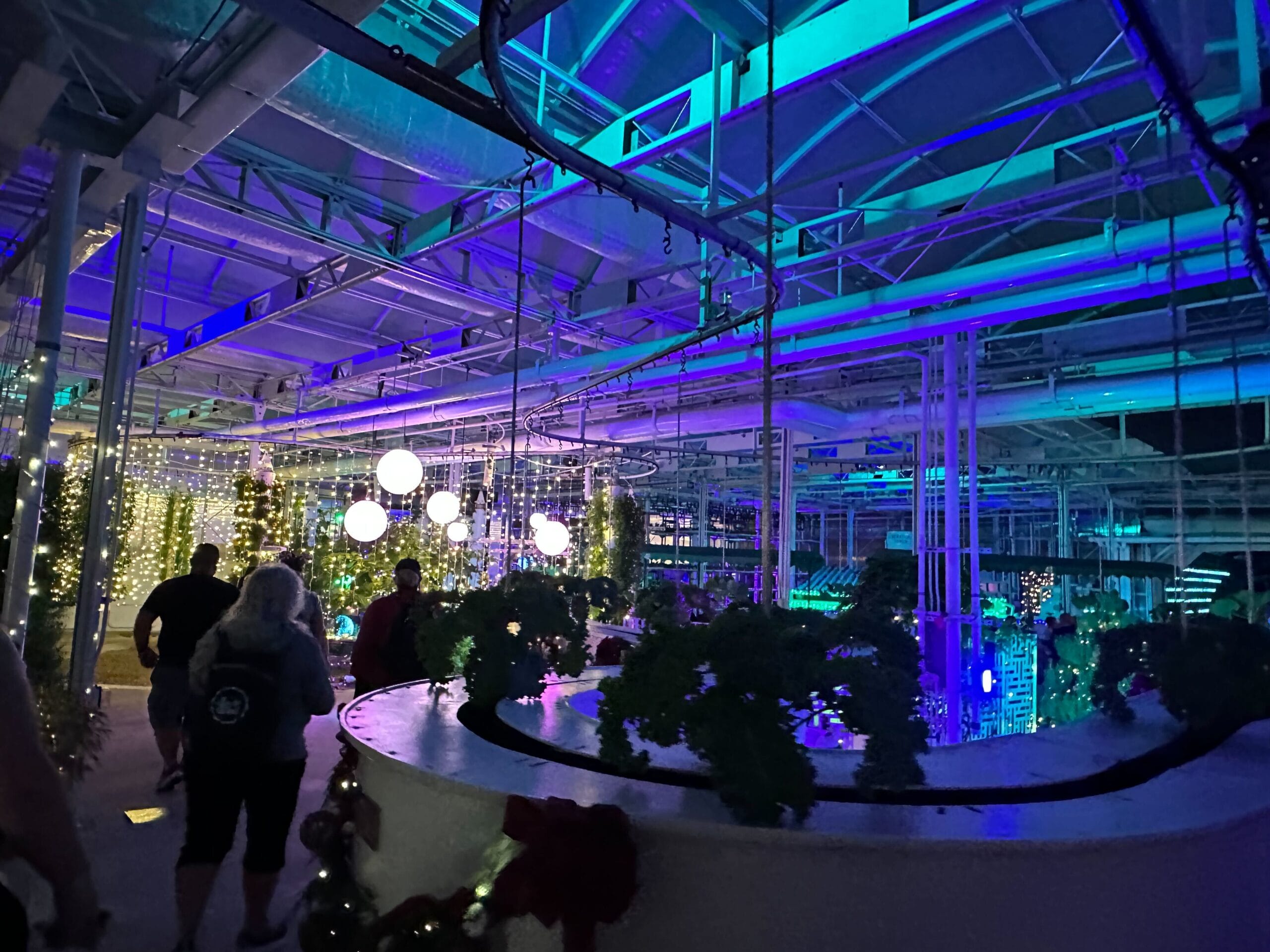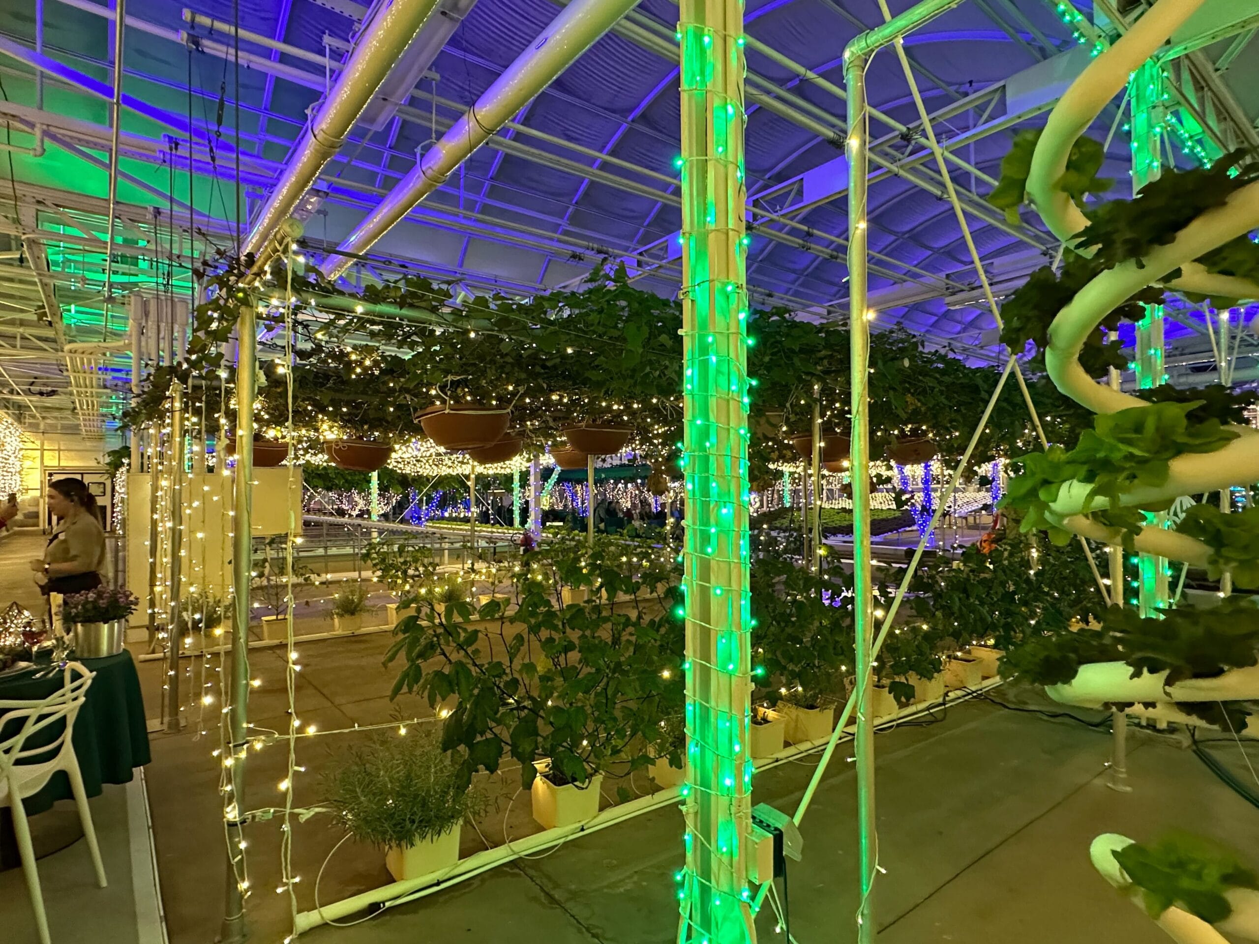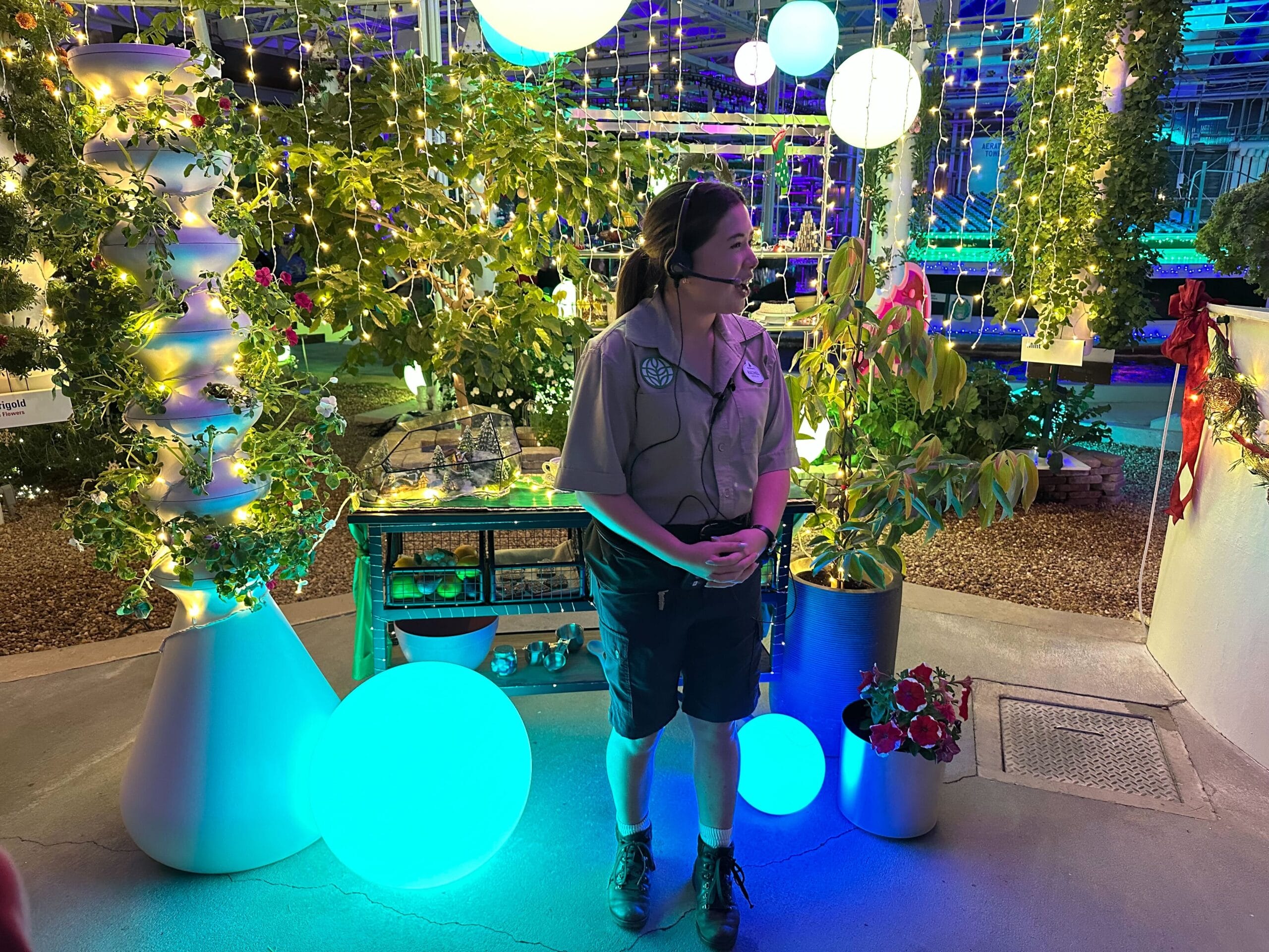 For the first time, guests can now embark on a Behind the Seeds tour of the nighttime holiday overlay of Living with the Land – Glimmering Greenhouses at EPCOT. We signed up for the first tour to see what it had to offer. We were given headsets to help hear in the environment, and the tour began.