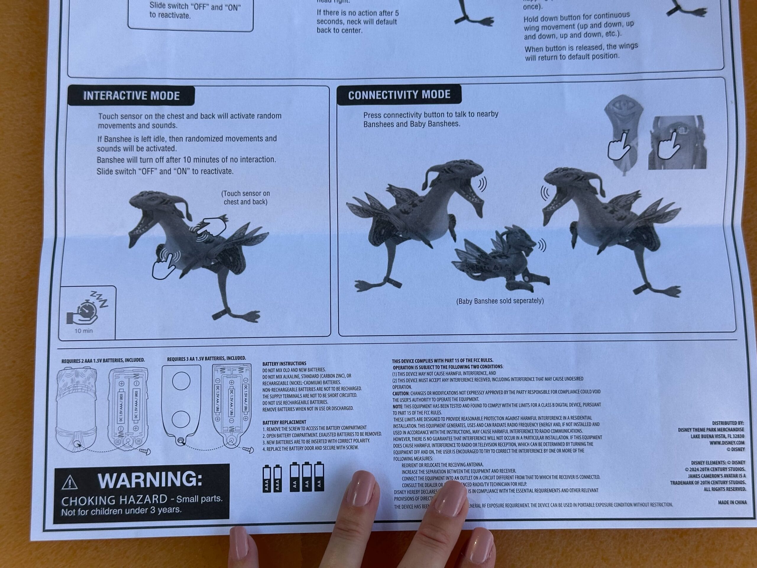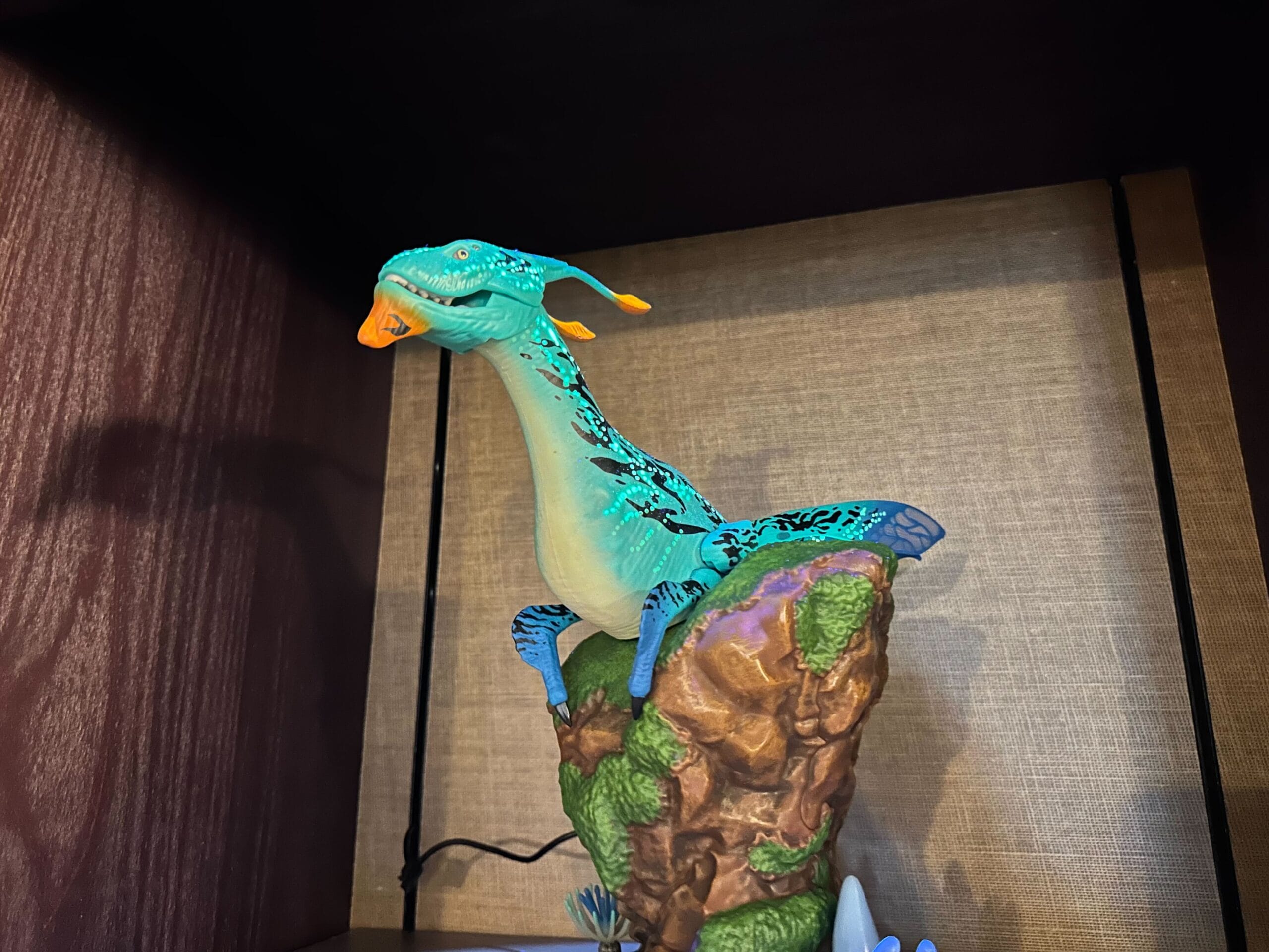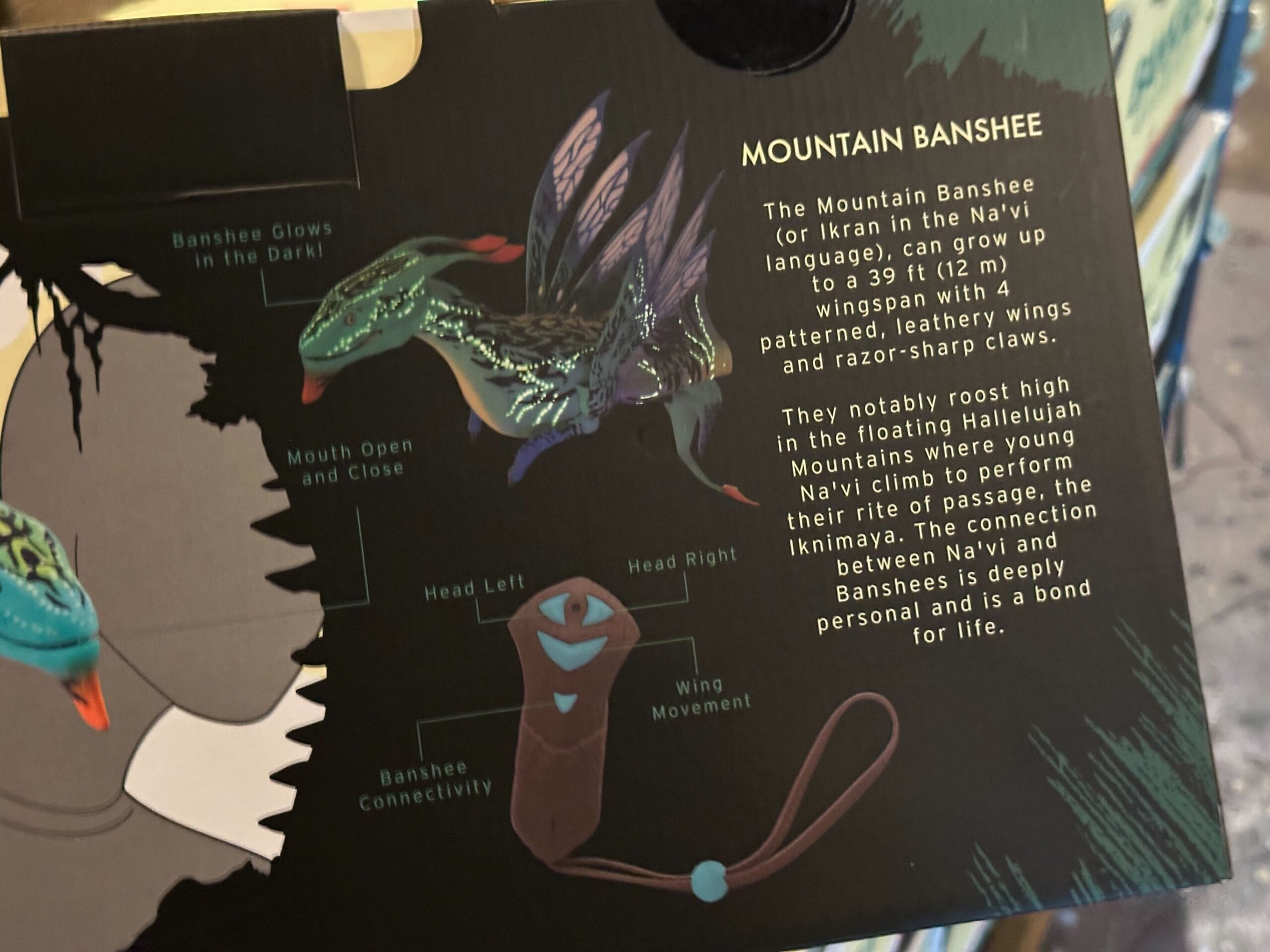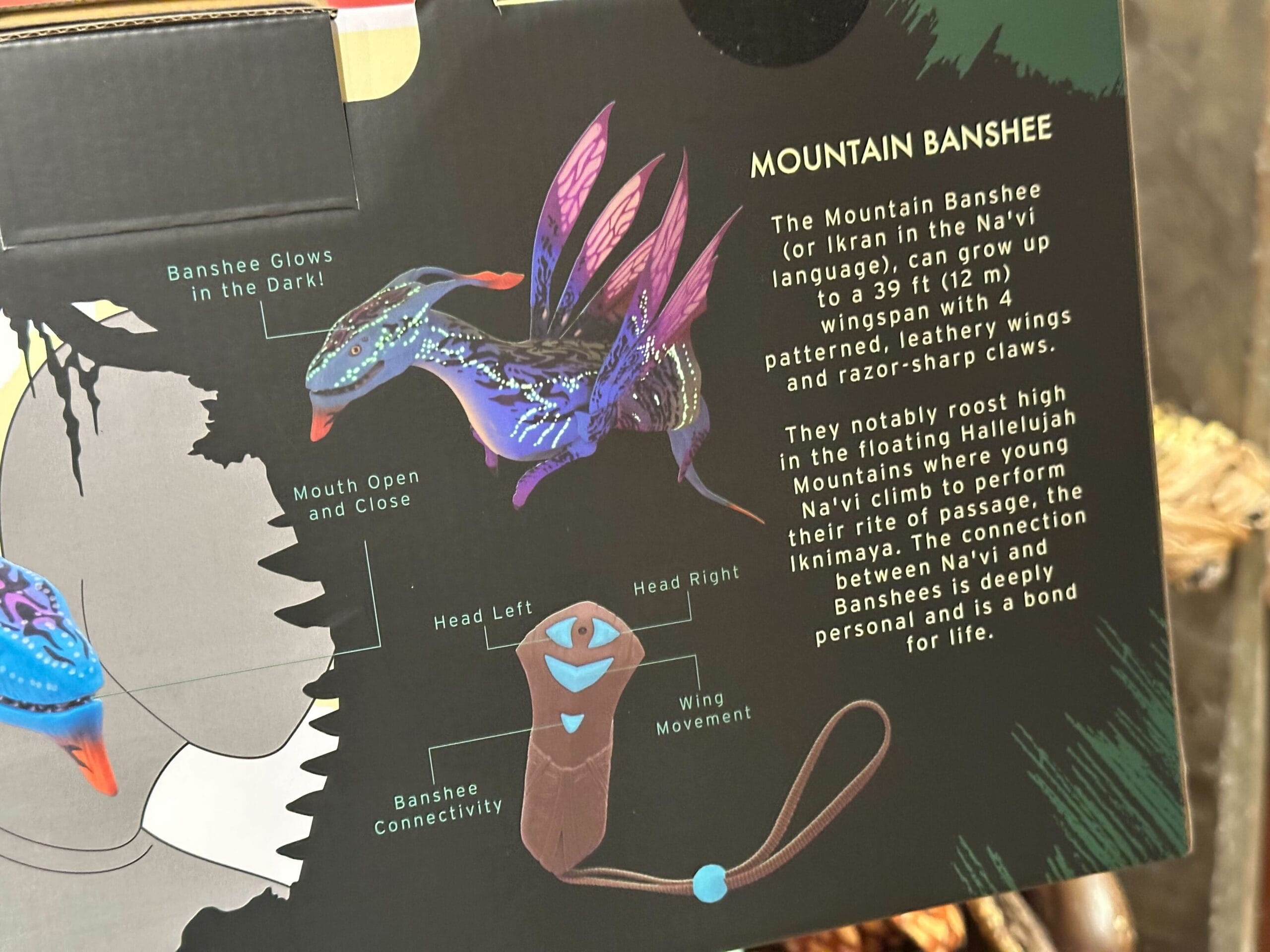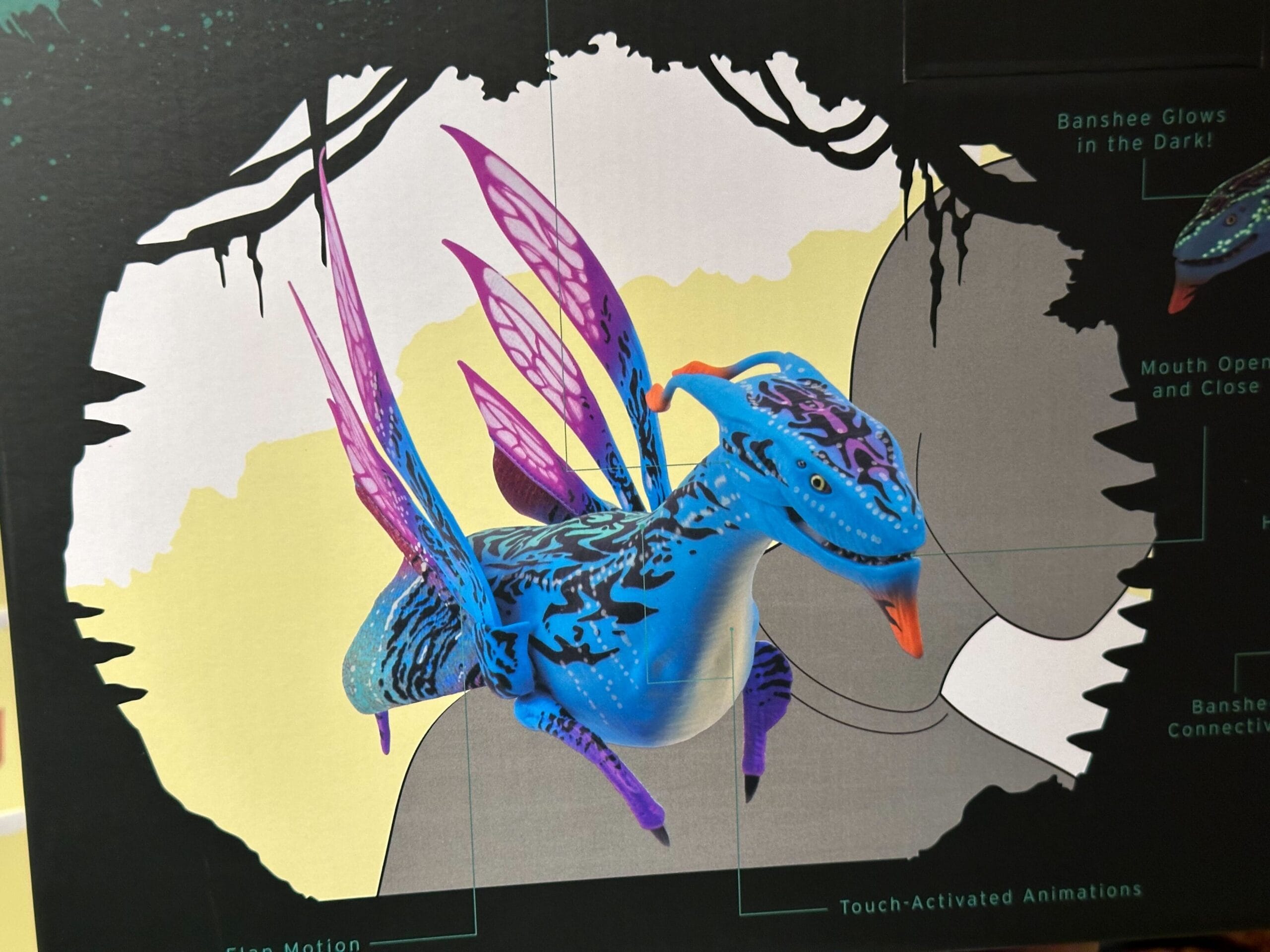 The figures have authentic sounds provided by Lightstorm Entertainment and glow-in-the-dark “bioluminescence” features. When traveling around Pandora, shoulder Banshees will notice and communicate with other interactive Banshees, including wrist Banshee hatchlings. They will also react to being pet by their owners.
