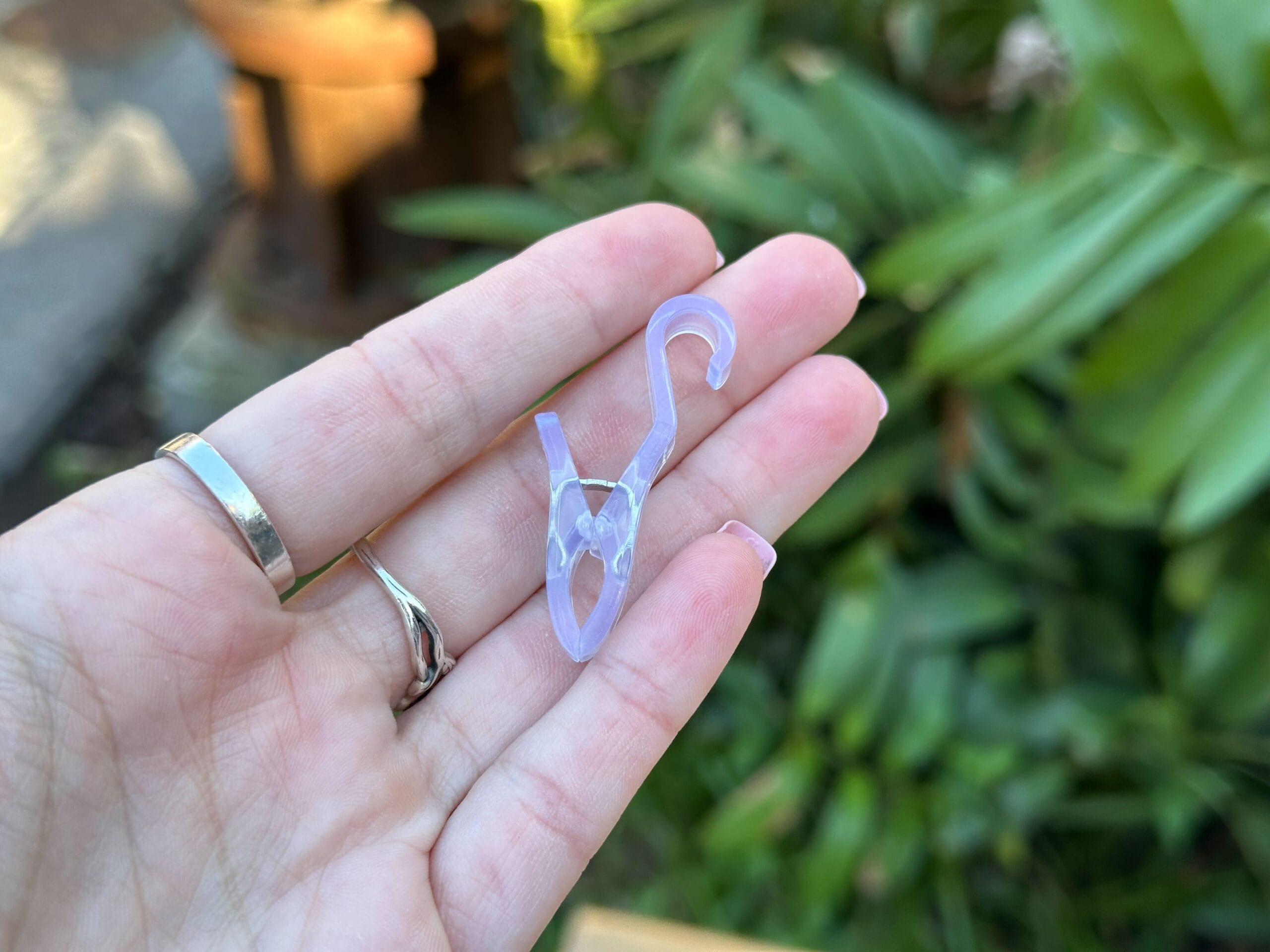 Each Banshee comes with a magnetic shoulder pad, which guests tuck under their shirt to hold the Banshee. The plastic clip is to secure the dangling tail.
