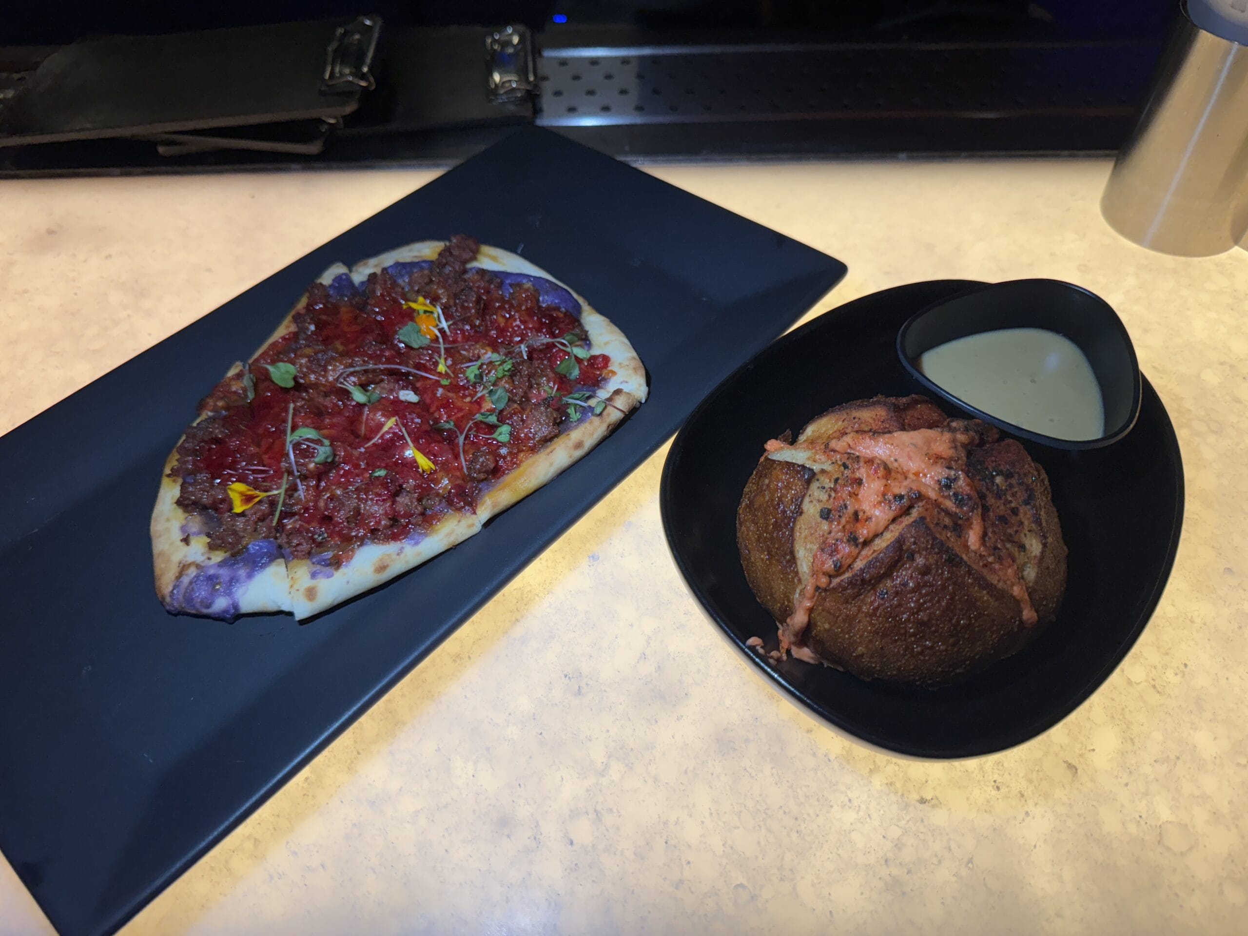 The flatbread was quite tasty. It wasn’t spicy like we expected from chorizo. It had a bit of an Indian spice flavor to it. The four-cheese blend seemed to be missing as we didn’t see or taste any cheese. It’s a rather small portion but still good for sharing. The meat was plentiful and the overall quality of this dish was high.