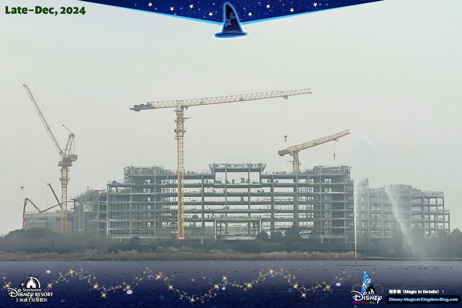 - Construction of the framework of the new Shanghai Disney Resort hotel appears to be complete.