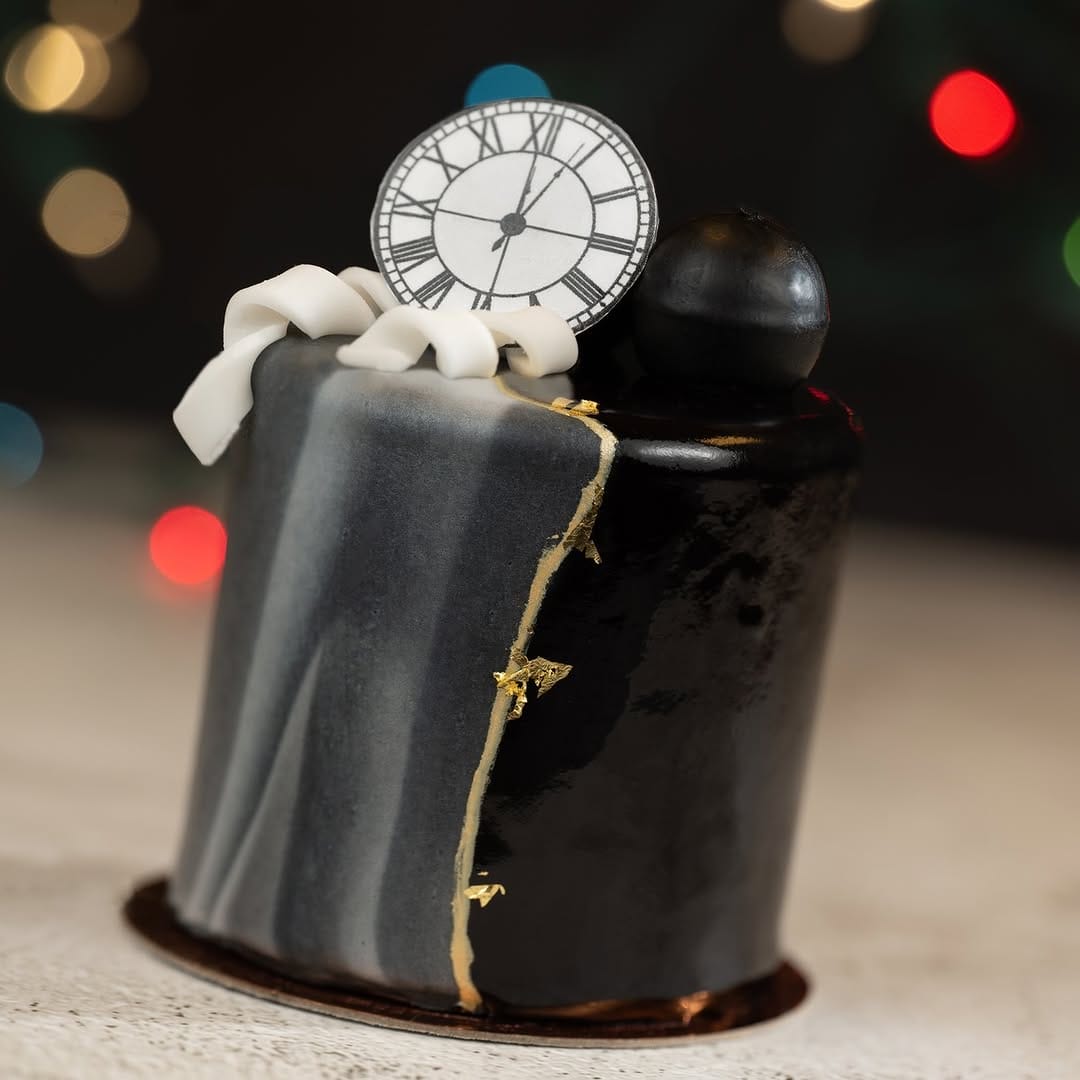Shared on the official Disney Eats Instagram account, the first of the three new items is the 2025 New Year’s Eve Cupcake. This treat features chocolate cake, cherry filling, almond buttercream, gold crispy pearls, and a chocolate giraffe Mickey decoration.