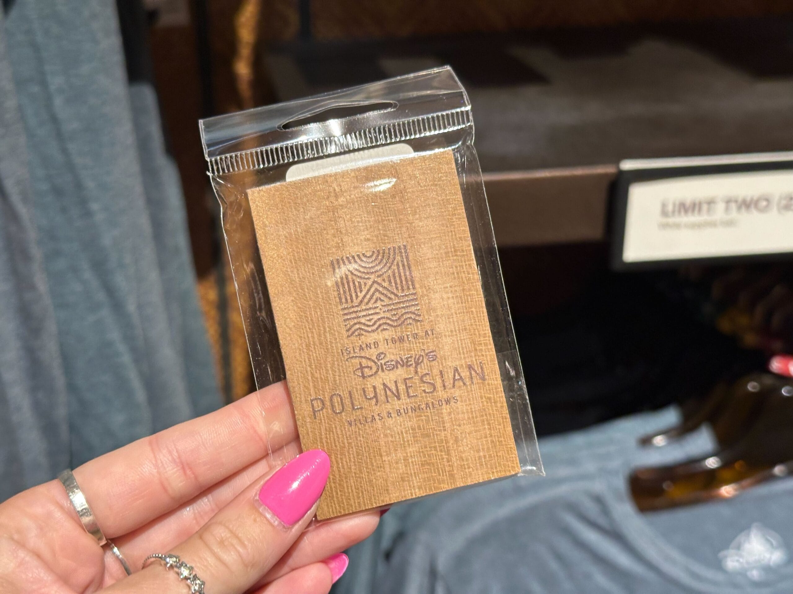 The final new merchandise item is a wooden magnet. It comes packaged in a plastic bag, and features the wordmark and icon for the DVC Island Tower printed on the front.