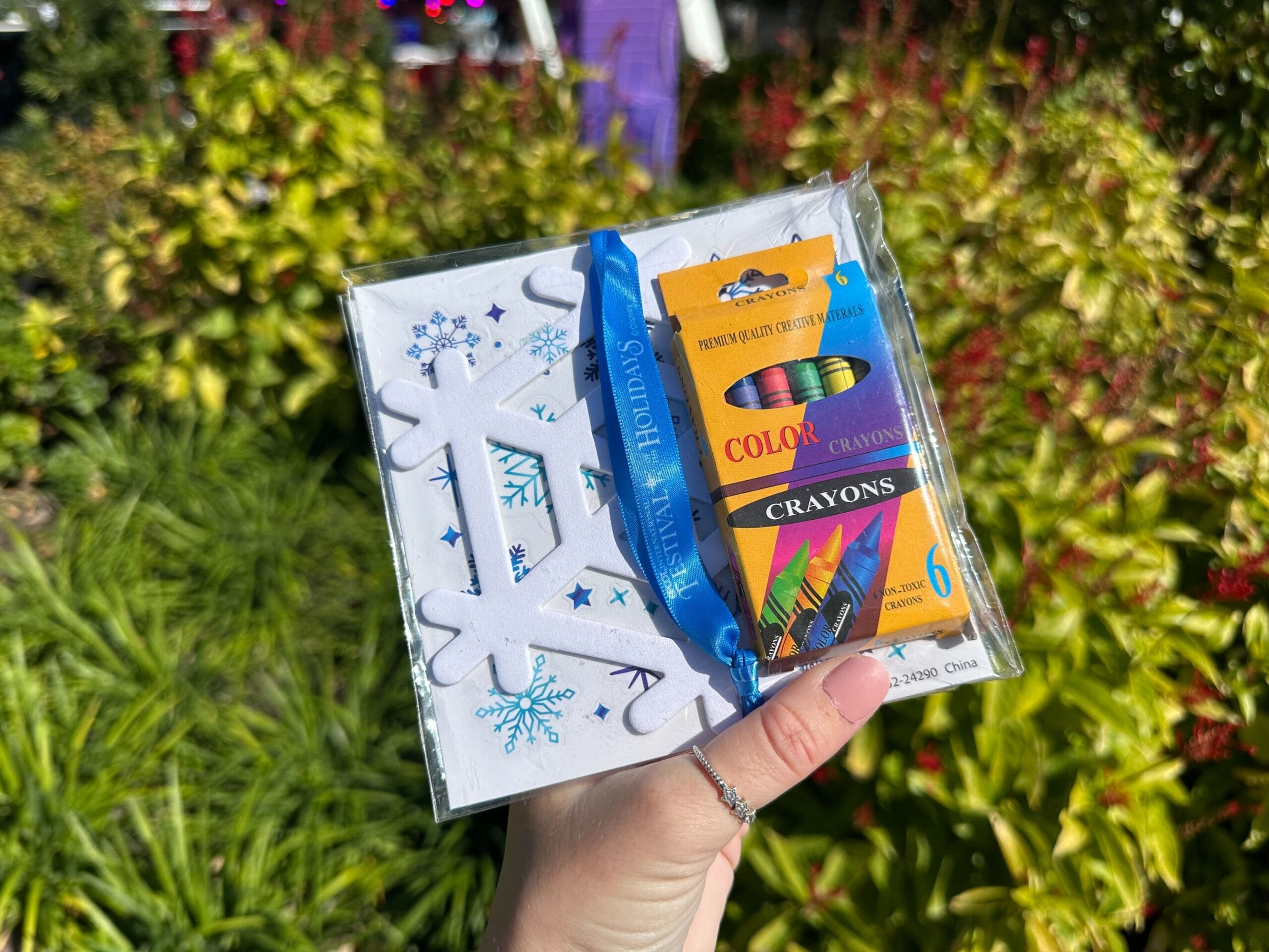 Snowflake decorating is an activity available in CommuniCore Plaza. Guests can pick up the kit, which includes a snowflake ornament to decorate, a box of generic crayons, and snowflake stickers.