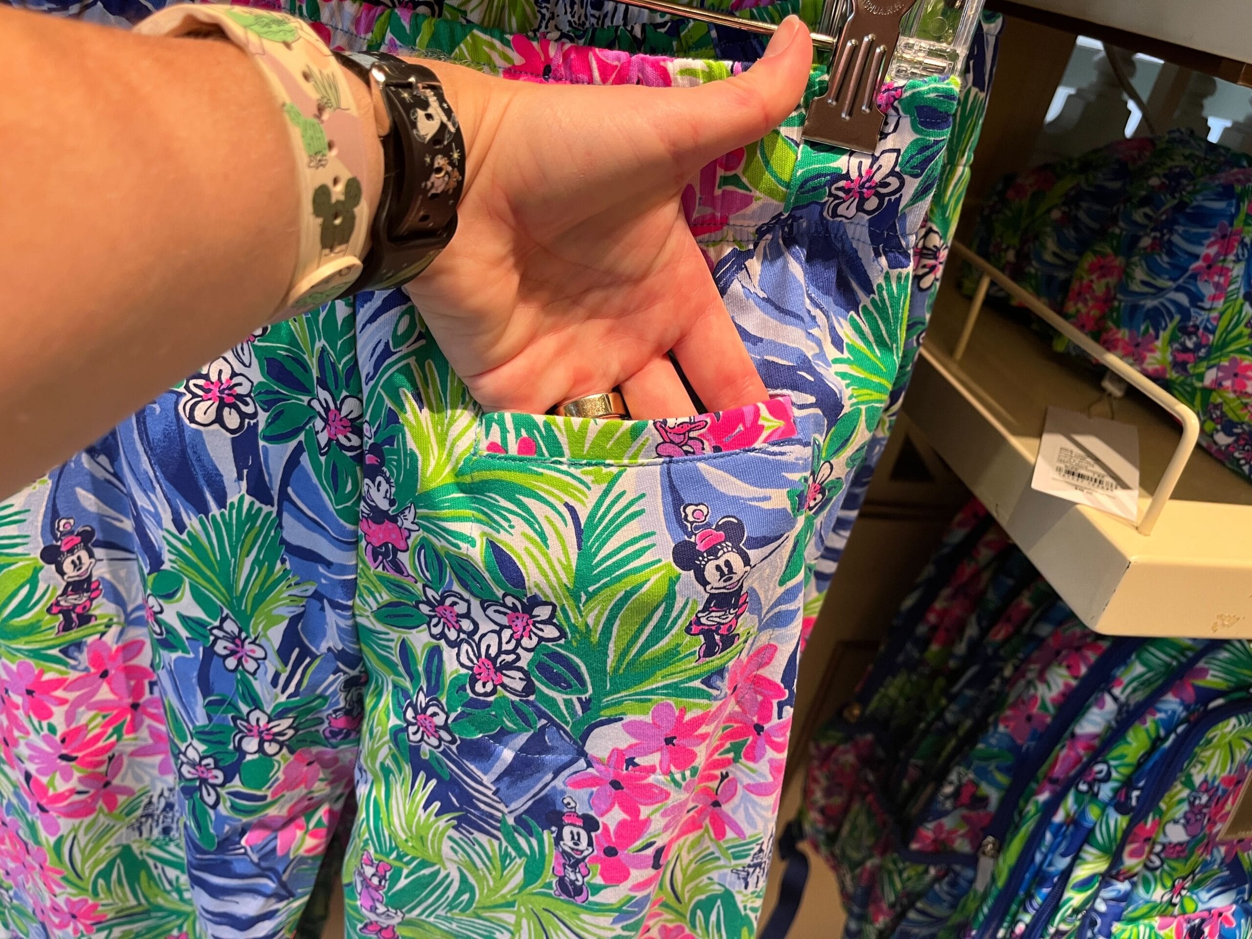 The new print features Minnie Mouse and Daisy Duck. We found the collection available in Uptown Jewelers at Magic Kingdom but it will likely be available at multiple Walt Disney World locations selling designer items.