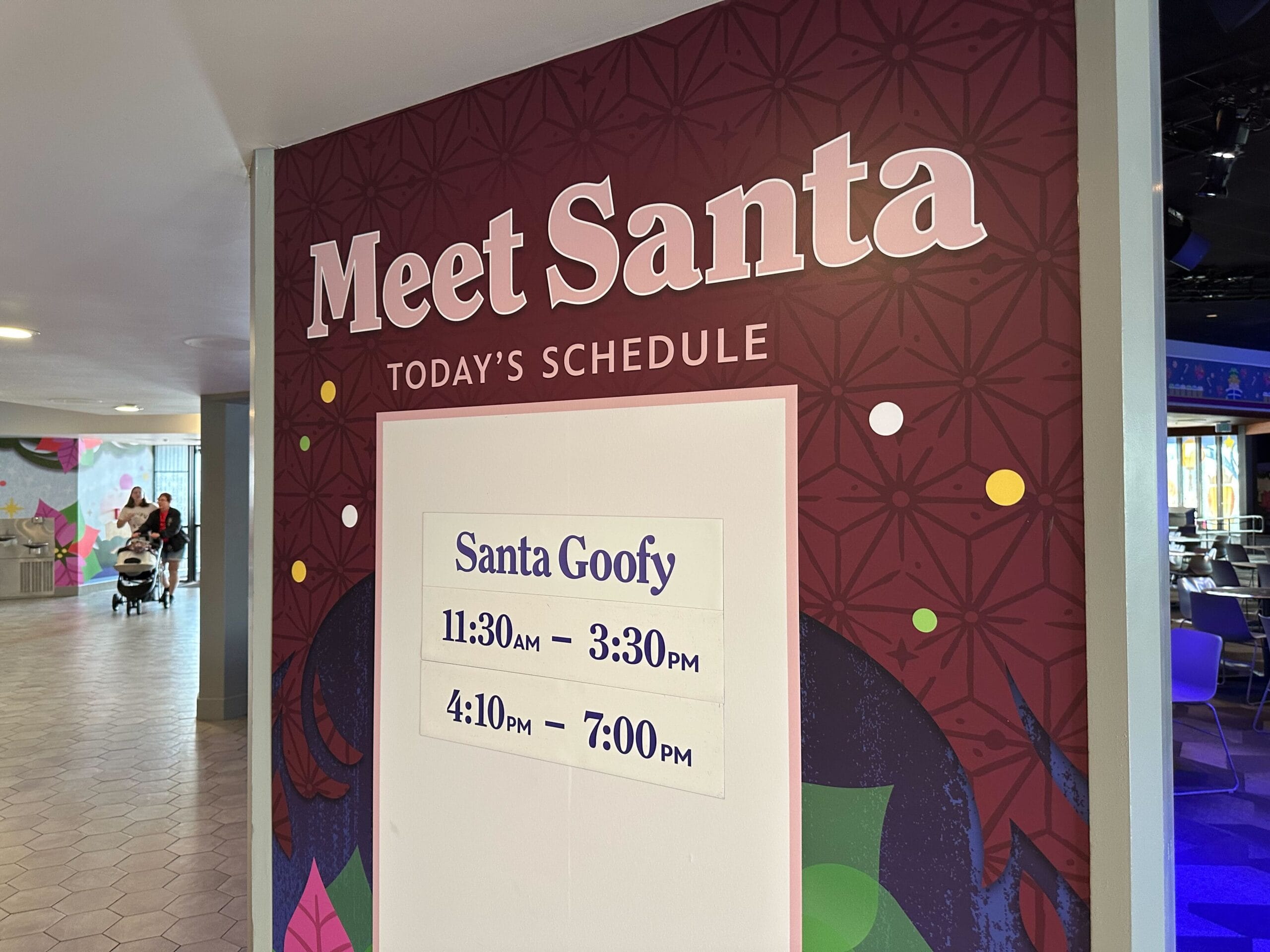Santa Goofy is meeting in the Odyssey Pavilion at EPCOT from 11:30 a.m. to 3:30 p.m., and 4:10 p.m. to 7 p.m.