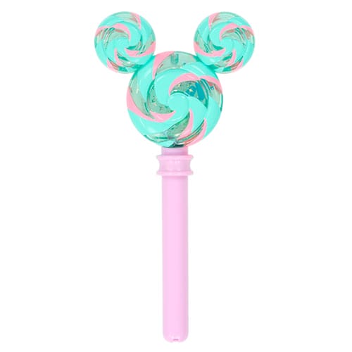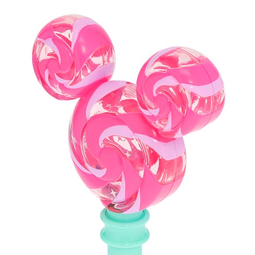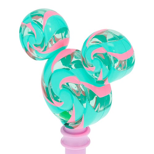 The Sweet Poppin’ Sticks come in two colors — a pink Mickey swirl with a light green handle or a light green Mickey swirl with a pink handle.
