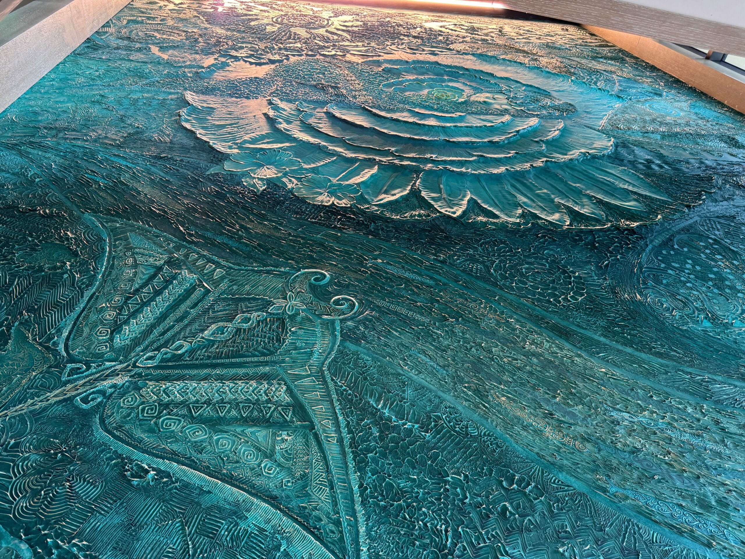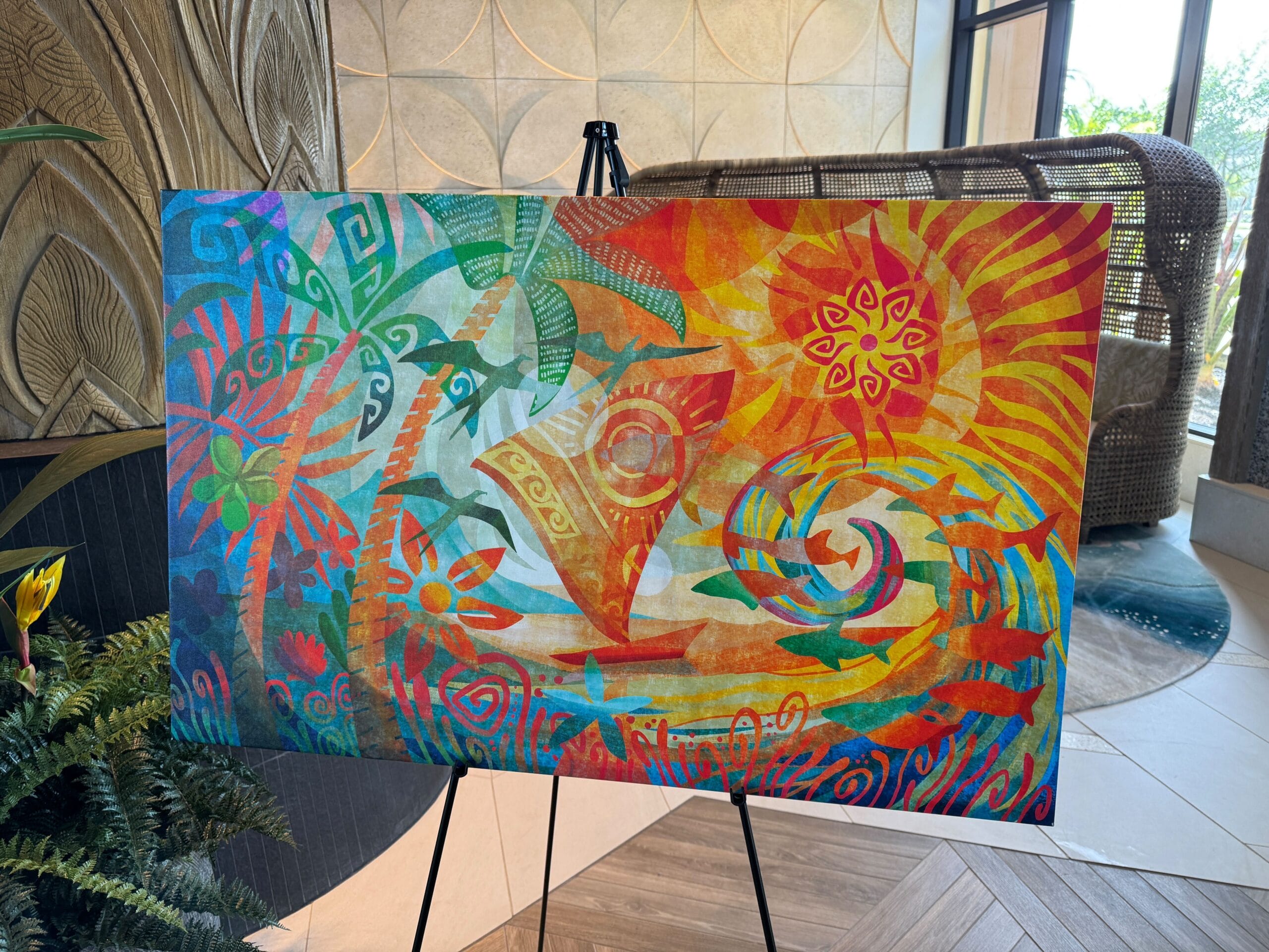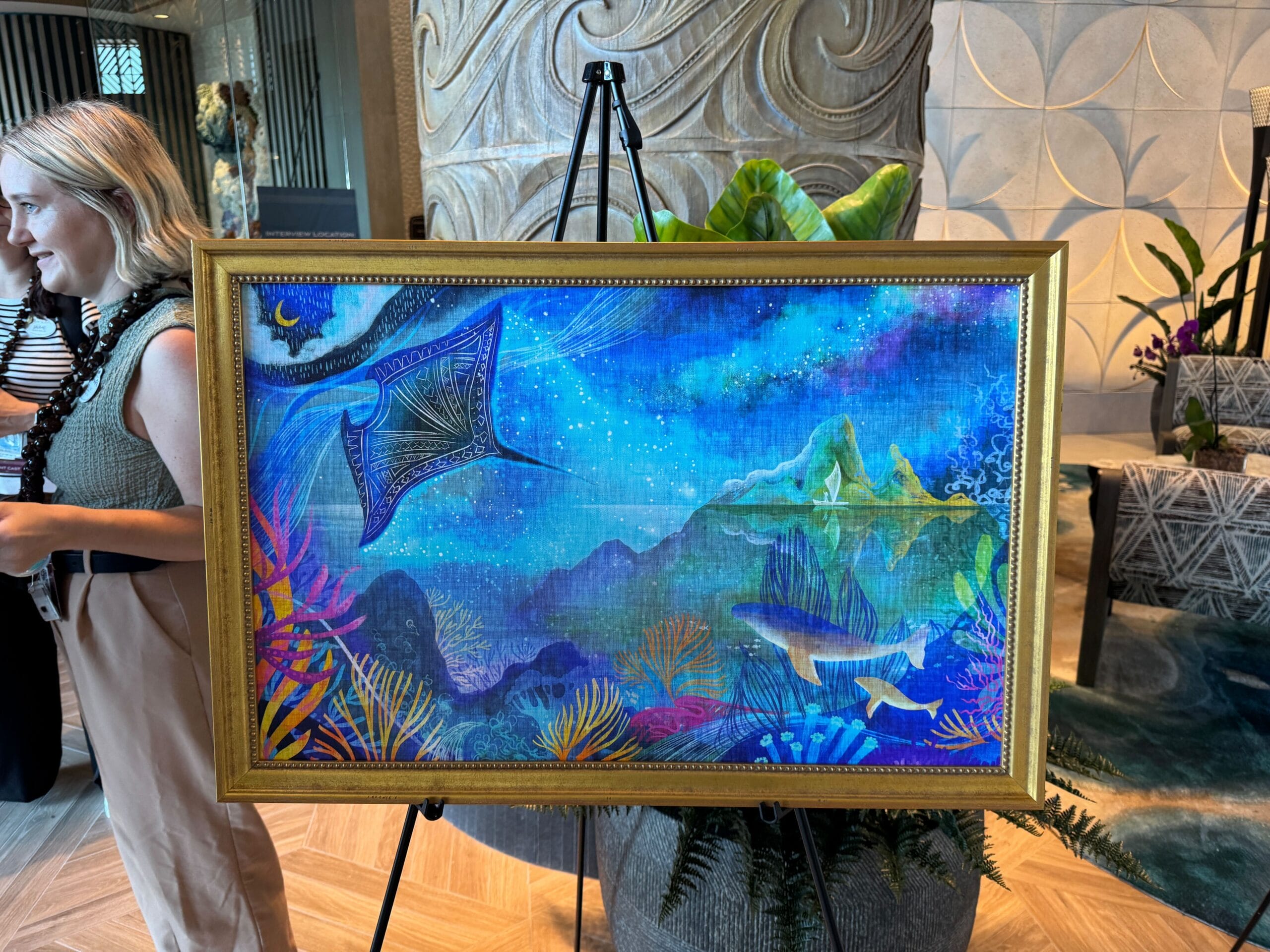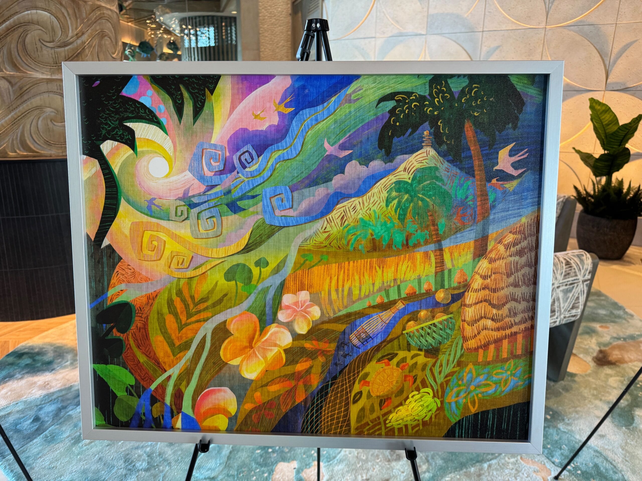 There are pieces inspired by “Moana,” including paintings featuring Te Fiti or the manta ray. Other pieces are more generally inspired by the nature of Polynesia.