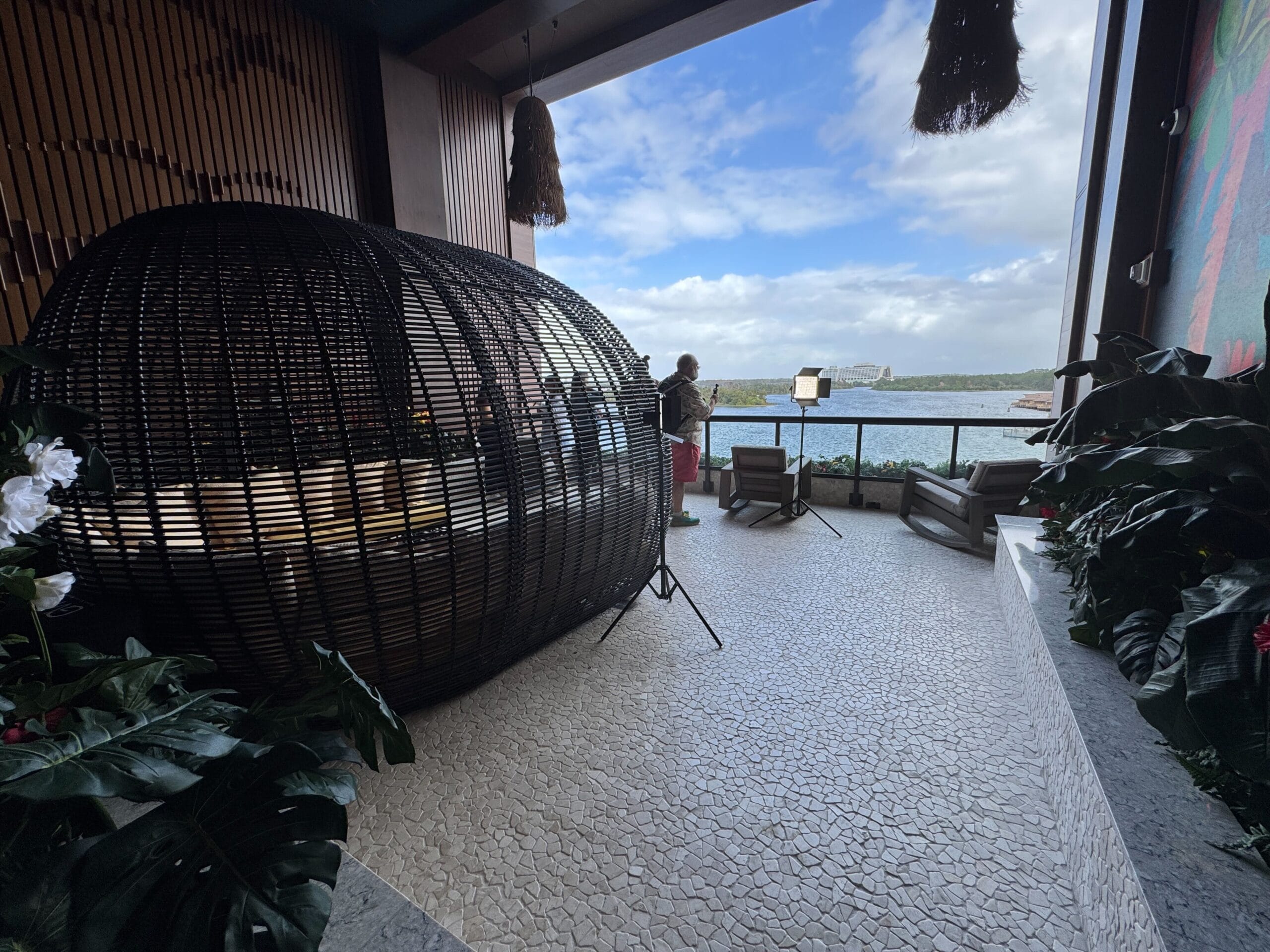 This terrace offers views of Seven Seas Lagoon and a glimpse of Disney’s Grand Floridian Resort & Spa.