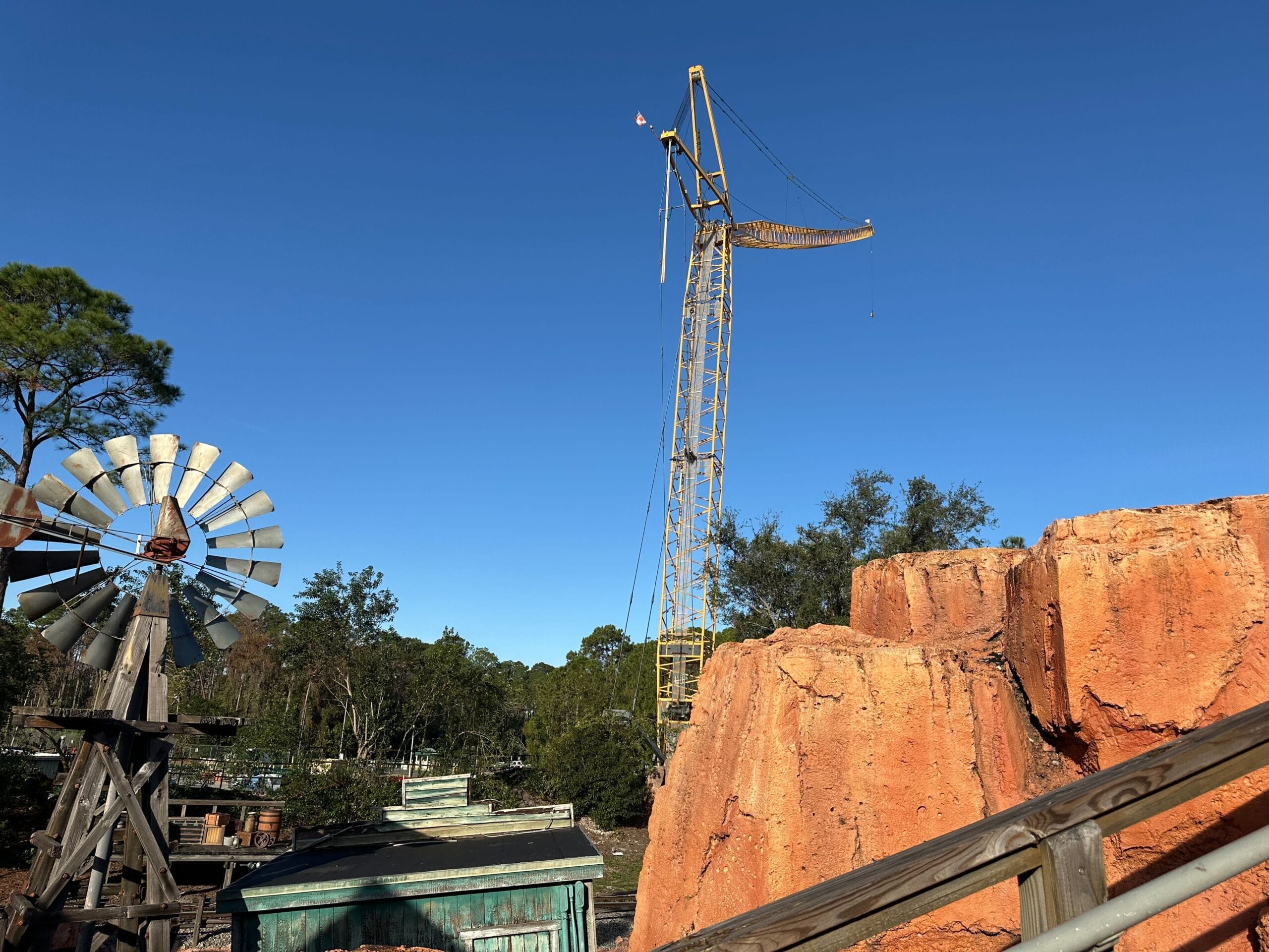 Cranes first arrived behind Big Thunder Mountain Railroad in mid-December, possibly to be used in the replacement of the attraction’s track.