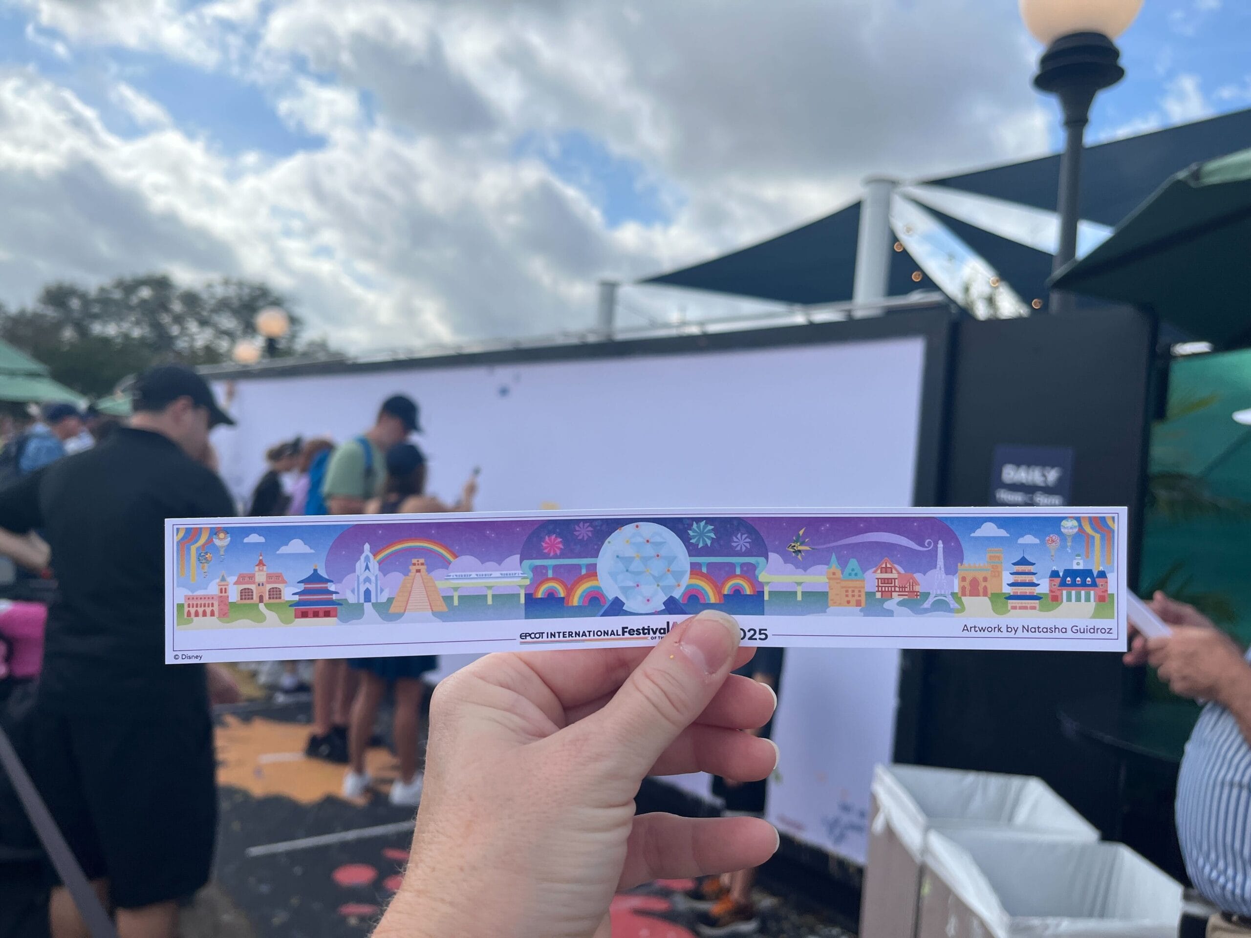 This free activity is open from 11:00 a.m. until 5:00 p.m. or until the mural is complete for the day, weather permitting. It’s located on the walkway between World Showcase and the Imagination! pavilion, at the outdoor flex space that opened last year.