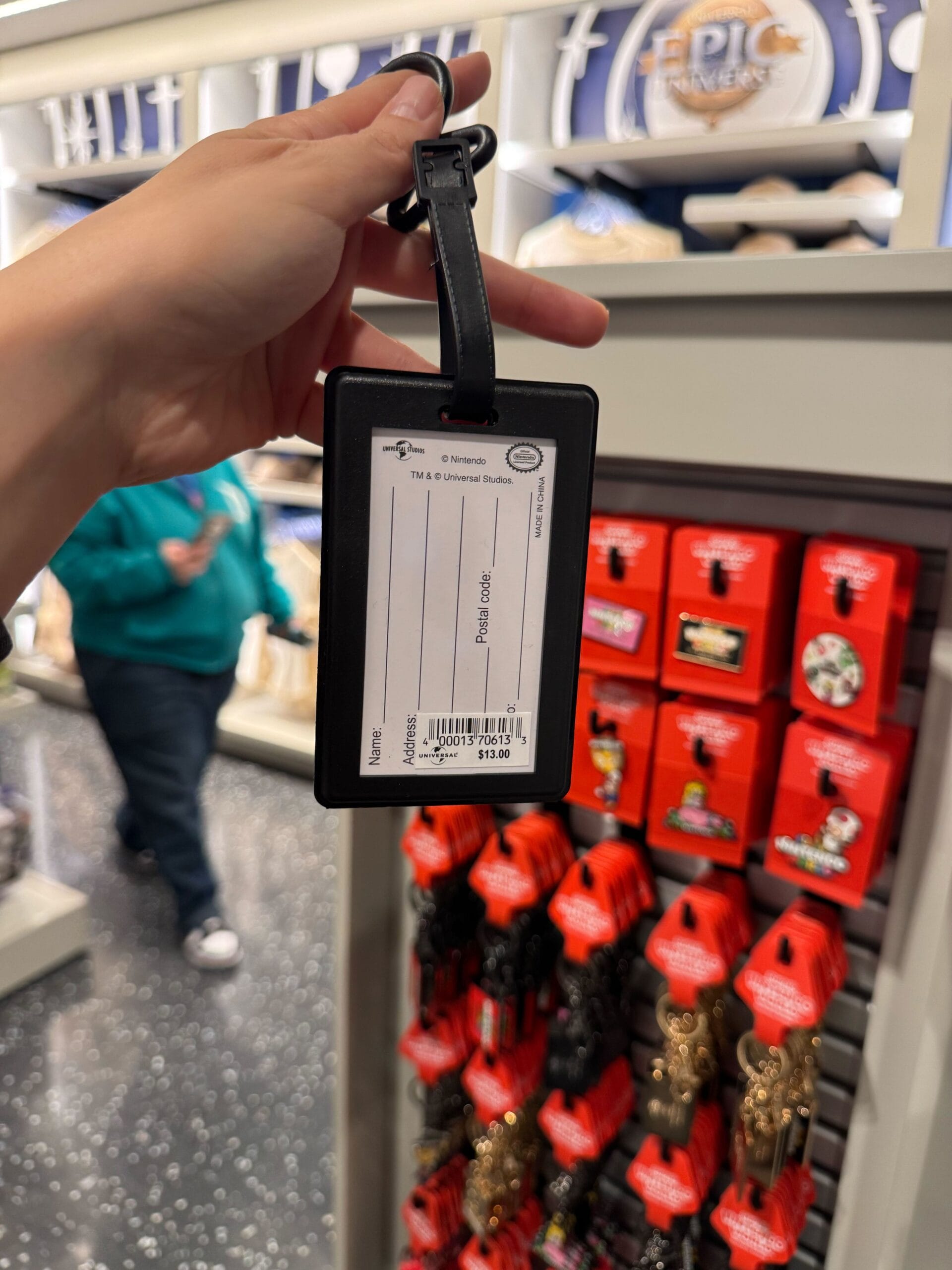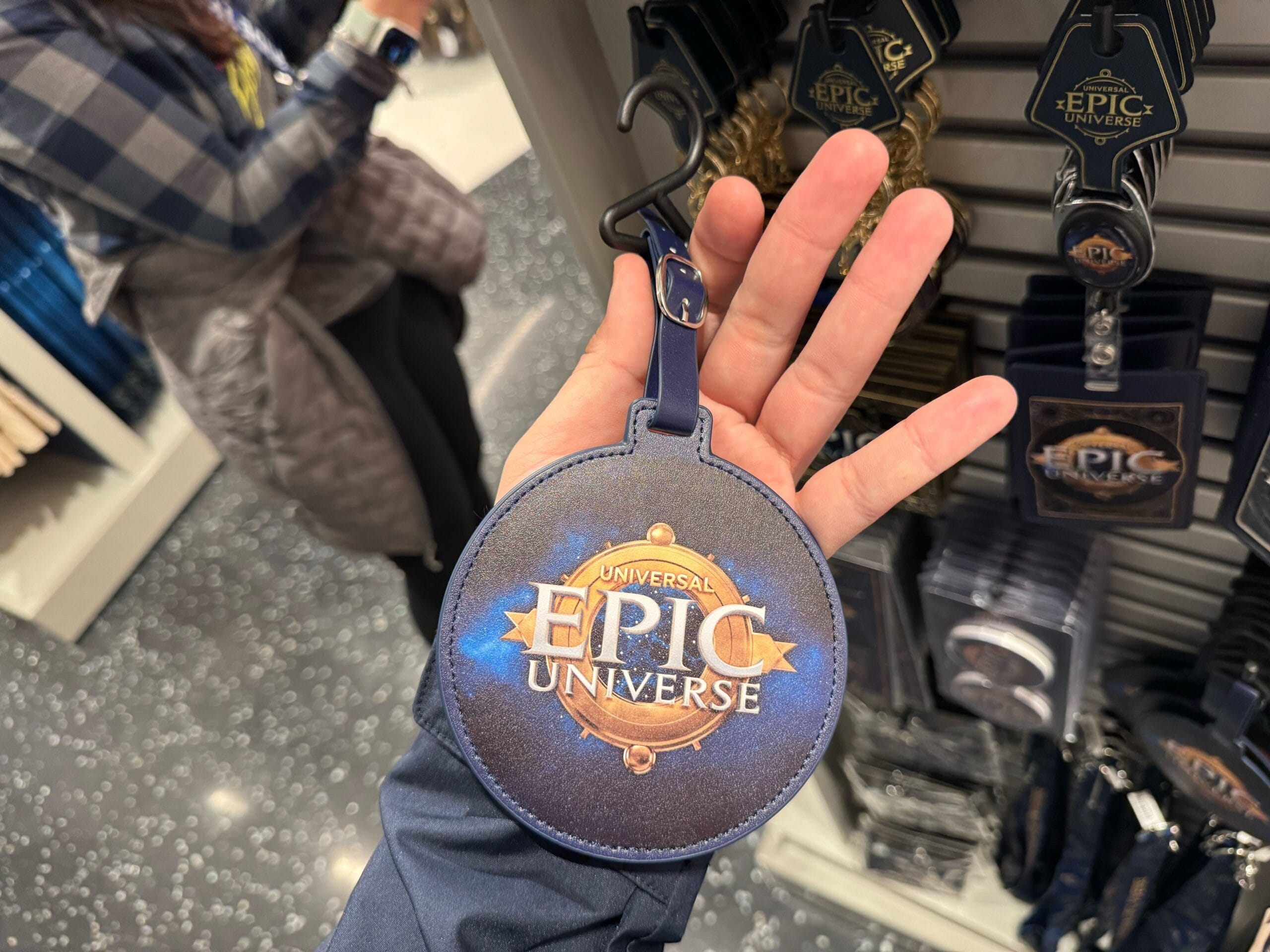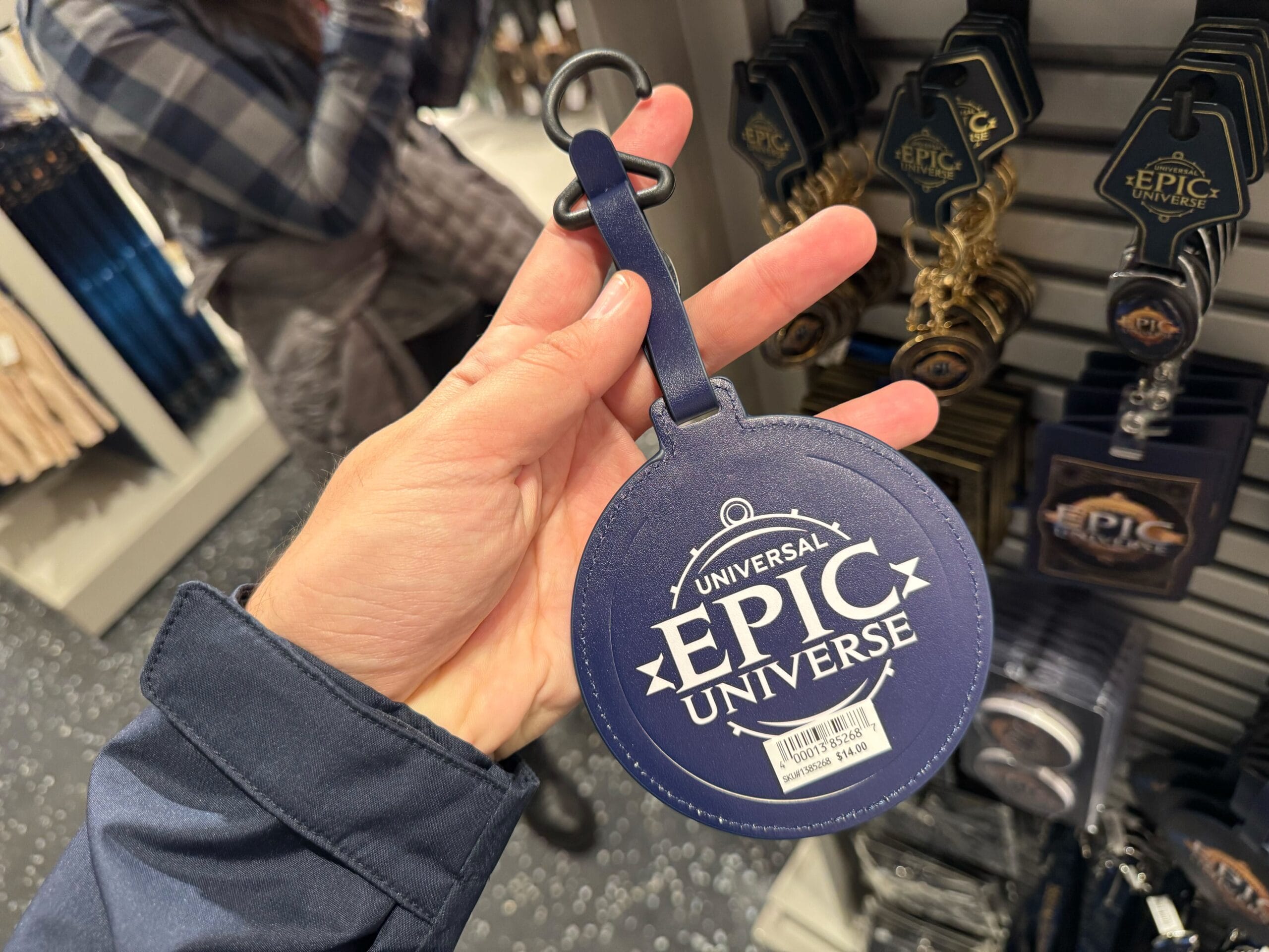 The full Epic Universe logo is against a blue galaxy on the other side of the tag.