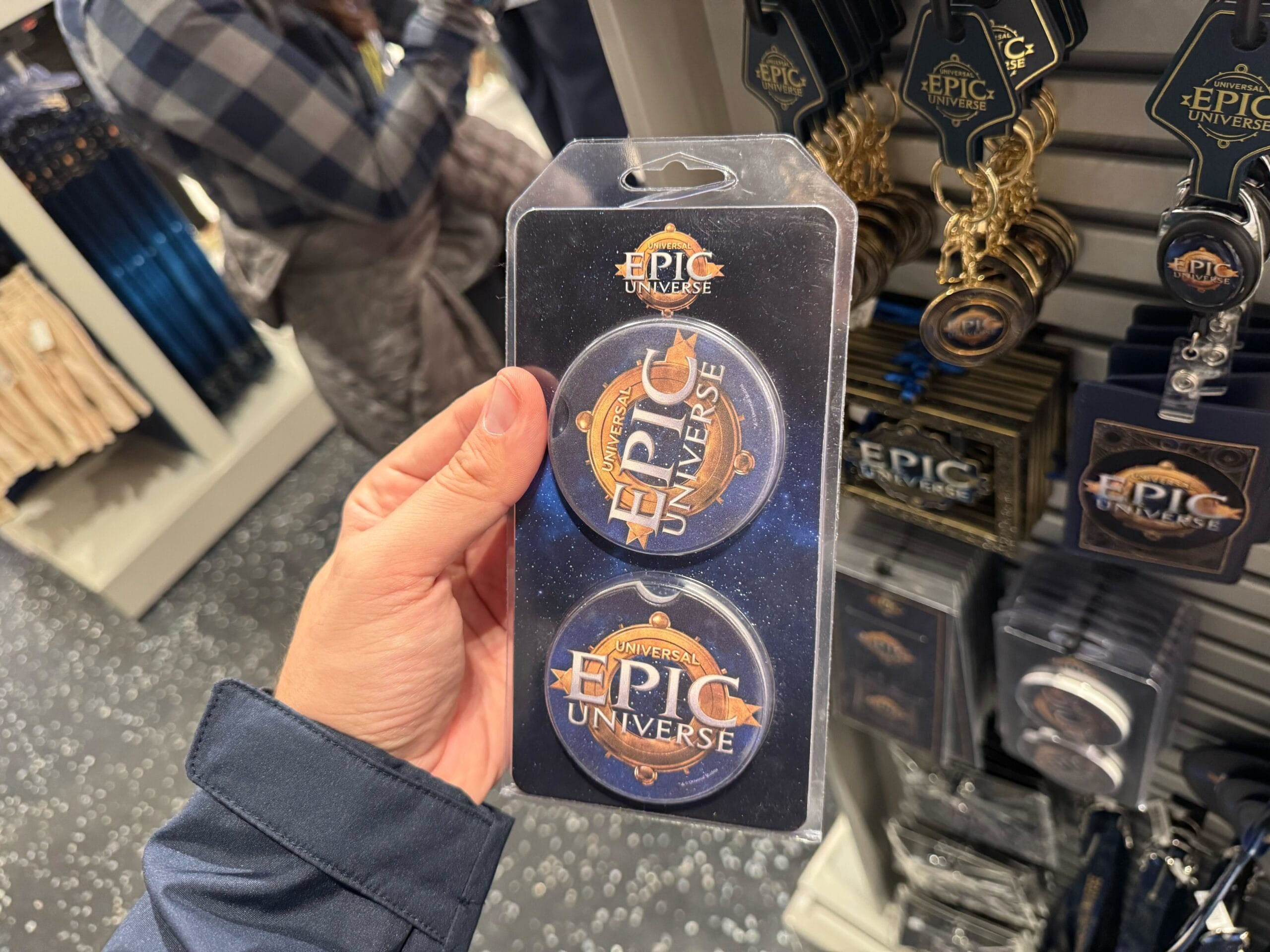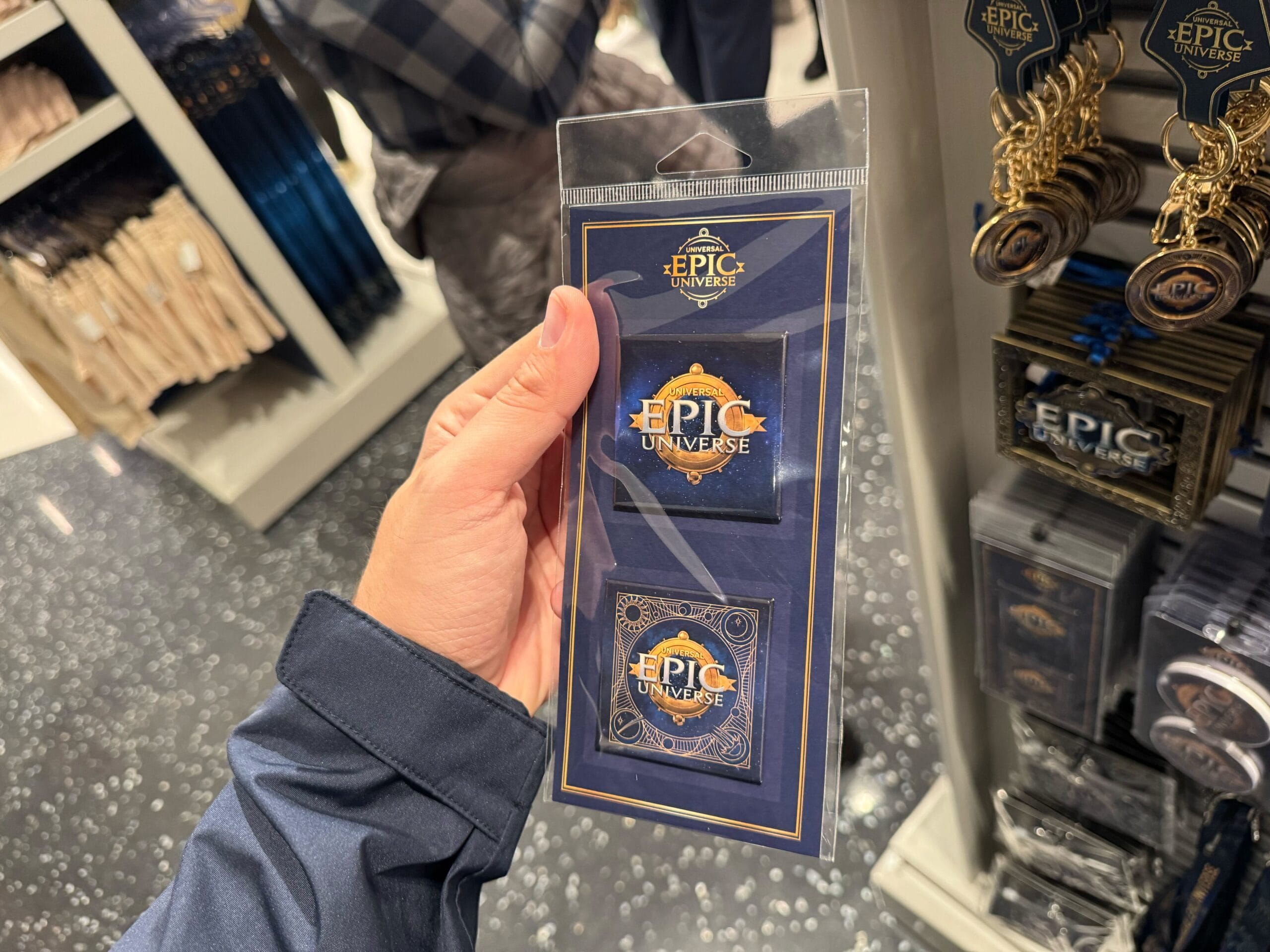 This set includes two square magnets. One has the Epic Universe floating in space. The other puts the logo inside a celestial orange frame.