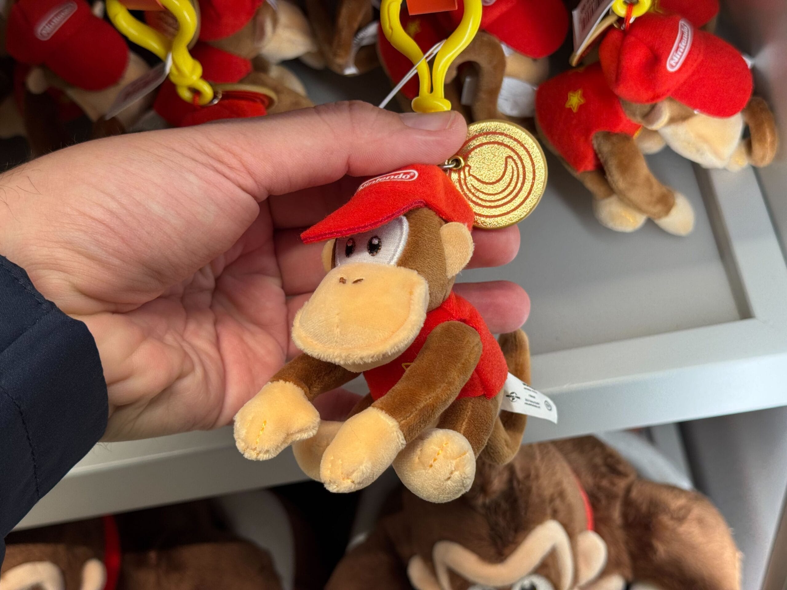 The plush keychain is smaller than the regular plush, but has a similar cute design with embroidered features. It has a plastic black lobster claw clip.