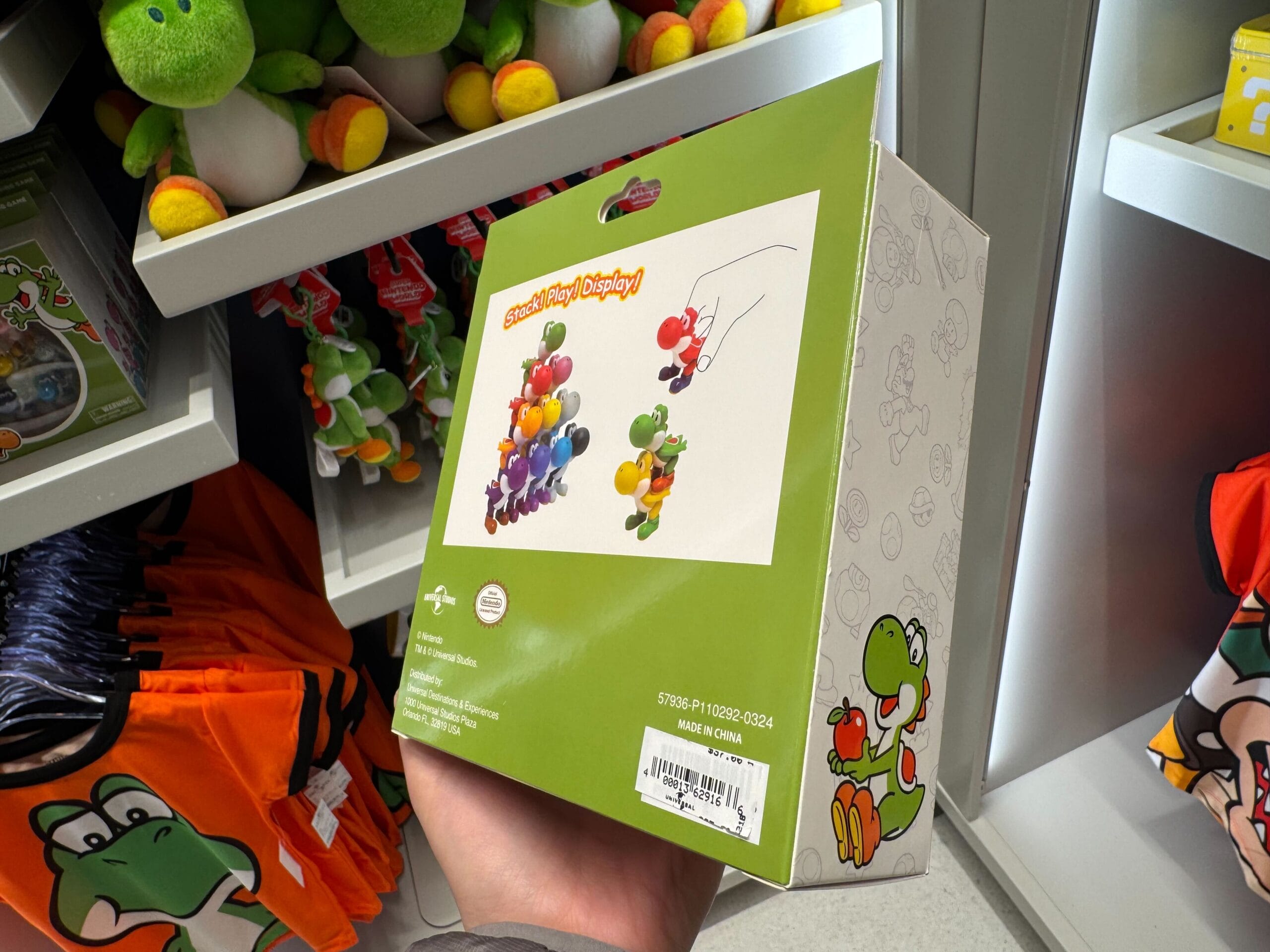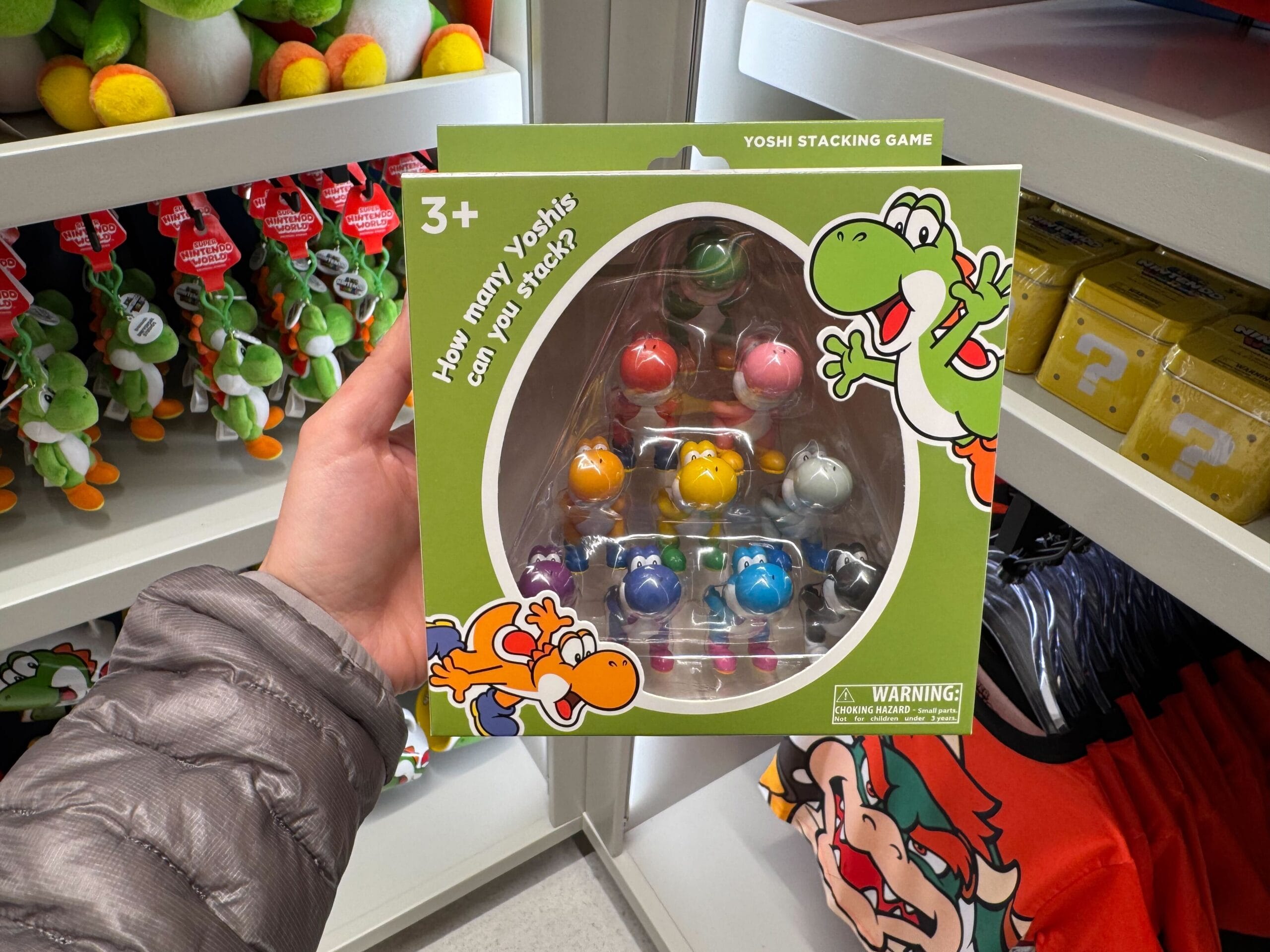 This game is designed for ages 3+. It features a colorful collection of Yoshis that can be stacked on top of each other.
