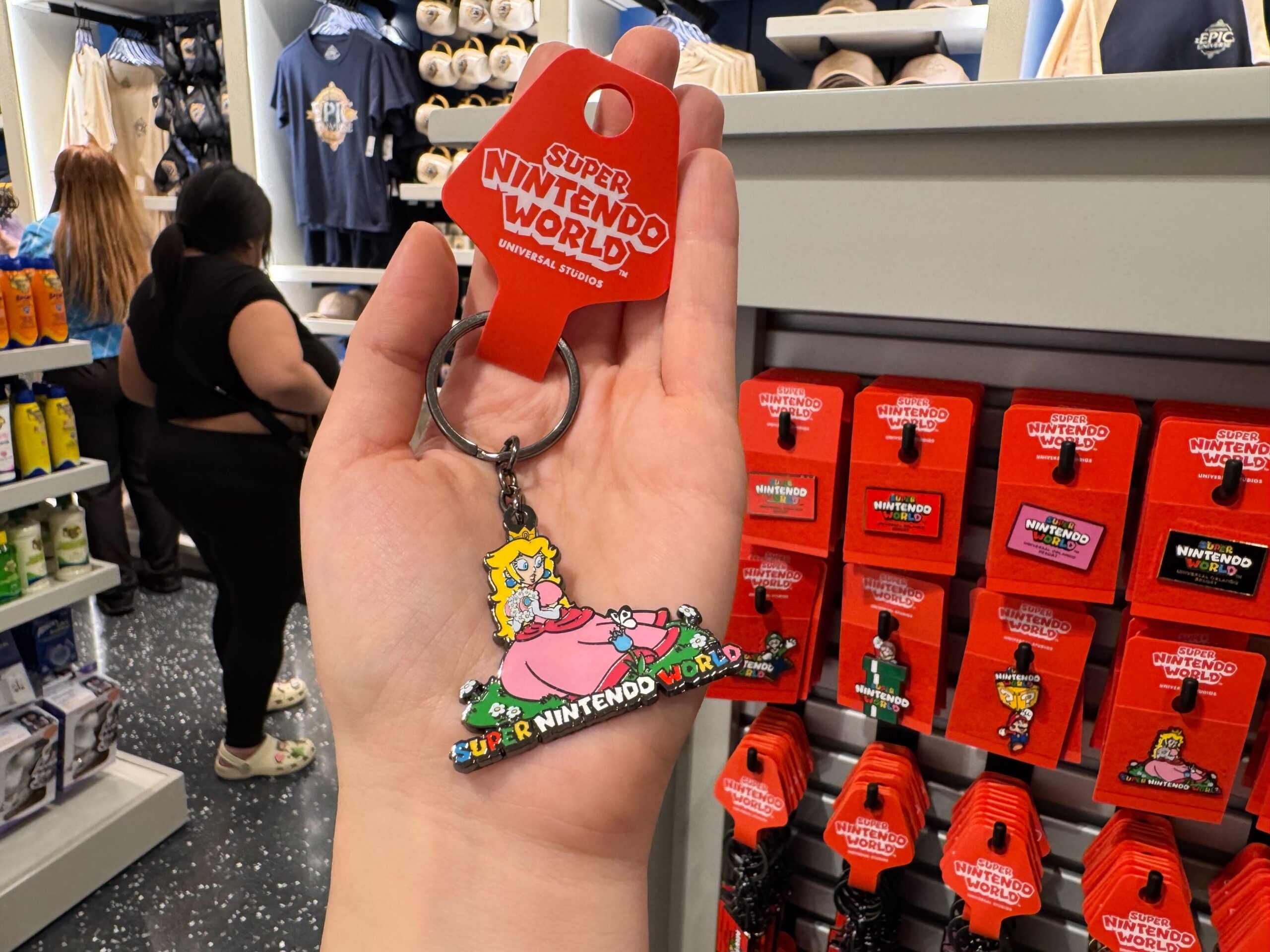 This keychain has the same Peach artwork as the pin above, with the princess in a field.