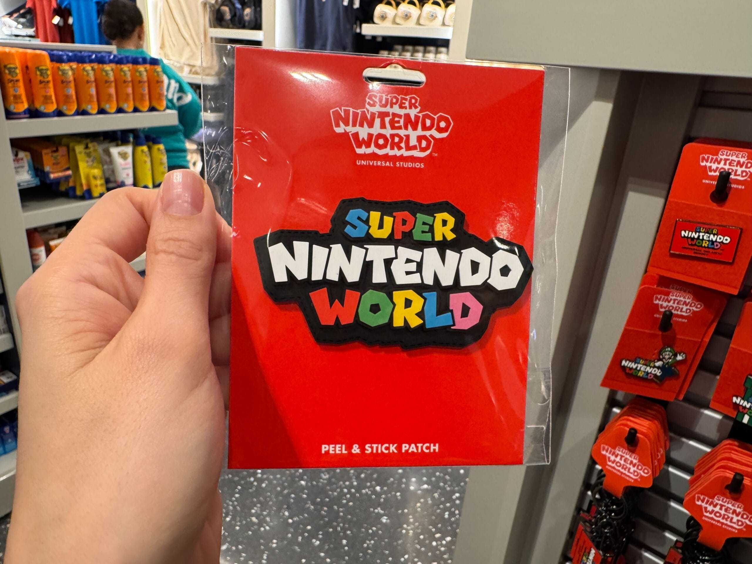 This peek and stick patch is the basic Super Nintendo World logo with a black border.