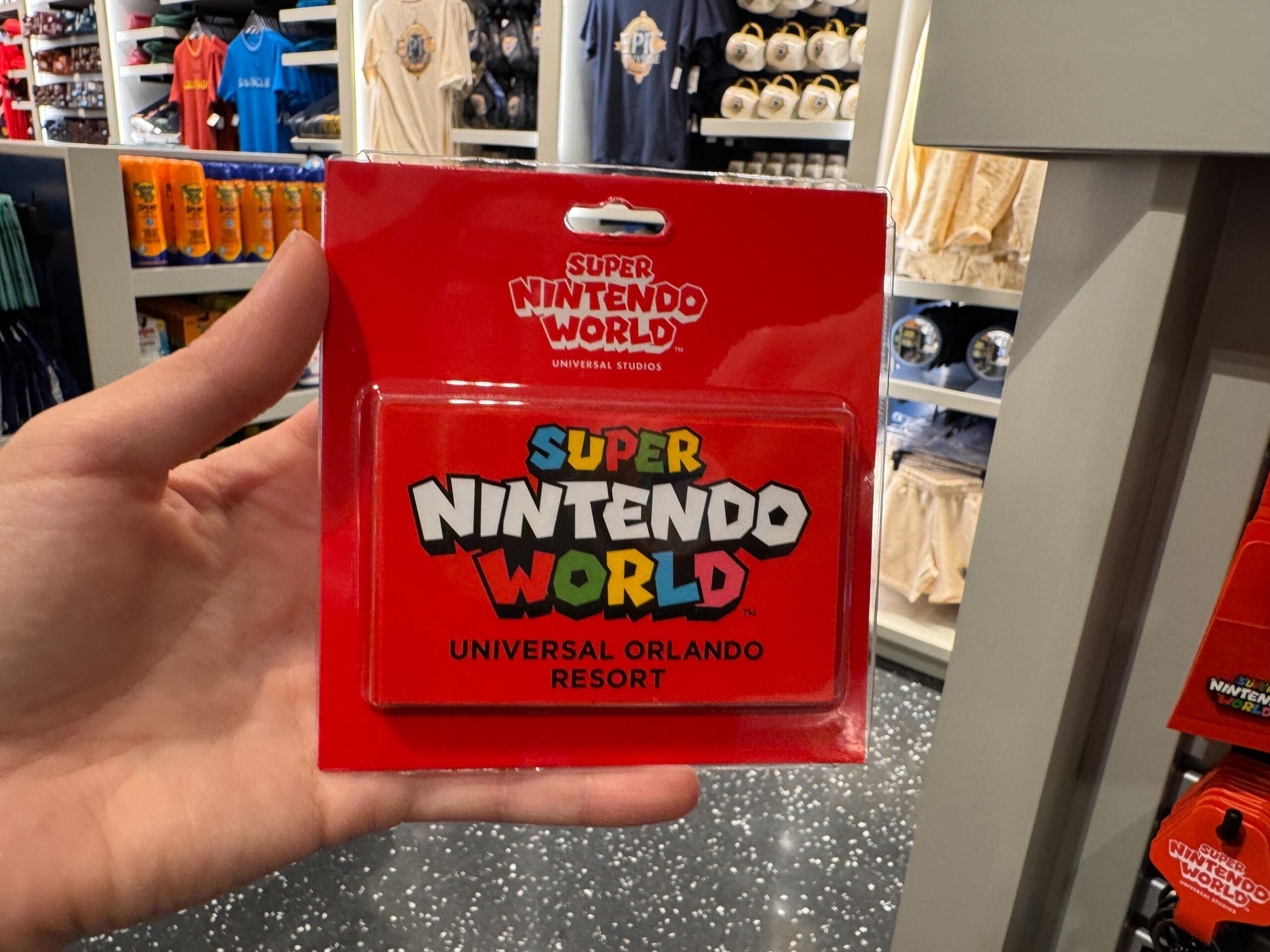 The magnet features the Super Nintendo World logo and “Universal Orlando Resort” against a red background.