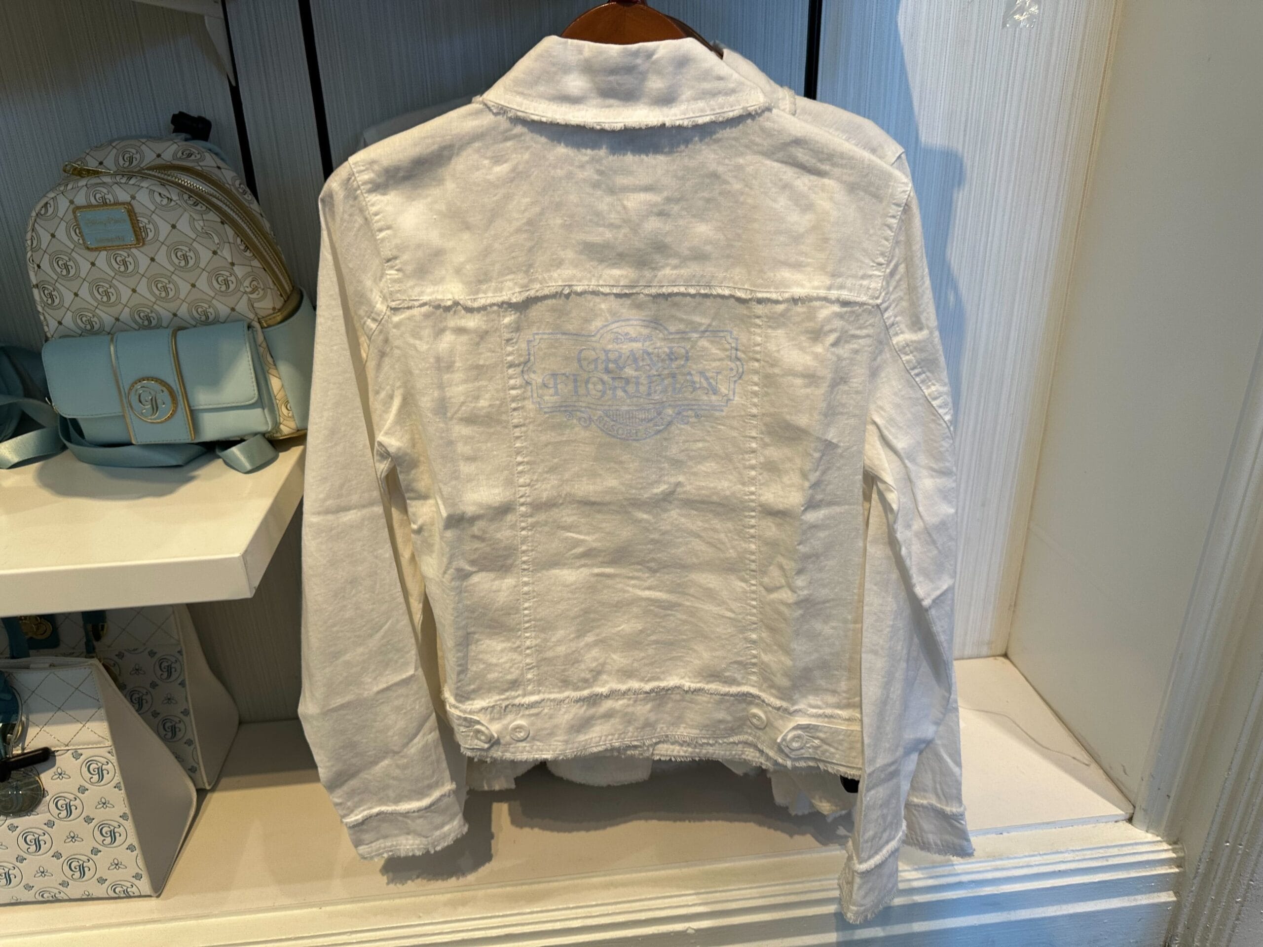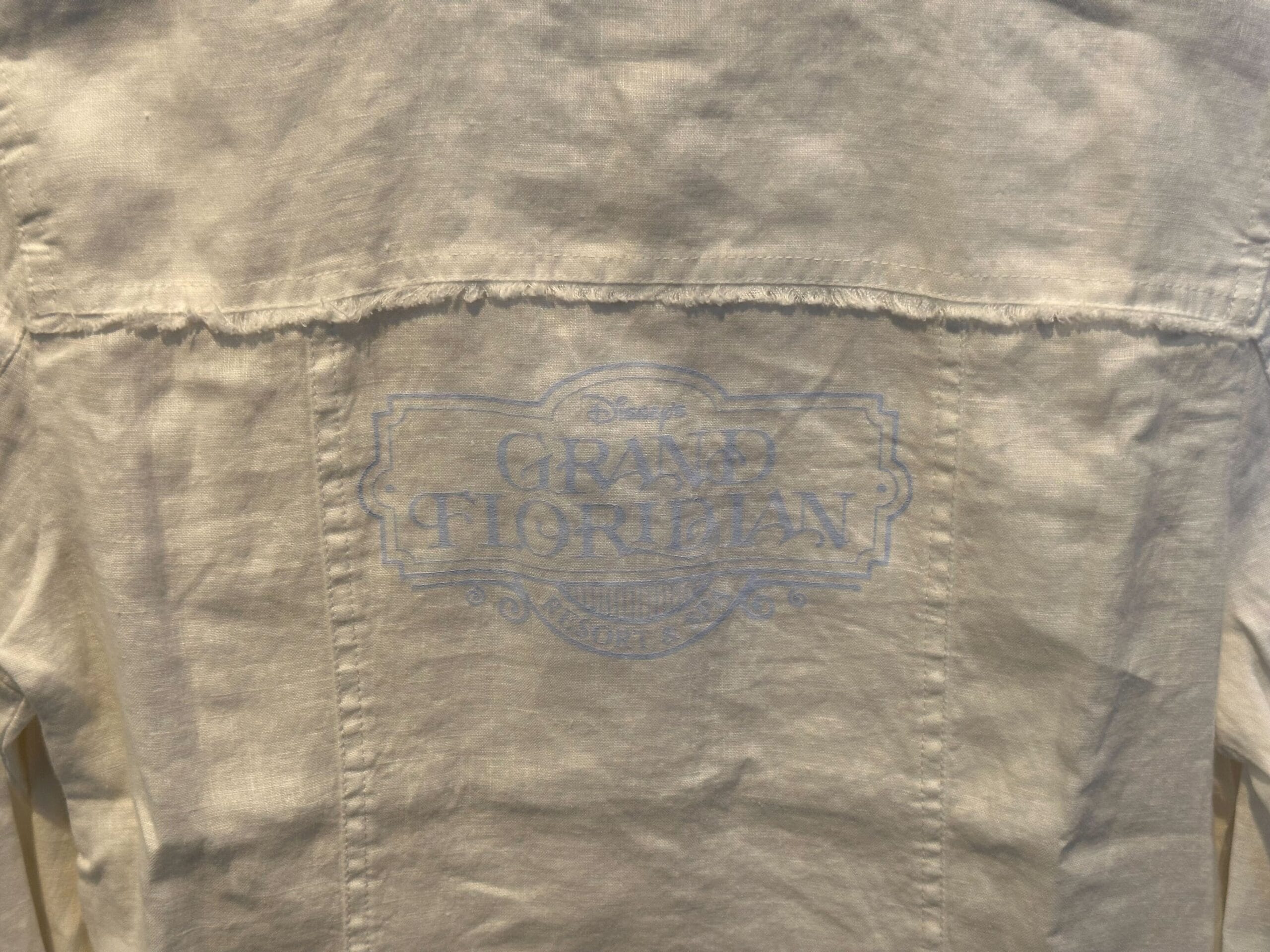 The Grand Floridian sign is pictured in a very light blue on the back.